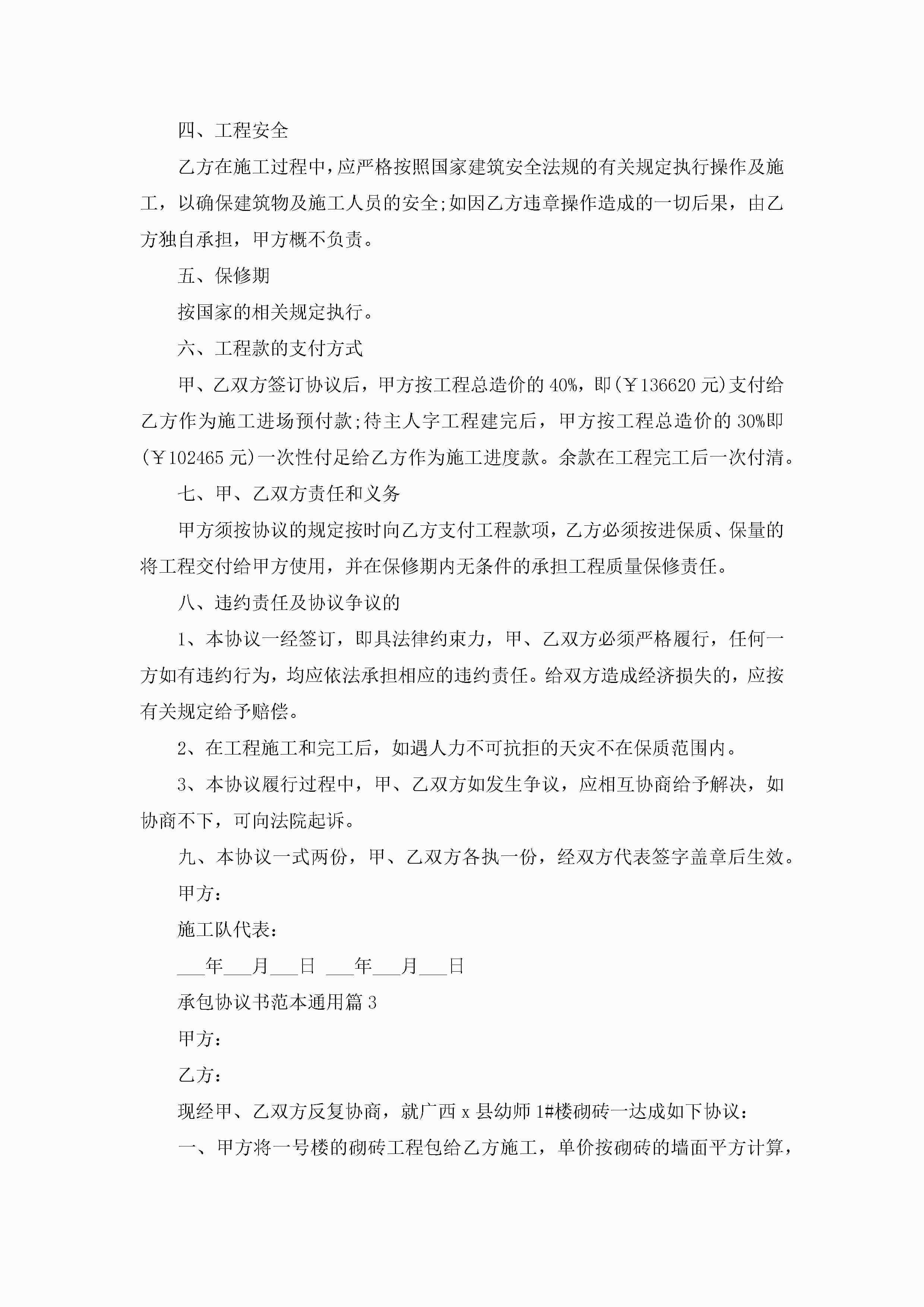 承包协议书最新范本通用jugei3月23日 01:35发布关注231 承包协议书最新范本通用此内容为付费资源,请付费后查看¥10.9 单篇文档限时特惠¥15个人会员开通企业会员开通立即下载无需登陆!可直接快捷下载单个模板付费资源© 版权声明THE ENDWord模板# 实用文档# 实用模板# 合同模板# 承包合同 如有问题,可点击最底部“联系我们”联系客服 分享QQ空间微博QQ好友海报分享复制链接收藏