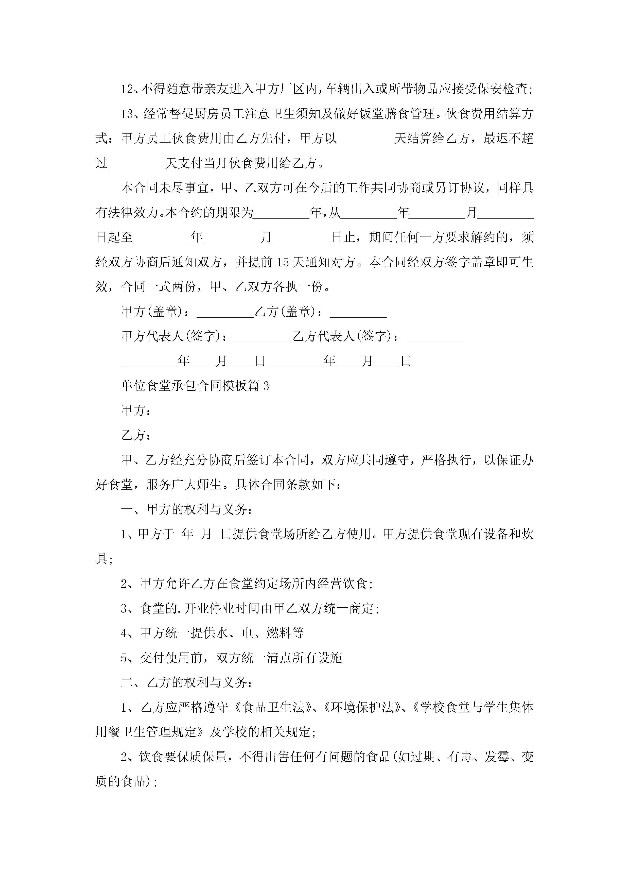 关于单位食堂承包合同模板8篇jugei3月23日 01:35发布关注201 关于单位食堂承包合同模板8篇此内容为付费资源,请付费后查看¥10.9 单篇文档限时特惠¥15个人会员开通企业会员开通立即下载无需登陆!可直接快捷下载单个模板付费资源© 版权声明THE ENDWord模板# 实用文档# 合同模板# 承包合同# 单位食堂承包合同模板8篇 如有问题,可点击最底部“联系我们”联系客服 分享QQ空间微博QQ好友海报分享复制链接收藏