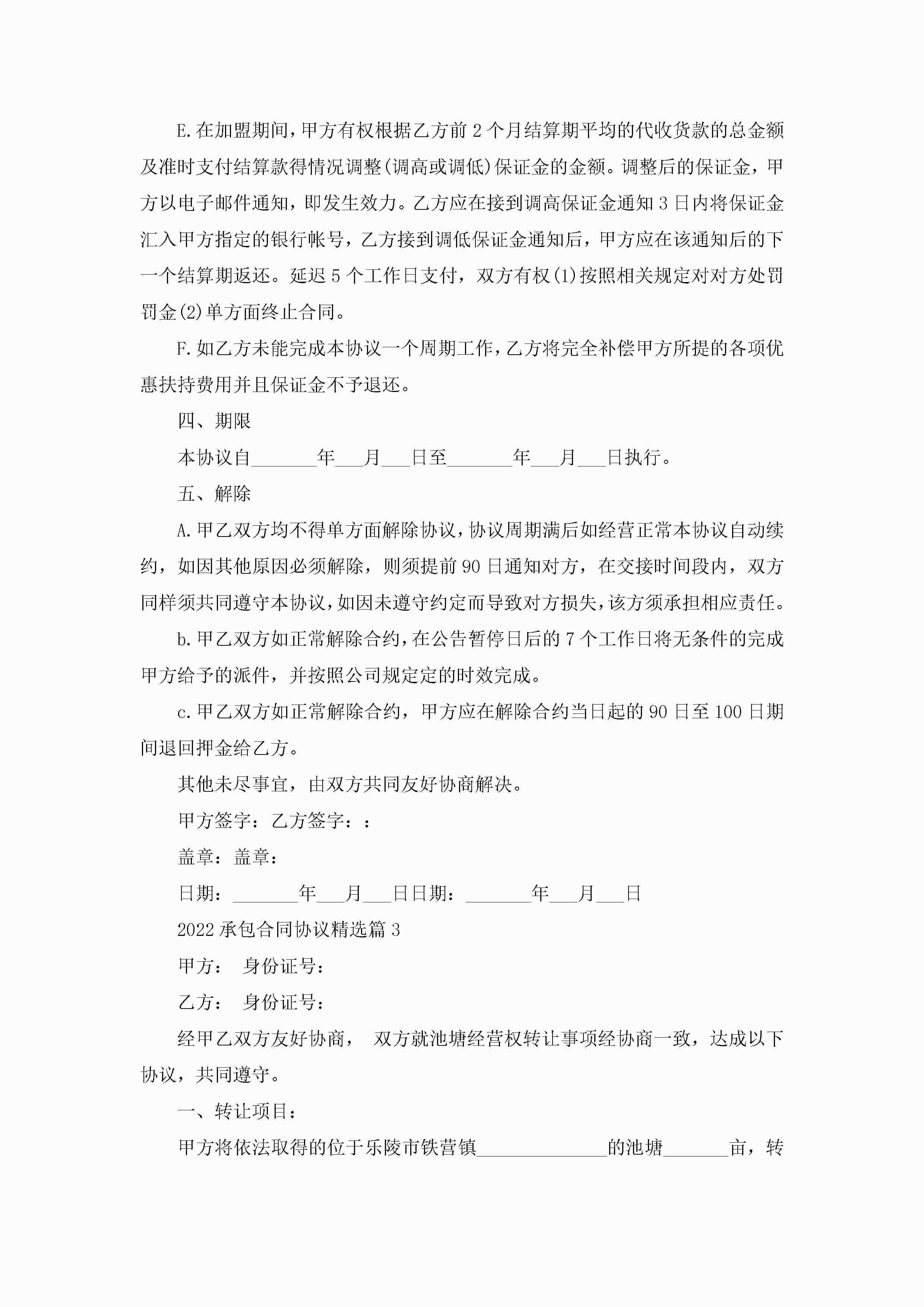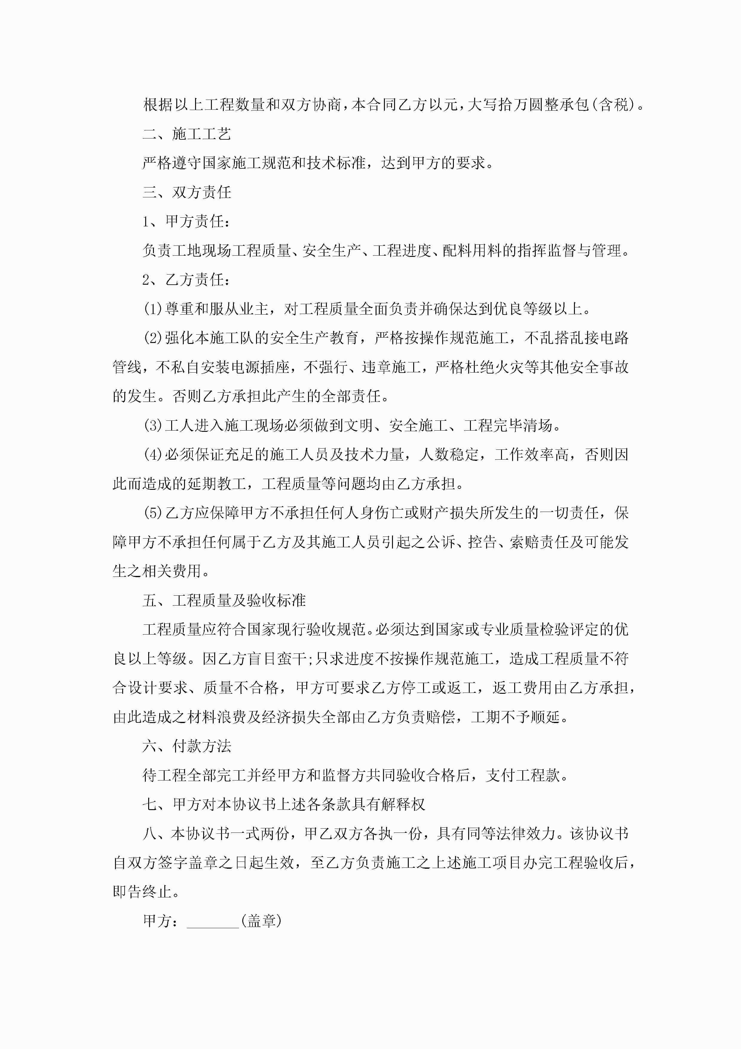 关于2022承包合同协议精选8篇jugei3月23日 01:35发布关注195 关于2022承包合同协议精选8篇此内容为付费资源,请付费后查看¥10.9 单篇文档限时特惠¥15个人会员开通企业会员开通立即下载无需登陆!可直接快捷下载单个模板付费资源© 版权声明THE ENDWord模板# 实用文档# 合同模板# 承包合同# 2022承包合同协议精选8篇 如有问题,可点击最底部“联系我们”联系客服 分享QQ空间微博QQ好友海报分享复制链接收藏