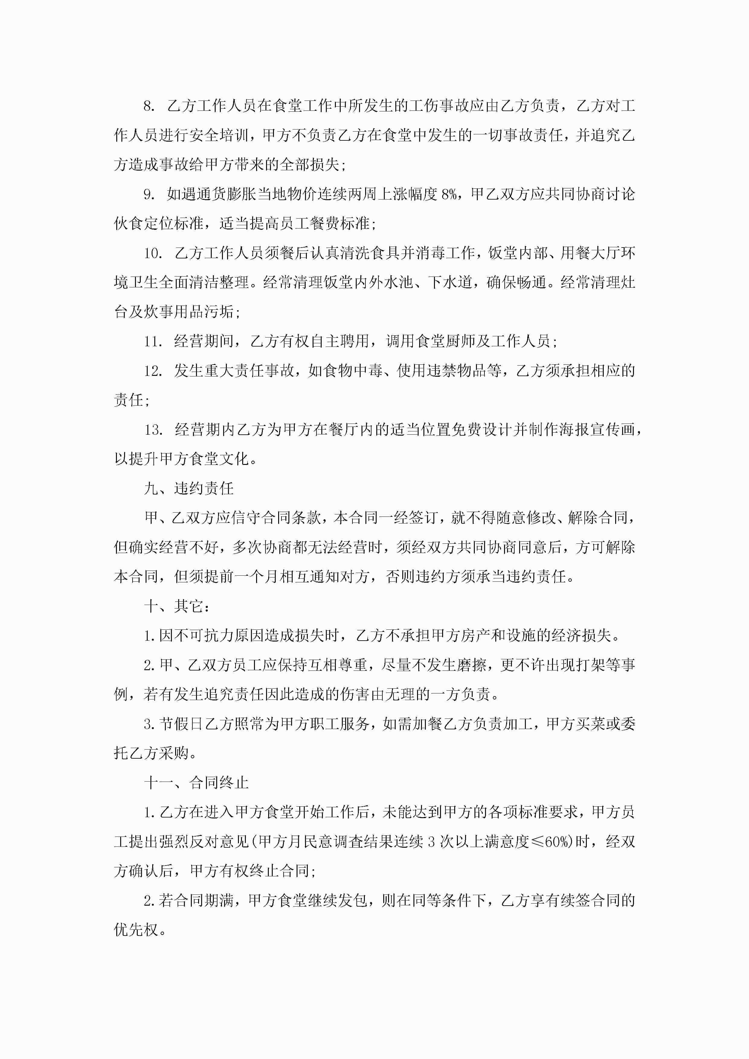 关于食堂承包合同精选8篇jugei3月23日 01:35发布关注196 关于食堂承包合同精选8篇此内容为付费资源,请付费后查看¥10.9 单篇文档限时特惠¥15个人会员开通企业会员开通立即下载无需登陆!可直接快捷下载单个模板付费资源© 版权声明THE ENDWord模板# 实用文档# 合同模板# 承包合同# 食堂承包合同精选8篇 如有问题,可点击最底部“联系我们”联系客服 分享QQ空间微博QQ好友海报分享复制链接收藏