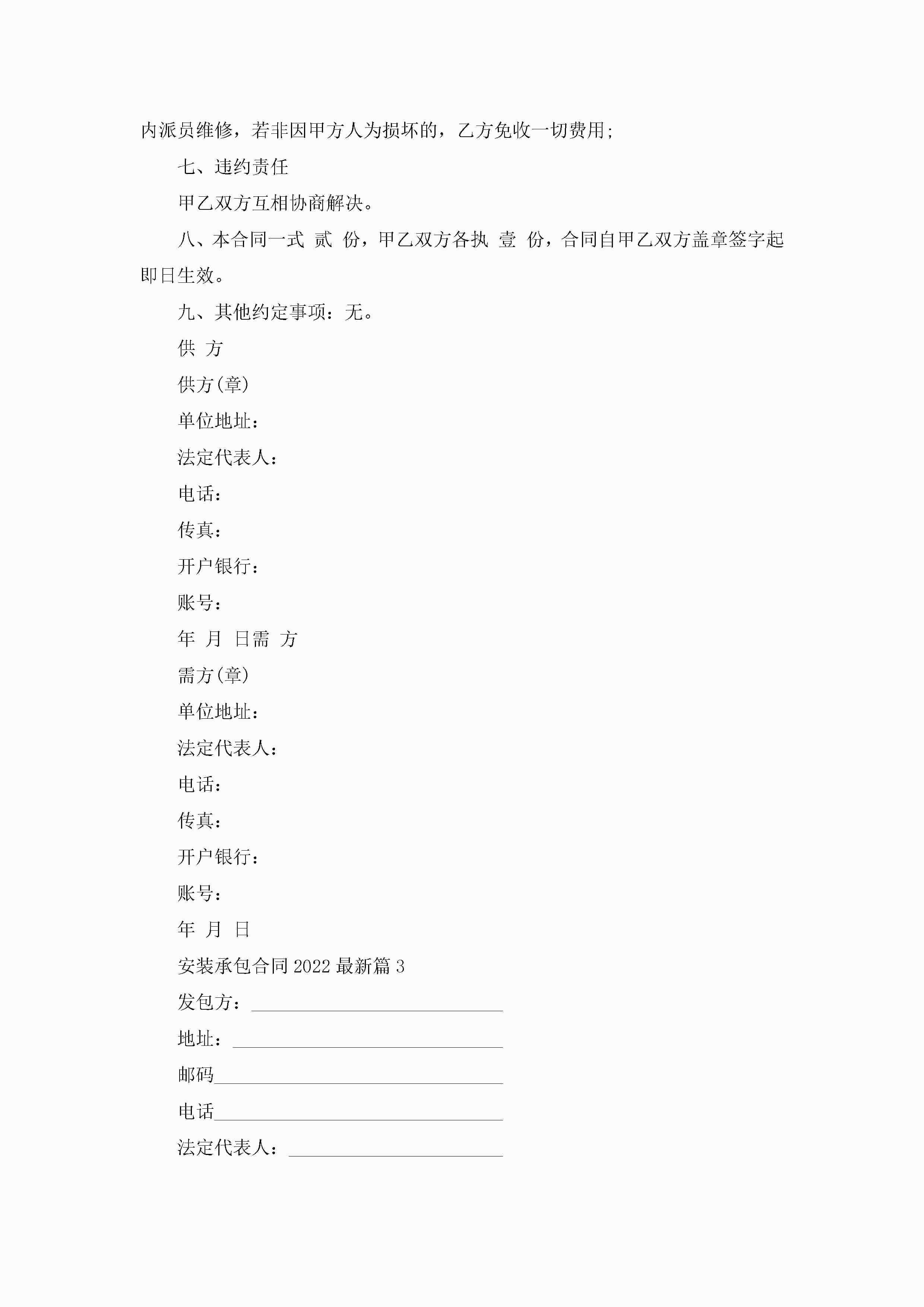 安装承包合同2022最新范文jugei3月23日 01:35发布关注203 安装承包合同2022最新范文此内容为付费资源,请付费后查看¥10.9 单篇文档限时特惠¥15个人会员开通企业会员开通立即下载无需登陆!可直接快捷下载单个模板付费资源© 版权声明THE ENDWord模板# 实用文档# 实用模板# 合同模板# 承包合同 如有问题,可点击最底部“联系我们”联系客服 分享QQ空间微博QQ好友海报分享复制链接收藏