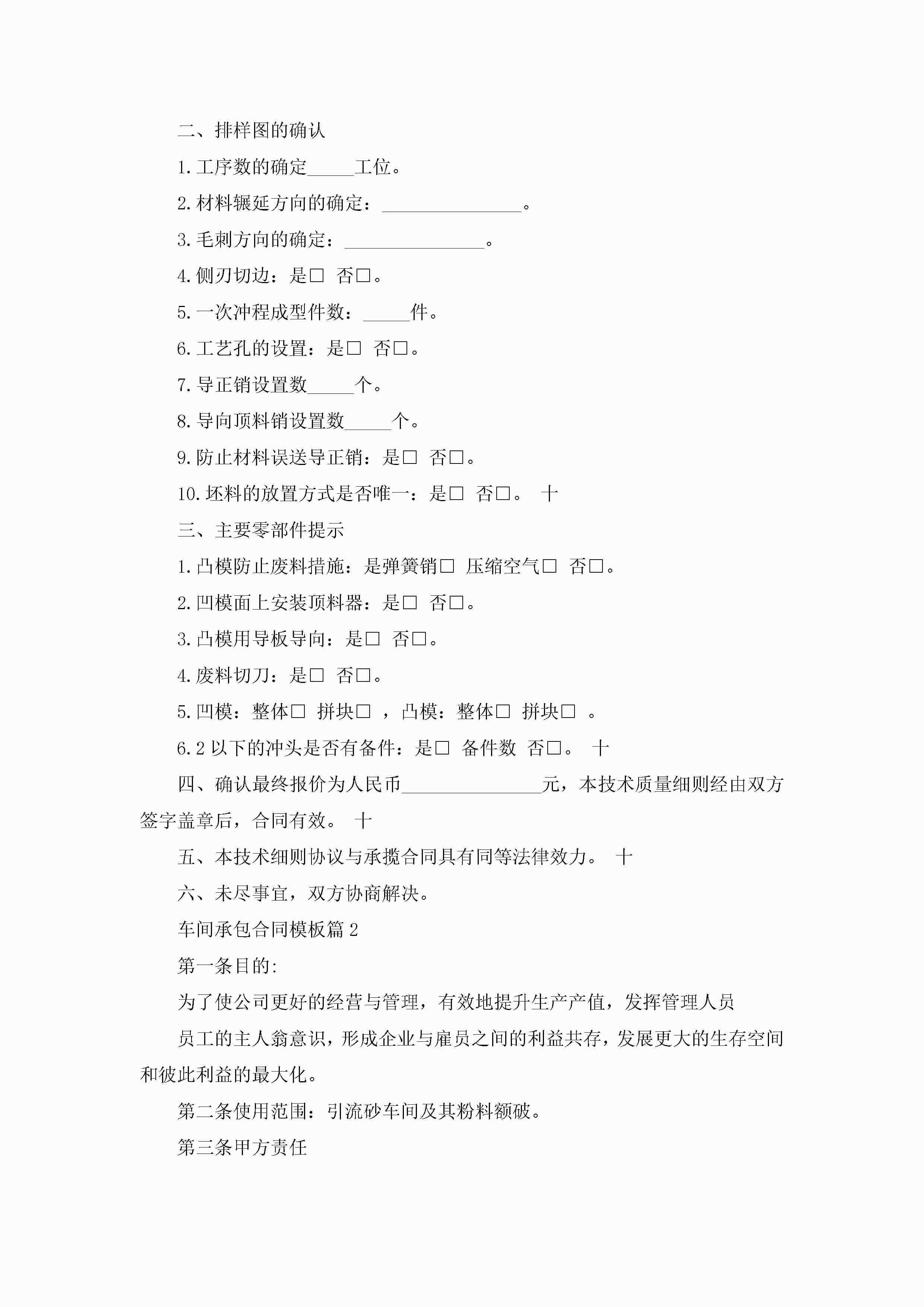 车间承包合同模板【7篇】jugei3月23日 01:35发布关注249 车间承包合同模板【7篇】此内容为付费资源,请付费后查看¥10.9 单篇文档限时特惠¥15个人会员开通企业会员开通立即下载无需登陆!可直接快捷下载单个模板付费资源© 版权声明THE ENDWord模板# 实用文档# 合同模板# 承包合同# 车间承包合同模板 如有问题,可点击最底部“联系我们”联系客服 分享QQ空间微博QQ好友海报分享复制链接收藏