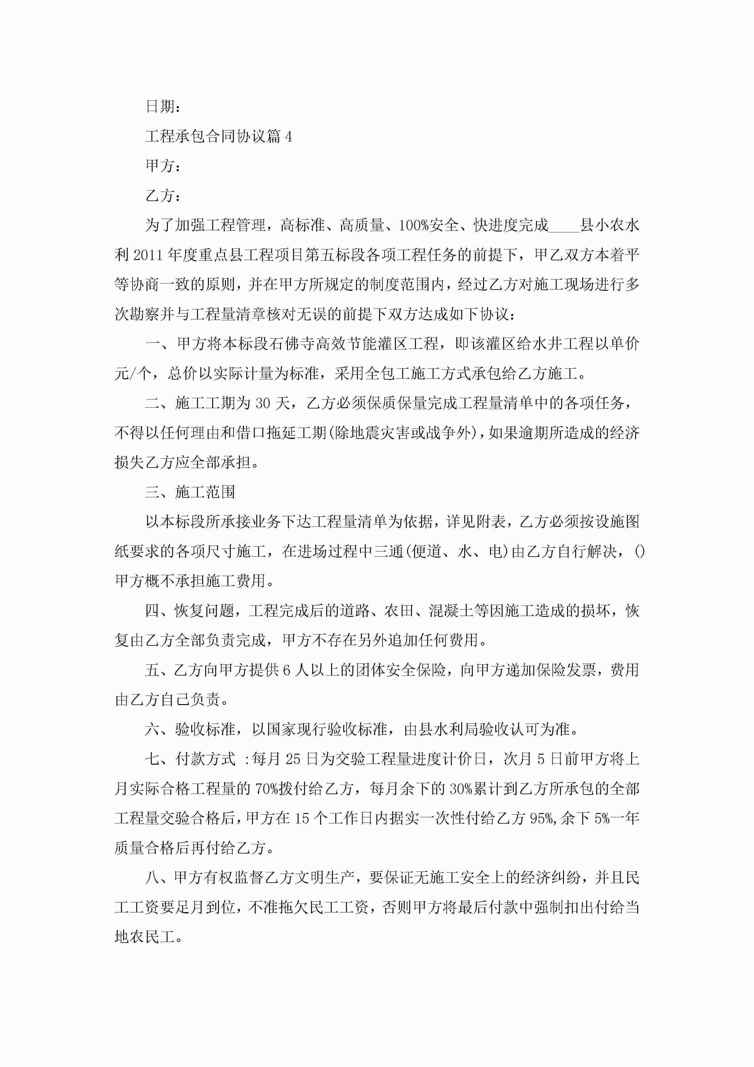 工程承包合同协议【精选7篇】jugei3月23日 01:35发布关注194 工程承包合同协议【精选7篇】此内容为付费资源,请付费后查看¥10.9 单篇文档限时特惠¥15个人会员开通企业会员开通立即下载无需登陆!可直接快捷下载单个模板付费资源© 版权声明THE ENDWord模板# 实用文档# 合同模板# 承包合同# 工程承包合同协议【精选】 如有问题,可点击最底部“联系我们”联系客服 分享QQ空间微博QQ好友海报分享复制链接收藏