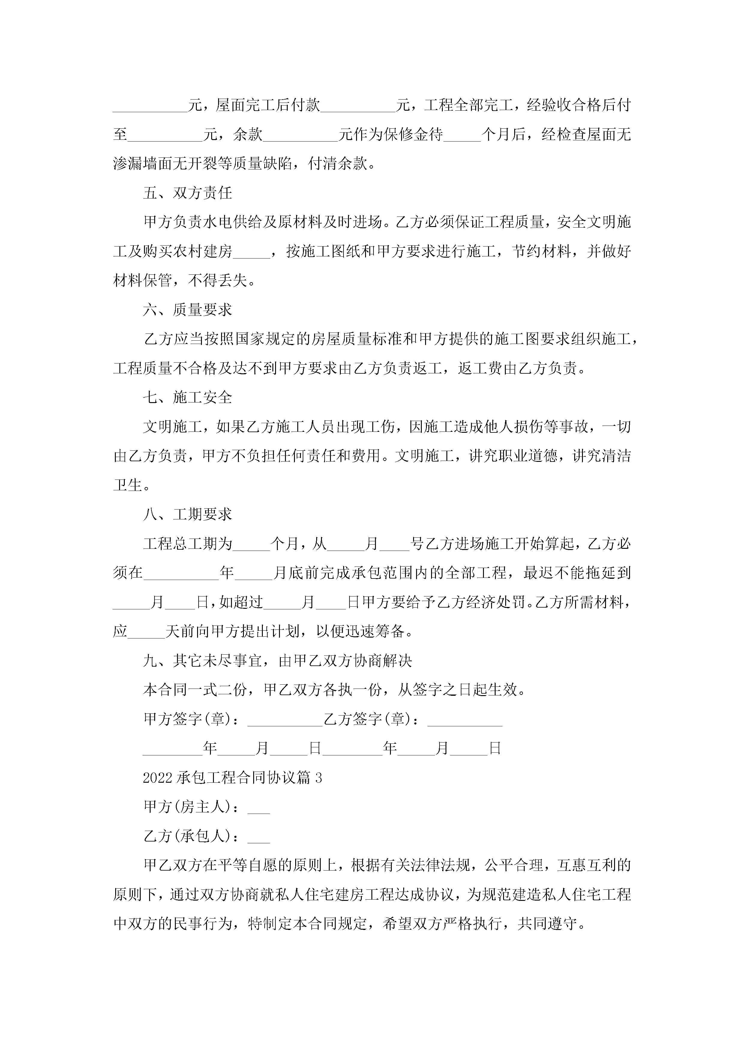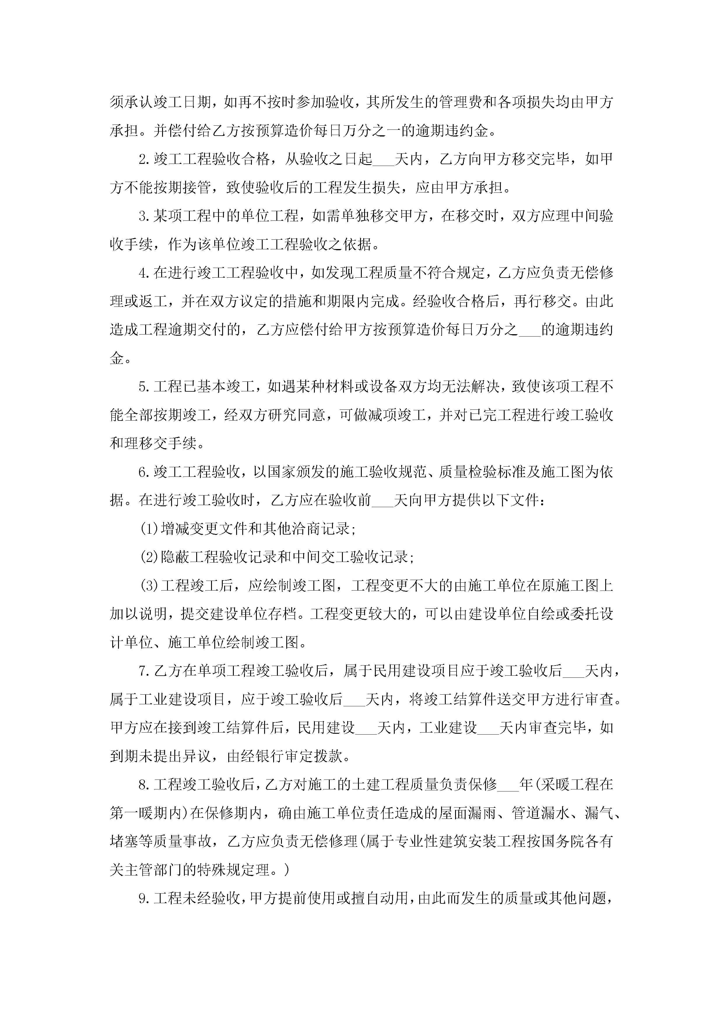 关于2022承包工程合同协议【10篇】jugei3月23日 01:35发布关注198 关于2022承包工程合同协议【10篇】此内容为付费资源,请付费后查看¥10.9 单篇文档限时特惠¥15个人会员开通企业会员开通立即下载无需登陆!可直接快捷下载单个模板付费资源© 版权声明THE ENDWord模板# 实用文档# 合同模板# 承包合同# 2022承包工程合同协议【10篇】 如有问题,可点击最底部“联系我们”联系客服 分享QQ空间微博QQ好友海报分享复制链接收藏