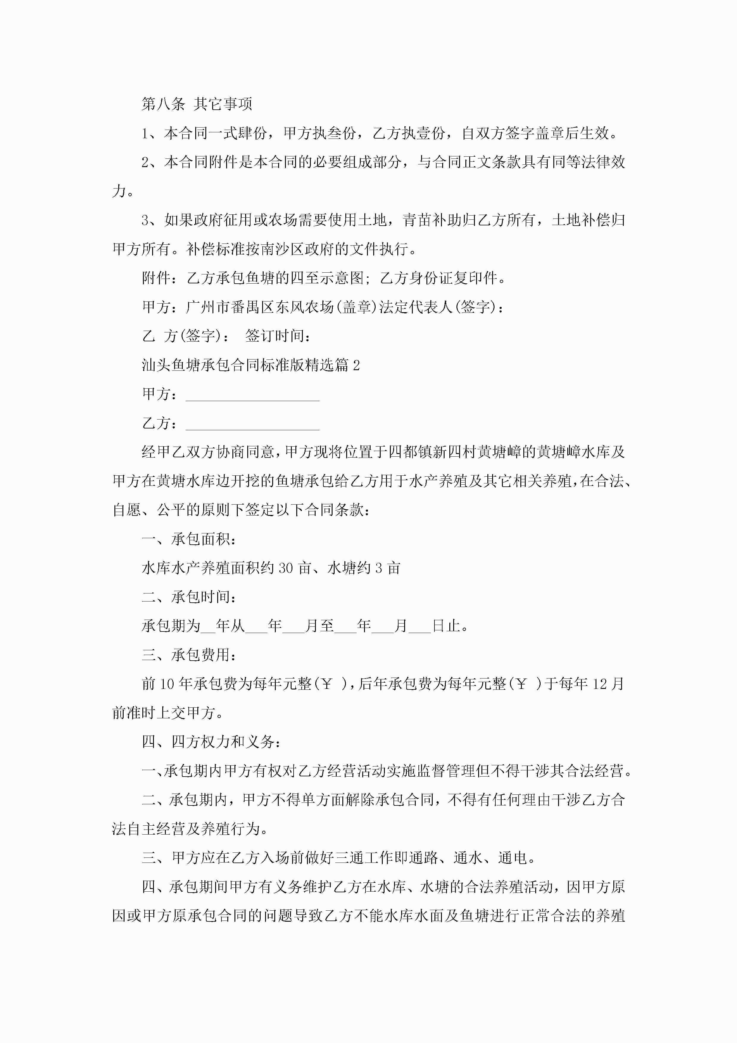 汕头鱼塘承包合同标准版7篇jugei3月23日 01:36发布关注186 汕头鱼塘承包合同标准版7篇此内容为付费资源,请付费后查看¥10.9 单篇文档限时特惠¥15个人会员开通企业会员开通立即下载无需登陆!可直接快捷下载单个模板付费资源© 版权声明THE ENDWord模板# 实用文档# 实用模板# 合同模板# 承包合同 如有问题,可点击最底部“联系我们”联系客服 分享QQ空间微博QQ好友海报分享复制链接收藏