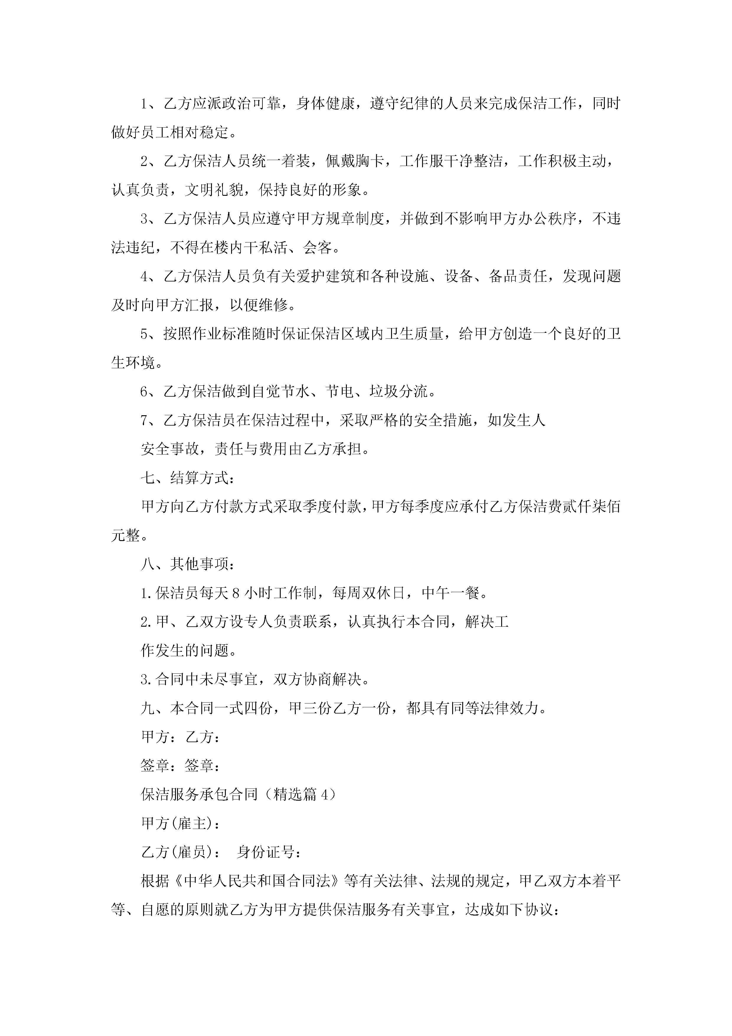 保洁服务承包合同7篇jugei3月23日 01:36发布关注191 保洁服务承包合同7篇此内容为付费资源,请付费后查看¥10.9 单篇文档限时特惠¥15个人会员开通企业会员开通立即下载无需登陆!可直接快捷下载单个模板付费资源© 版权声明THE ENDWord模板# 实用文档# 实用模板# 合同模板# 承包合同 如有问题,可点击最底部“联系我们”联系客服 分享QQ空间微博QQ好友海报分享复制链接收藏