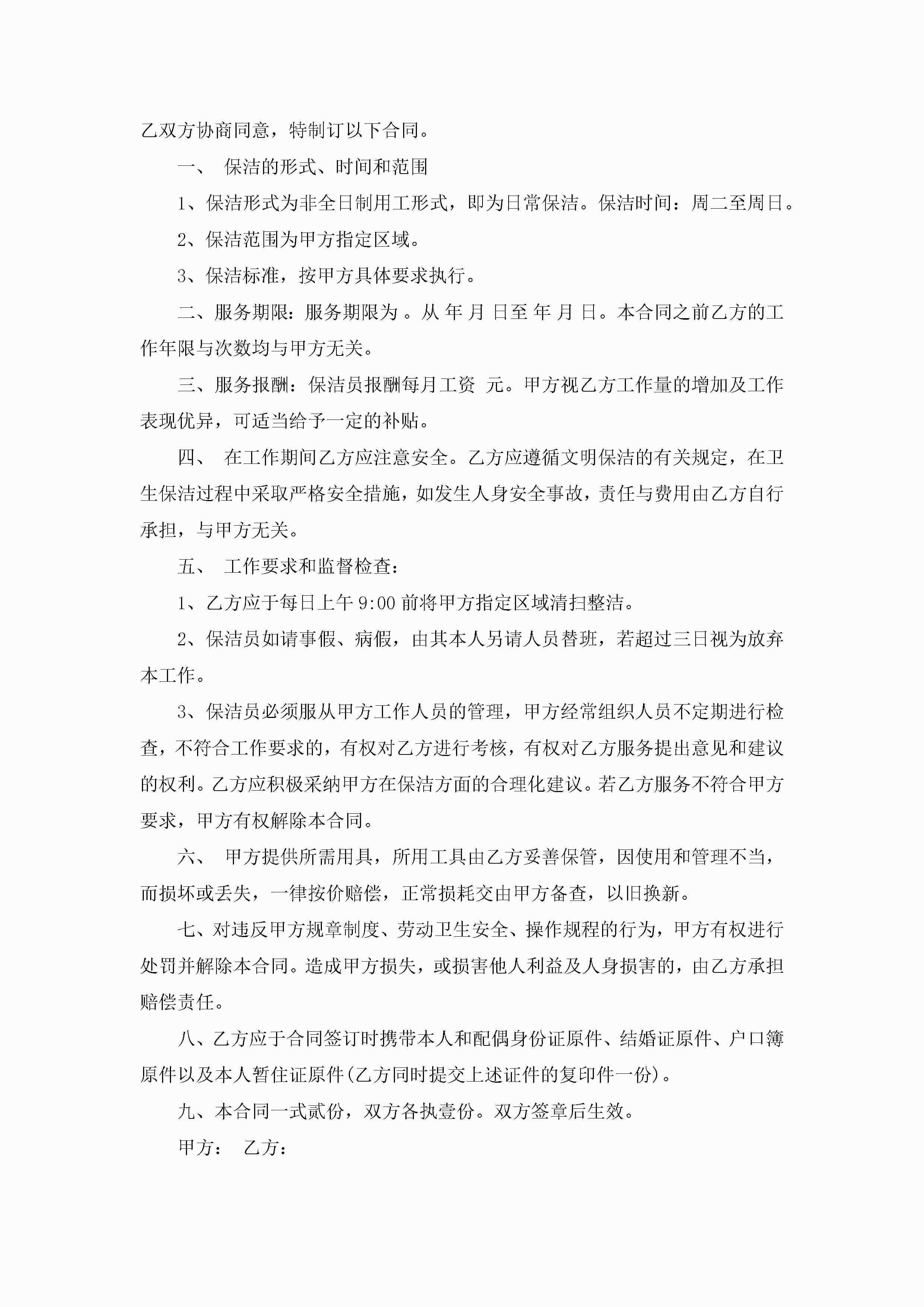 2022保洁承包合同协议书7篇jugei3月23日 01:36发布关注207 2022保洁承包合同协议书7篇此内容为付费资源,请付费后查看¥10.9 单篇文档限时特惠¥15个人会员开通企业会员开通立即下载无需登陆!可直接快捷下载单个模板付费资源© 版权声明THE ENDWord模板# 实用文档# 实用模板# 合同模板# 承包合同 如有问题,可点击最底部“联系我们”联系客服 分享QQ空间微博QQ好友海报分享复制链接收藏