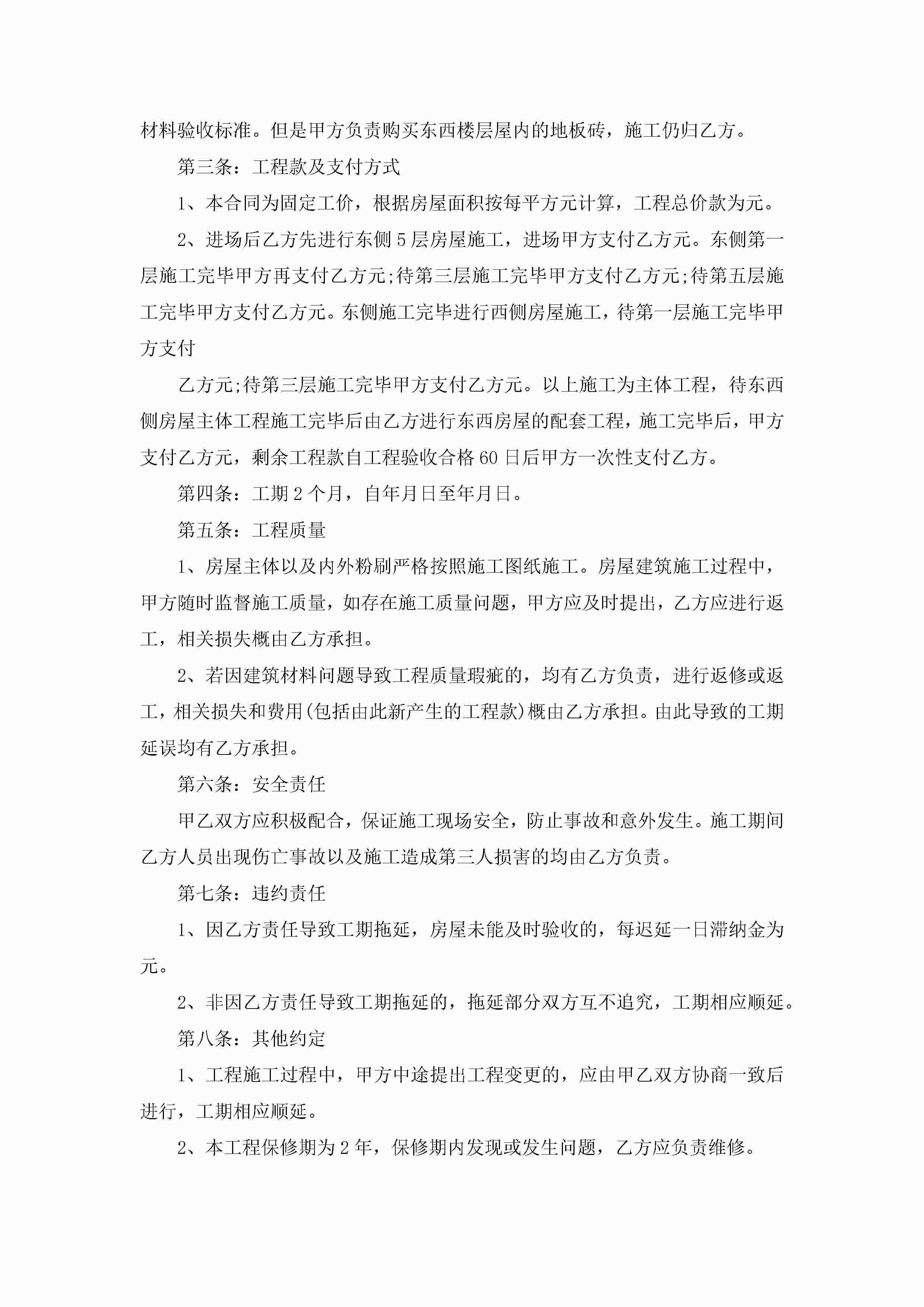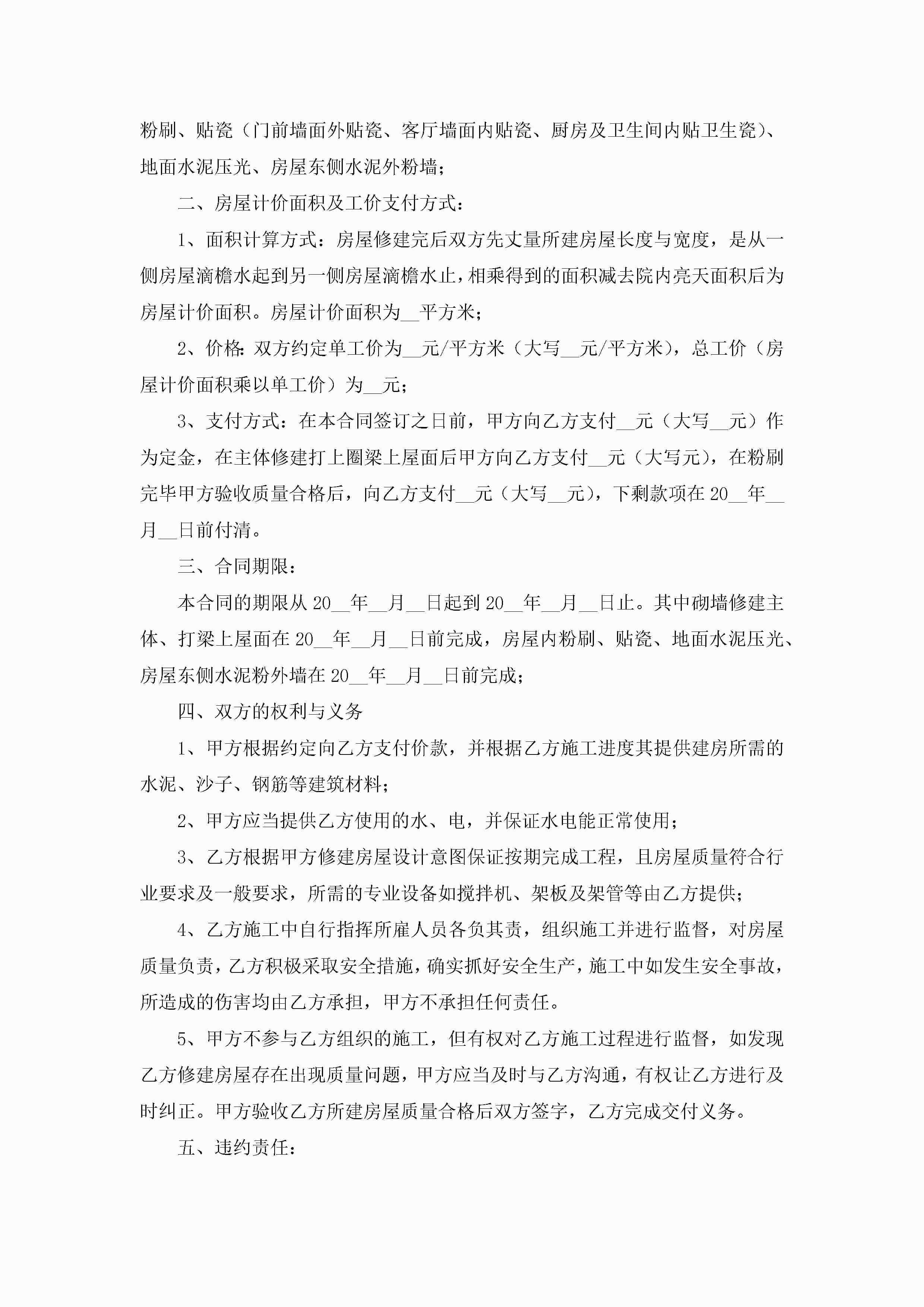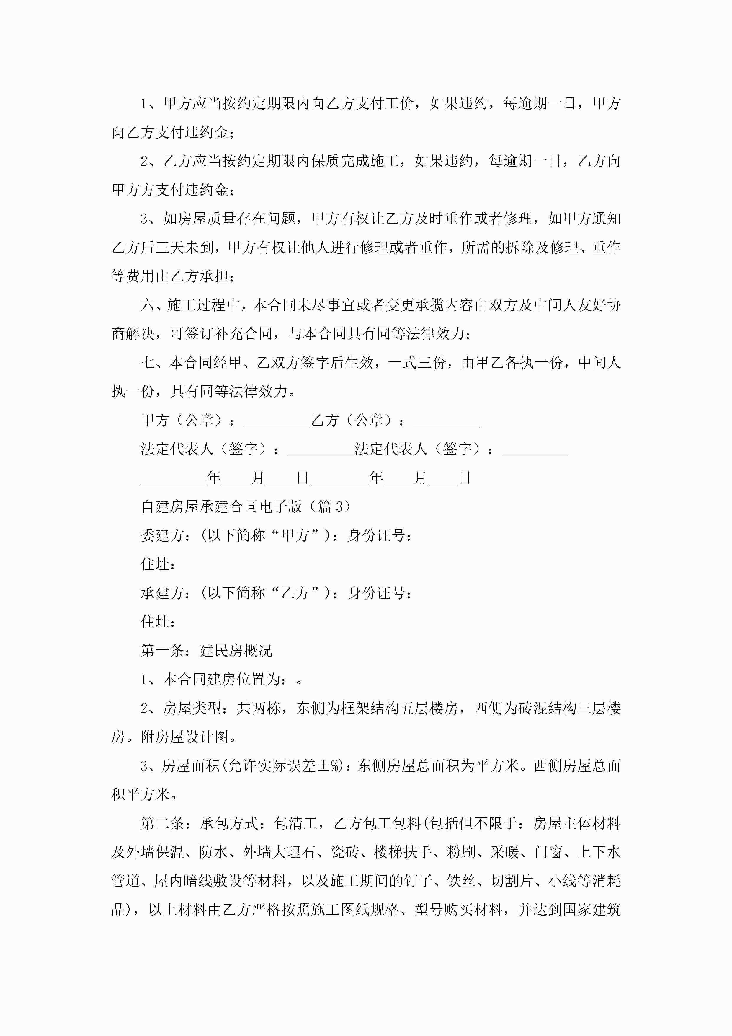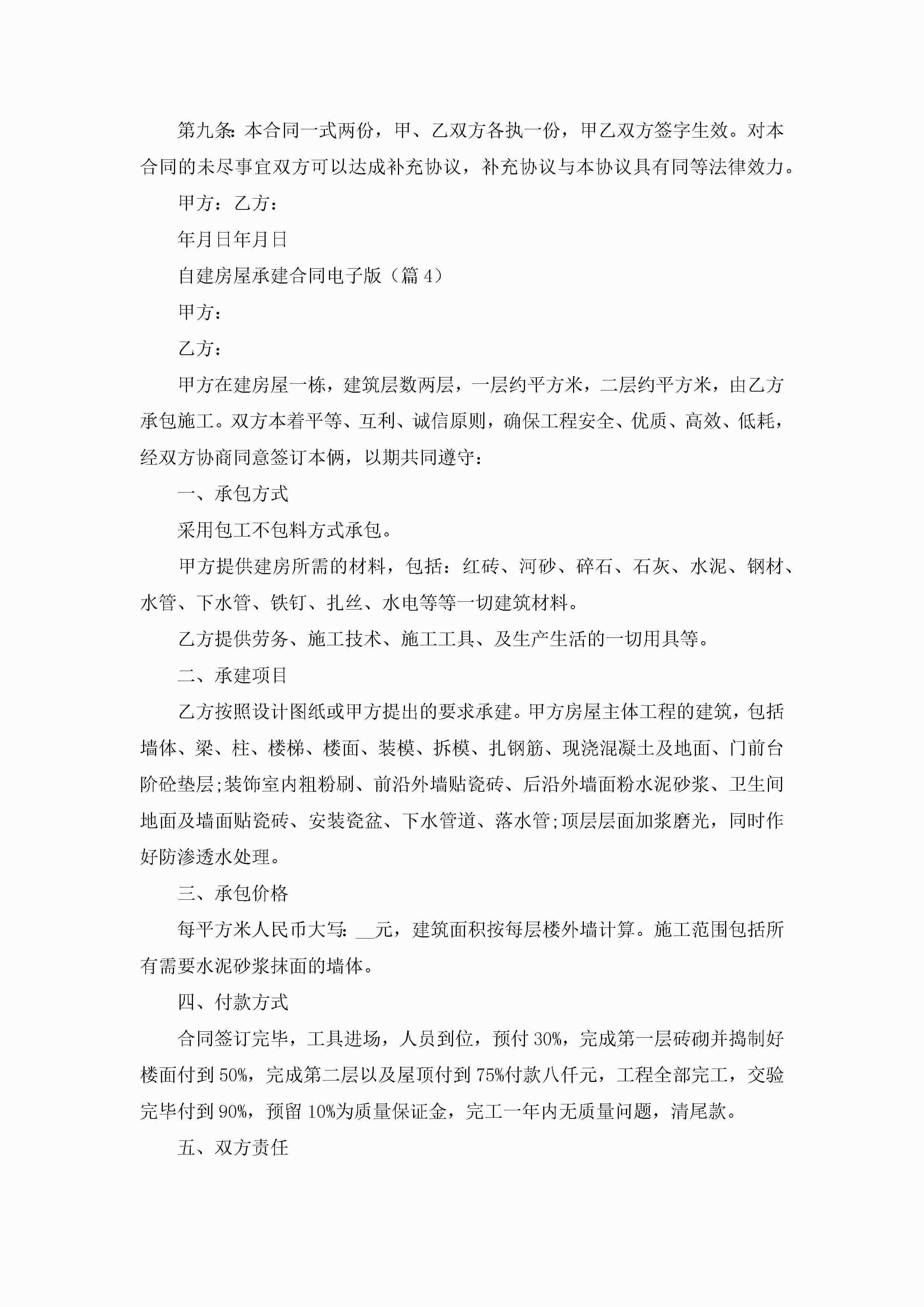 自建房屋承建合同电子版【通用7篇】jugei3月23日 01:36发布关注237 自建房屋承建合同电子版【通用7篇】此内容为付费资源,请付费后查看¥10.9 单篇文档限时特惠¥15个人会员开通企业会员开通立即下载无需登陆!可直接快捷下载单个模板付费资源© 版权声明THE ENDWord模板# 实用文档# 合同模板# 承包合同# 自建房屋承建合同电子版 如有问题,可点击最底部“联系我们”联系客服 分享QQ空间微博QQ好友海报分享复制链接收藏