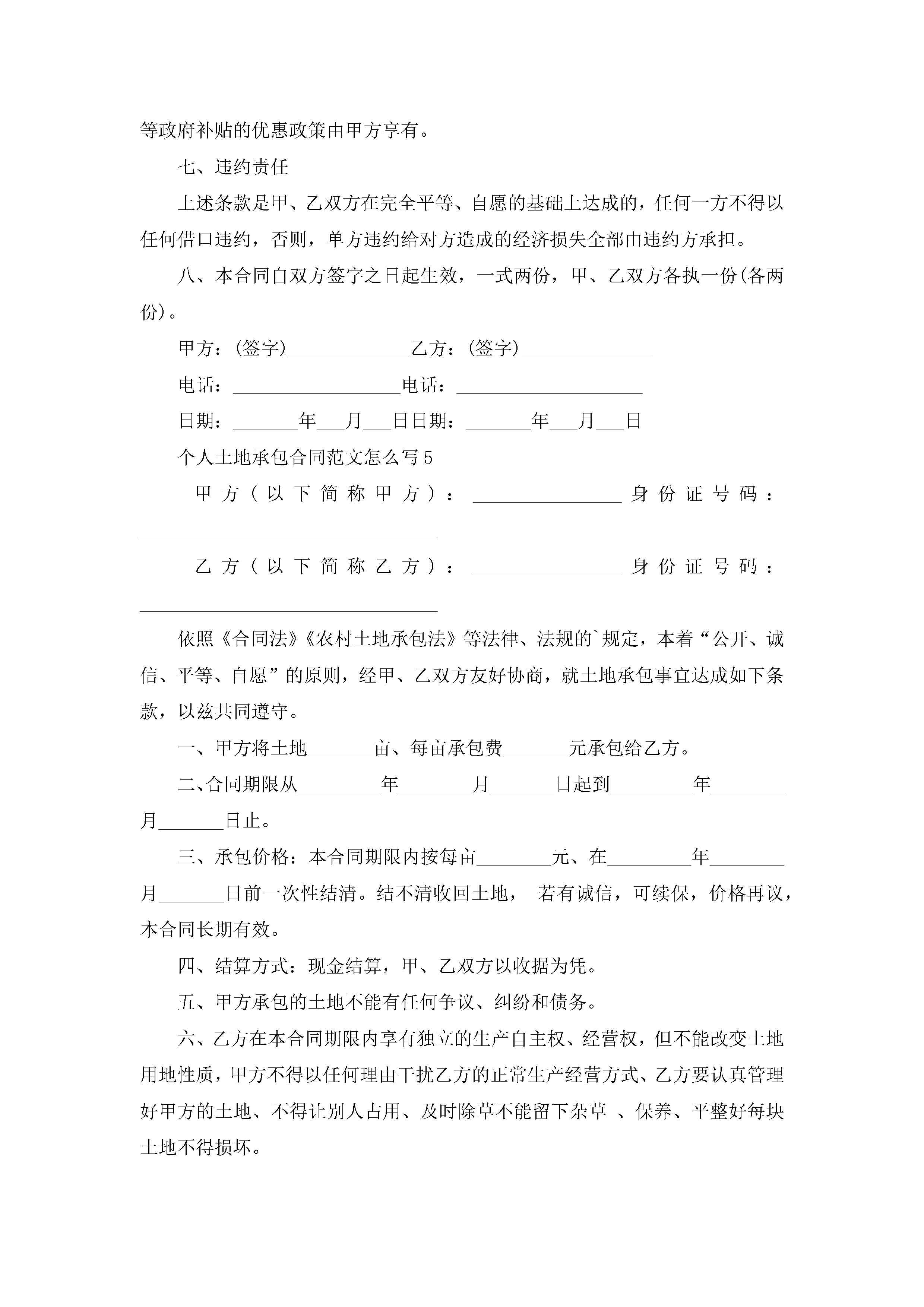 个人土地承包合同范文怎么写5篇jugei3月23日 01:36发布关注262 个人土地承包合同范文怎么写5篇此内容为付费资源,请付费后查看¥10.9 单篇文档限时特惠¥15个人会员开通企业会员开通立即下载无需登陆!可直接快捷下载单个模板付费资源© 版权声明THE ENDWord模板# 实用文档# 实用模板# 合同模板# 承包合同 如有问题,可点击最底部“联系我们”联系客服 分享QQ空间微博QQ好友海报分享复制链接收藏