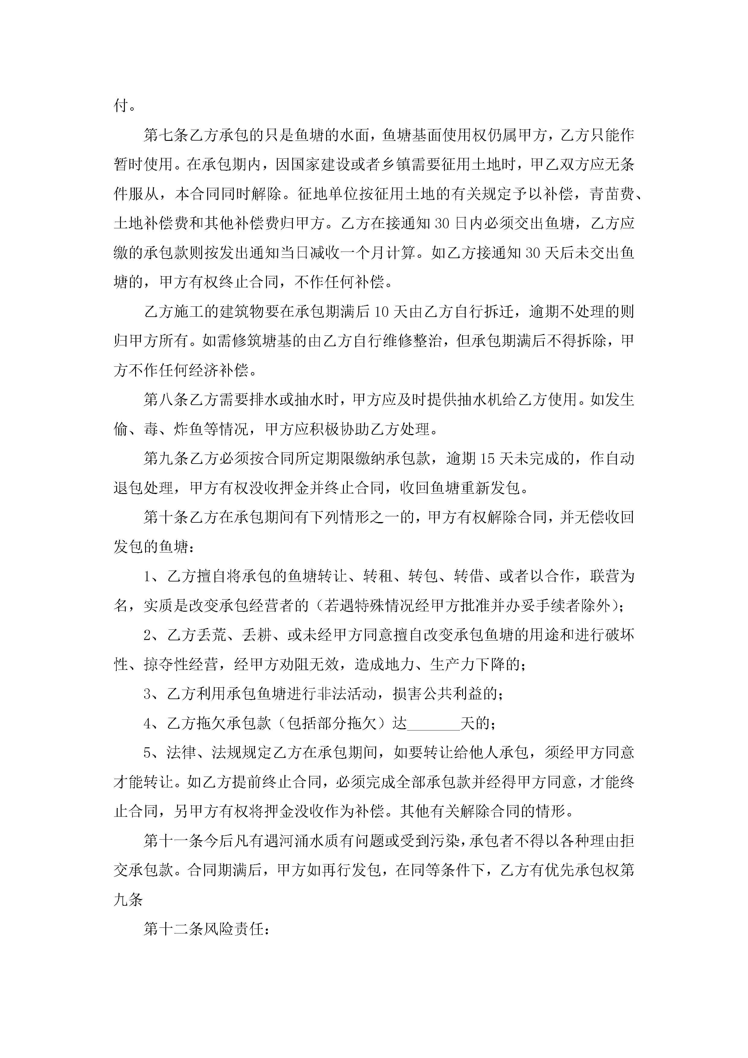 鱼塘养殖承包合同【7篇】jugei3月23日 01:36发布关注192 鱼塘养殖承包合同【7篇】此内容为付费资源,请付费后查看¥10.9 单篇文档限时特惠¥15个人会员开通企业会员开通立即下载无需登陆!可直接快捷下载单个模板付费资源© 版权声明THE ENDWord模板# 实用文档# 实用模板# 合同模板# 承包合同 如有问题,可点击最底部“联系我们”联系客服 分享QQ空间微博QQ好友海报分享复制链接收藏