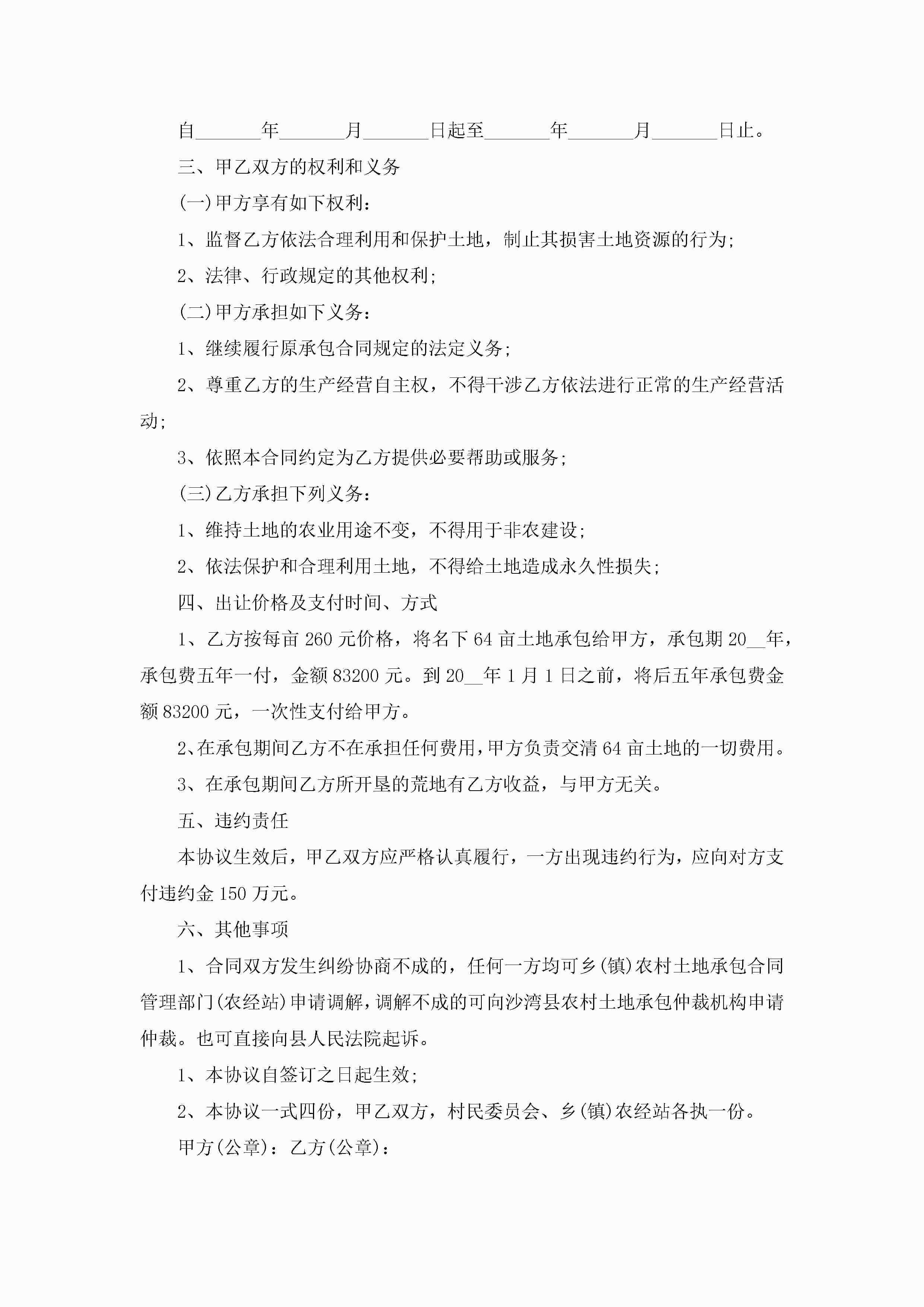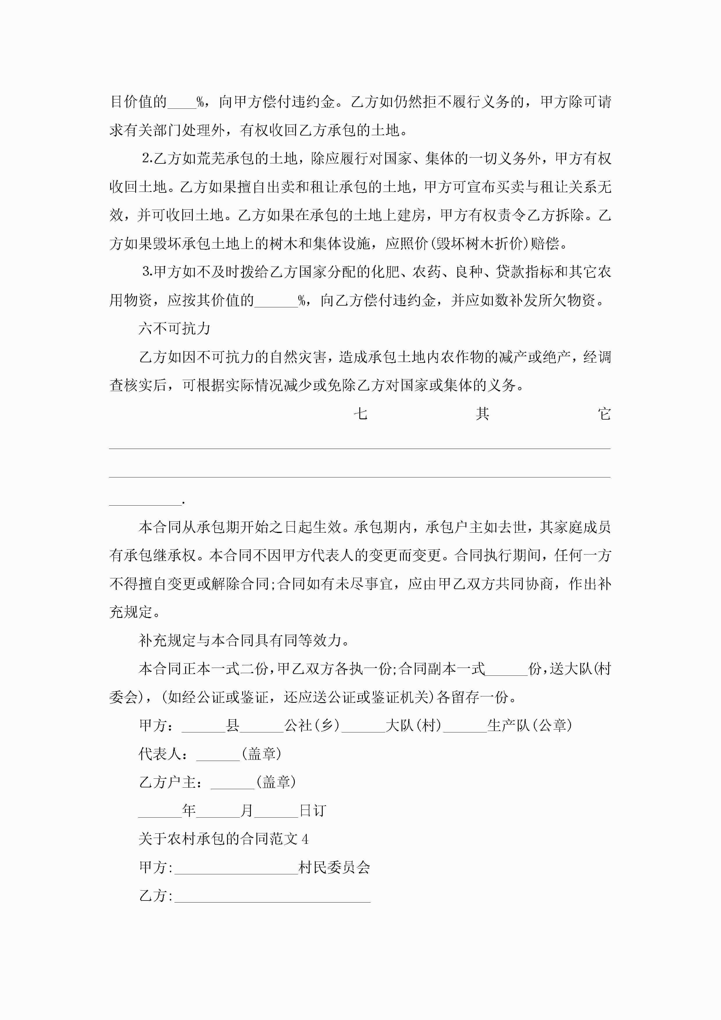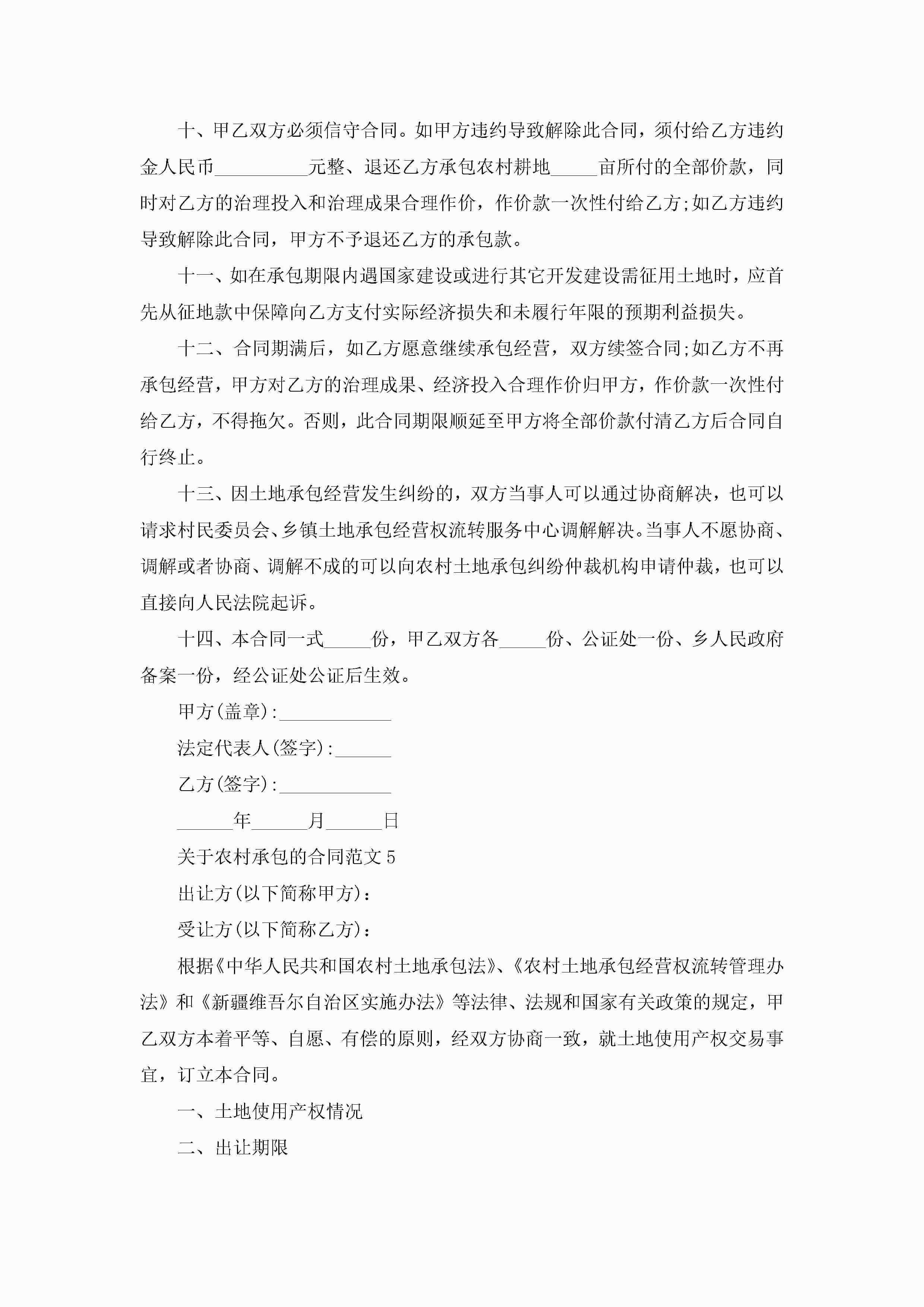 关于农村承包的合同范文5篇jugei3月23日 01:36发布关注230 关于农村承包的合同范文5篇此内容为付费资源,请付费后查看¥10.9 单篇文档限时特惠¥15个人会员开通企业会员开通立即下载无需登陆!可直接快捷下载单个模板付费资源© 版权声明THE ENDWord模板# 实用文档# 实用模板# 合同模板# 承包合同 如有问题,可点击最底部“联系我们”联系客服 分享QQ空间微博QQ好友海报分享复制链接收藏