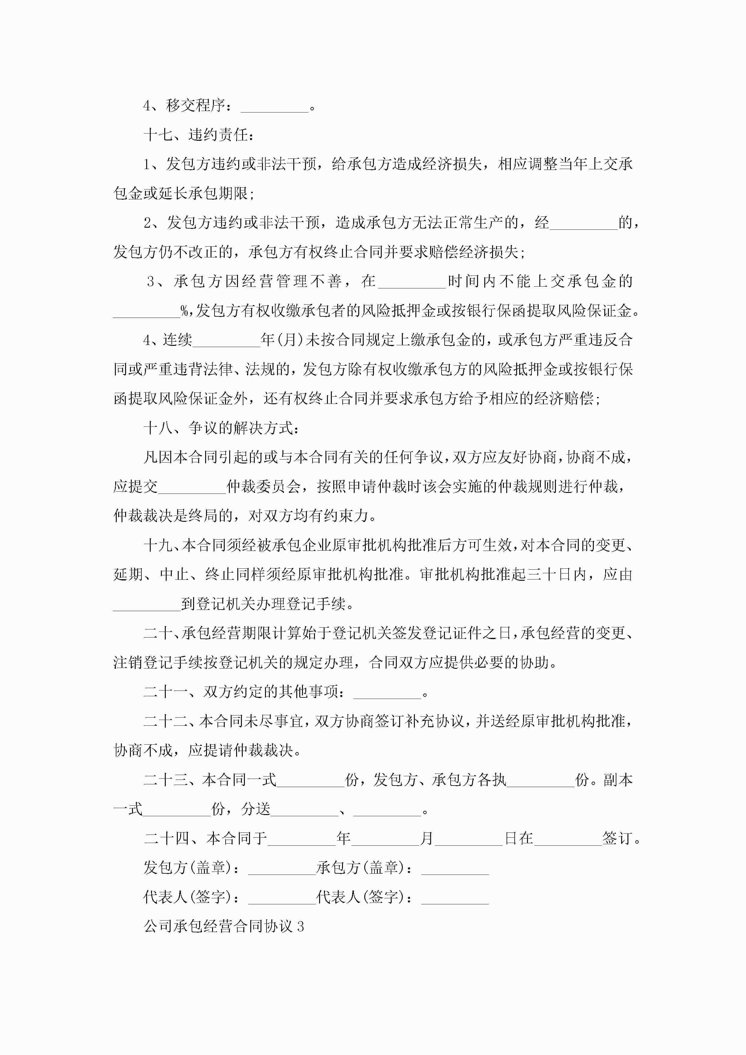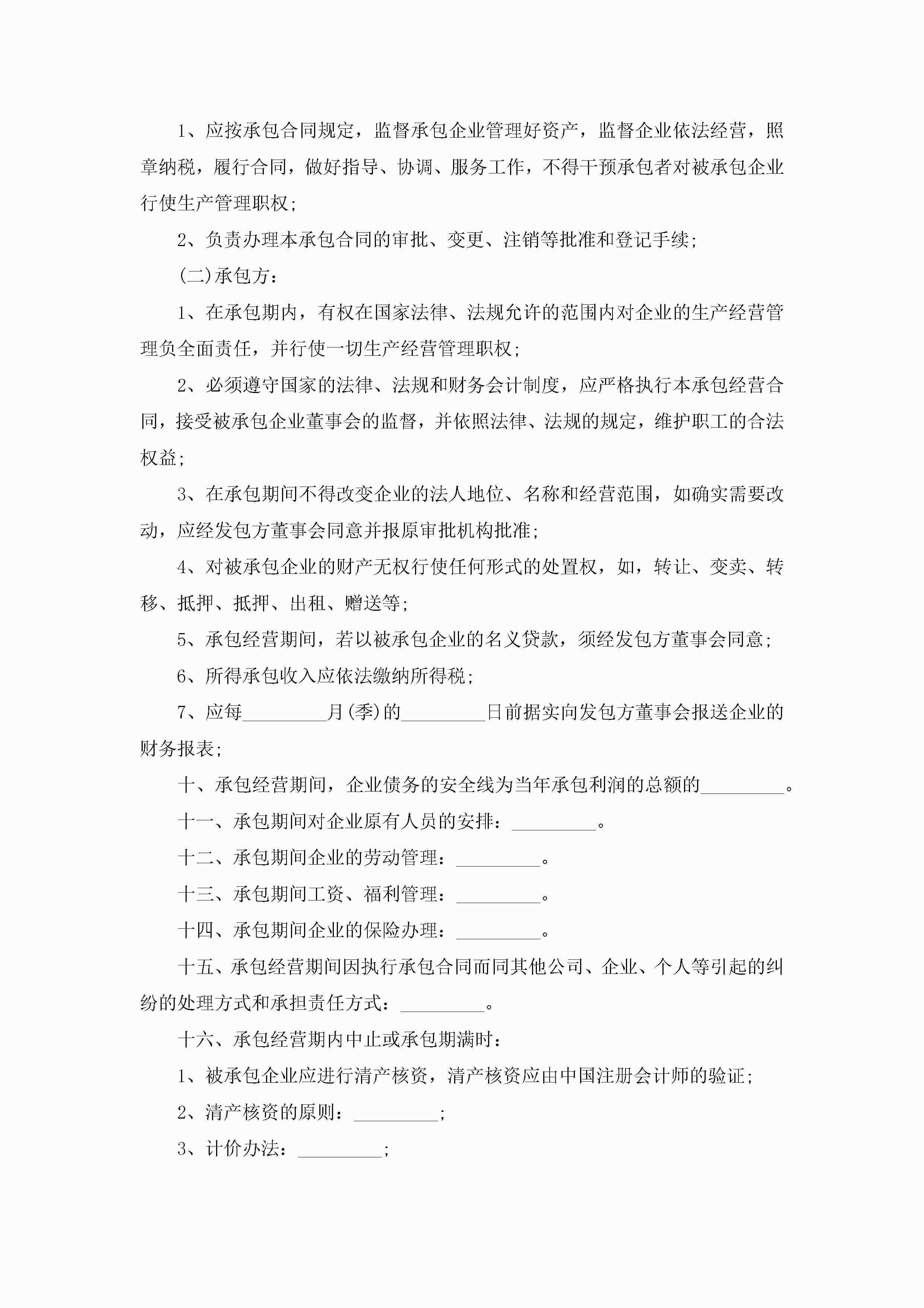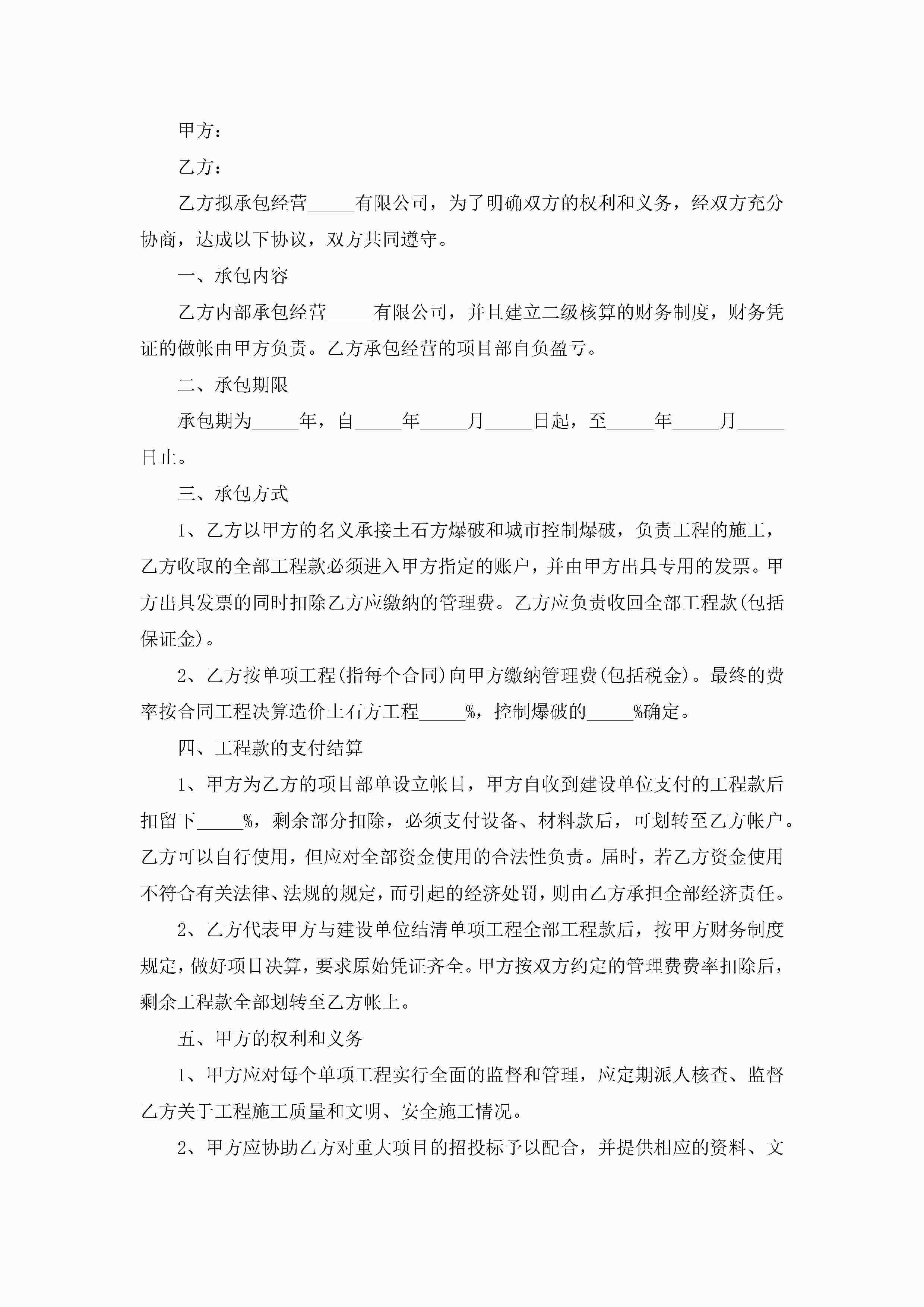 公司承包经营合同协议2022简单版范本5篇jugei3月23日 01:36发布关注192 公司承包经营合同协议2022简单版范本5篇此内容为付费资源,请付费后查看¥10.9 单篇文档限时特惠¥15个人会员开通企业会员开通立即下载无需登陆!可直接快捷下载单个模板付费资源© 版权声明THE ENDWord模板# 实用文档# 实用模板# 合同模板# 承包合同 如有问题,可点击最底部“联系我们”联系客服 分享QQ空间微博QQ好友海报分享复制链接收藏
