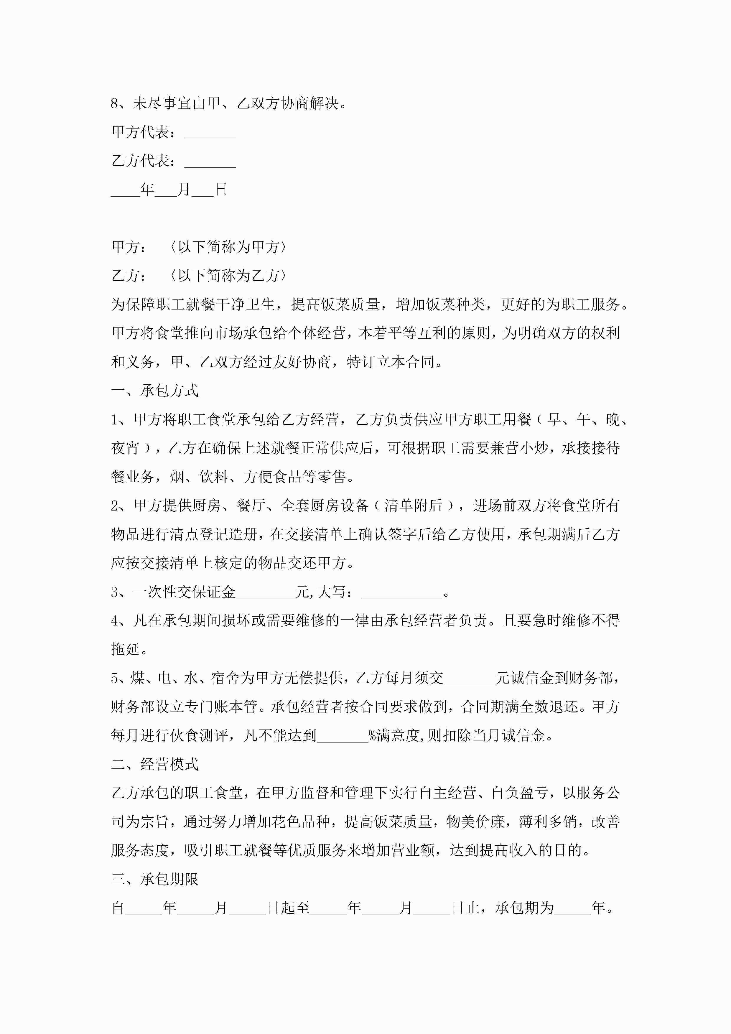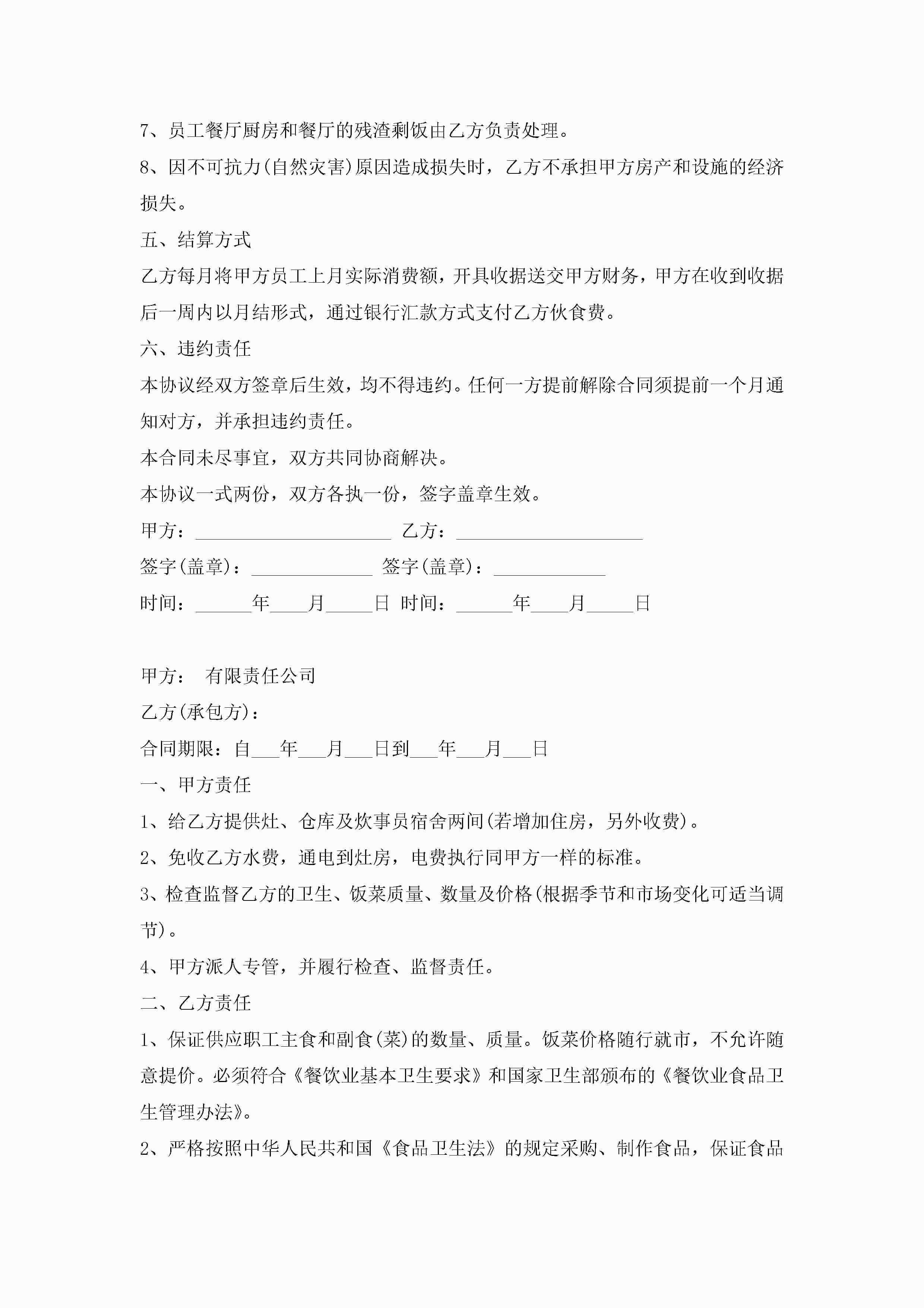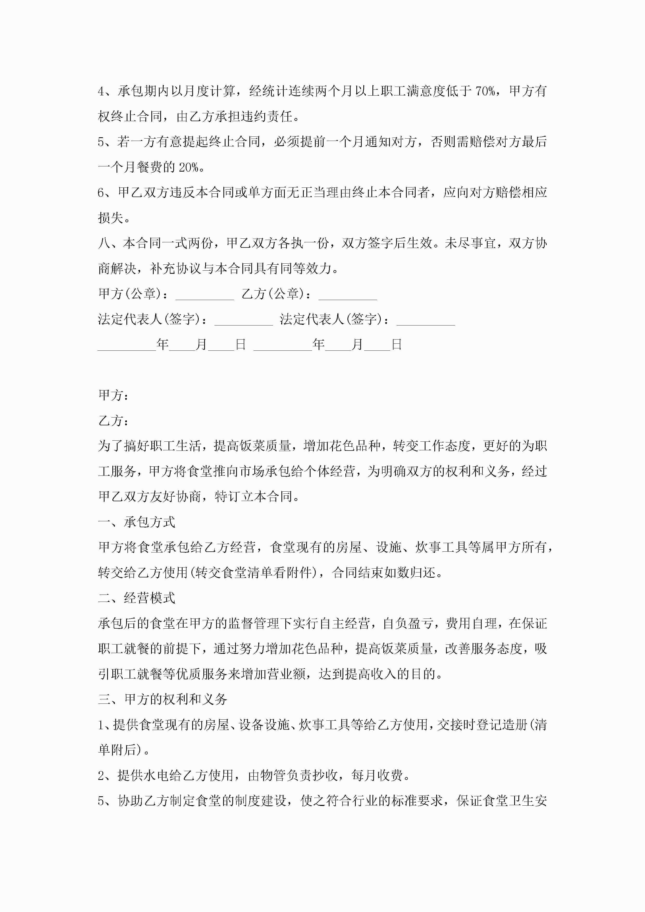 职工食堂承包合同【7篇】jugei3月23日 01:36发布关注190 职工食堂承包合同【7篇】此内容为付费资源,请付费后查看¥10.9 单篇文档限时特惠¥15个人会员开通企业会员开通立即下载无需登陆!可直接快捷下载单个模板付费资源© 版权声明THE ENDWord模板# 实用文档# 实用模板# 合同模板# 承包合同 如有问题,可点击最底部“联系我们”联系客服 分享QQ空间微博QQ好友海报分享复制链接收藏