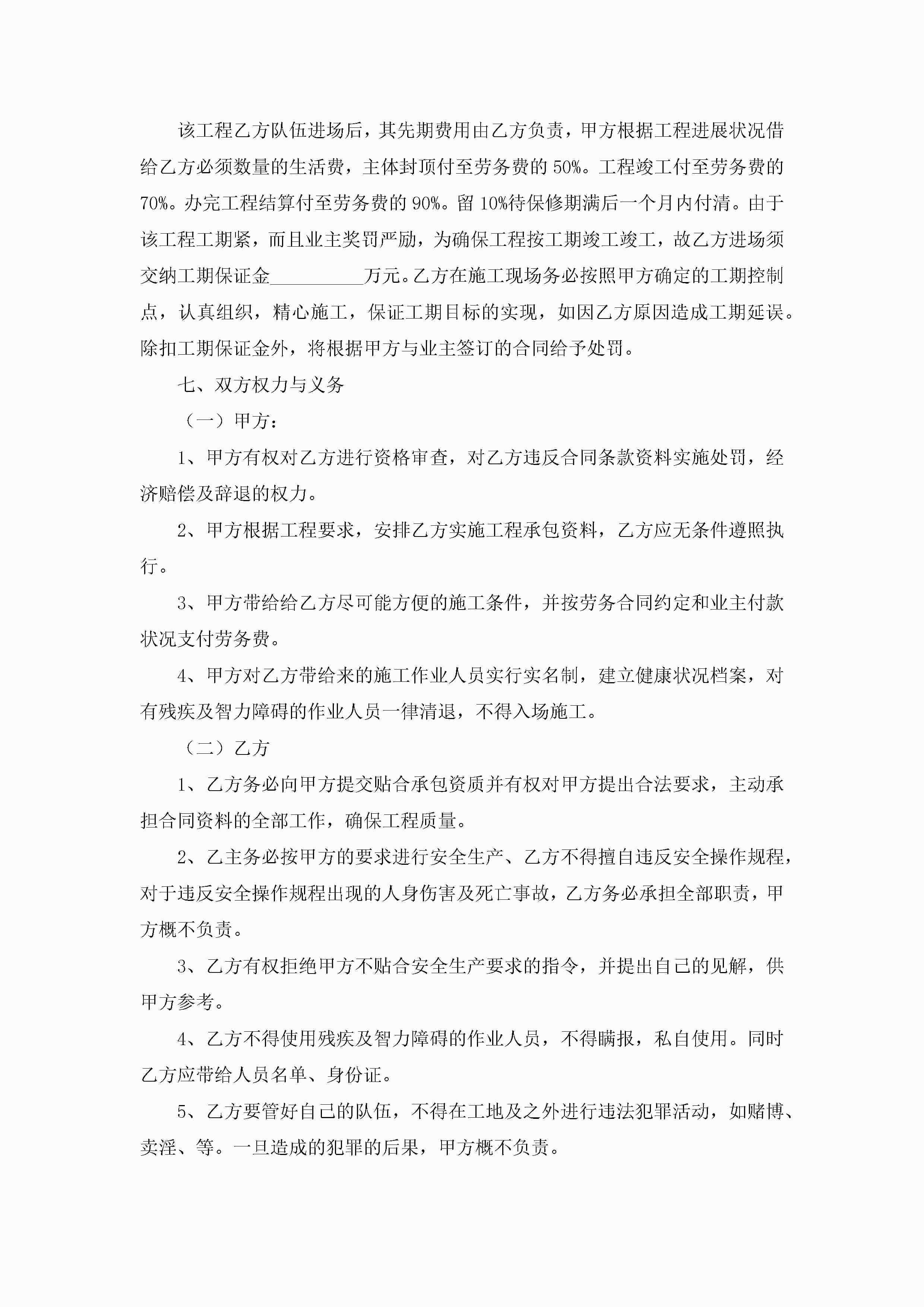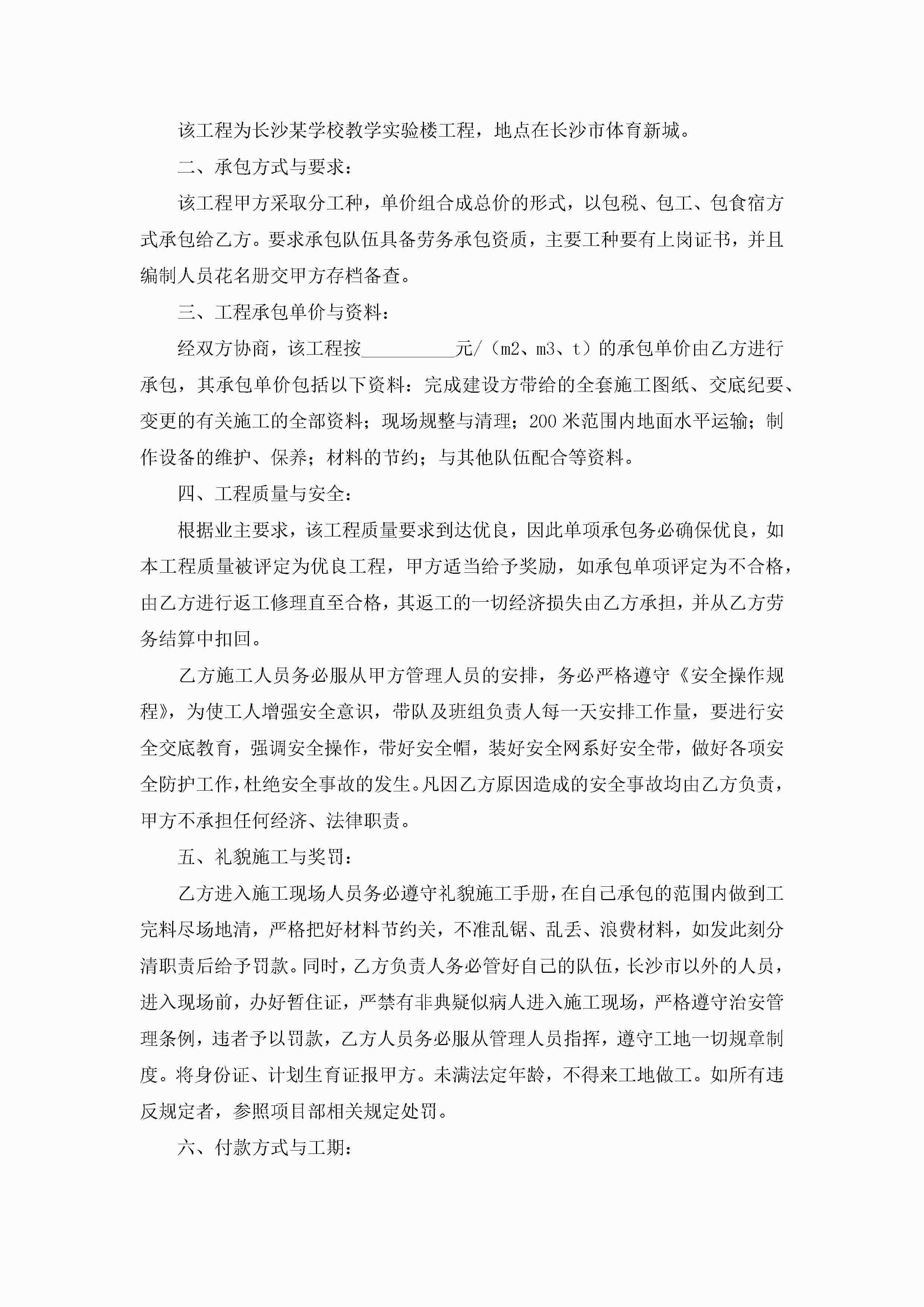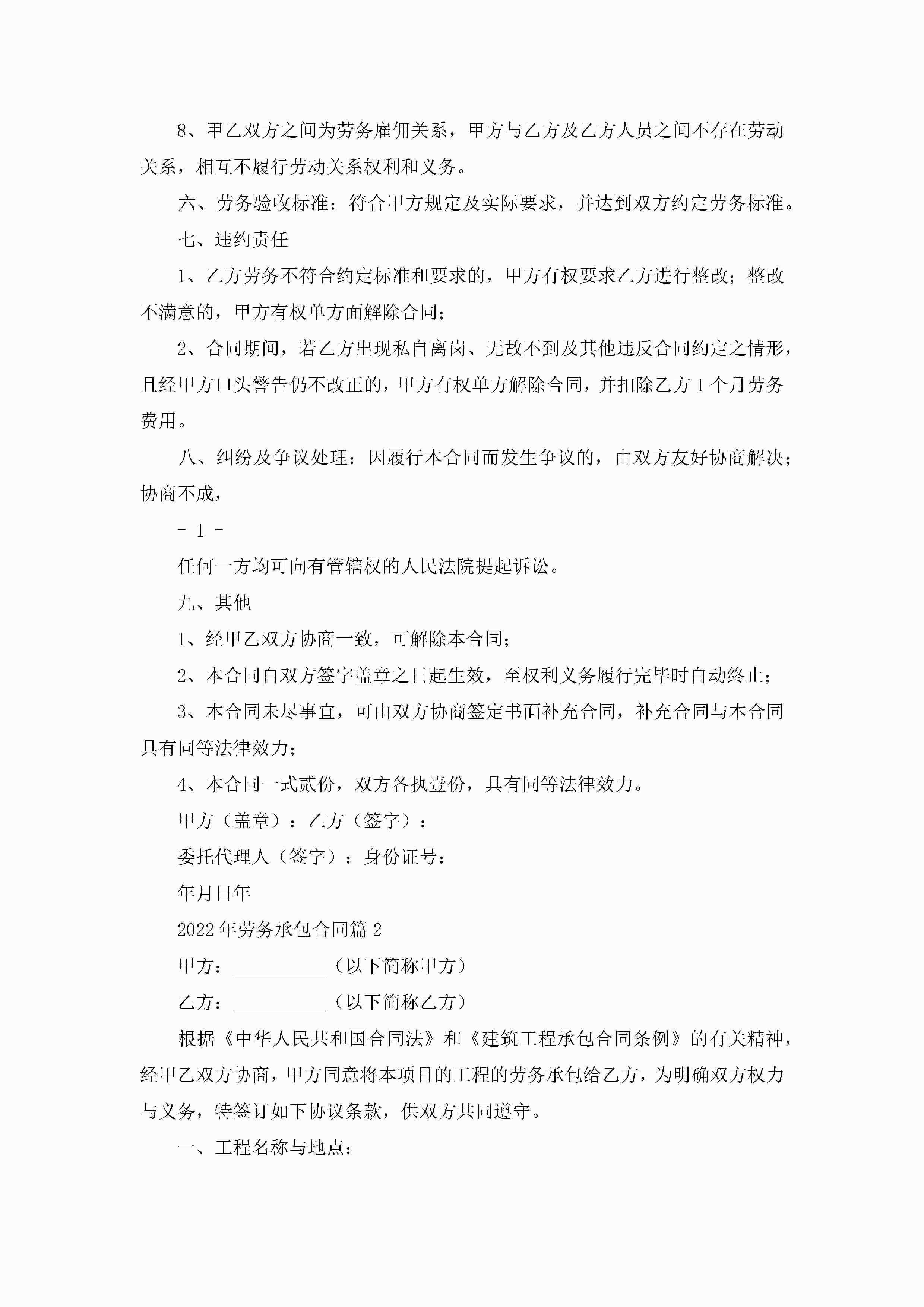 2022年劳务承包合同8篇(精选)jugei3月23日 01:36发布关注210 2022年劳务承包合同8篇(精选)此内容为付费资源,请付费后查看¥10.9 单篇文档限时特惠¥15个人会员开通企业会员开通立即下载无需登陆!可直接快捷下载单个模板付费资源© 版权声明THE ENDWord模板# 实用文档# 实用模板# 合同模板# 承包合同 如有问题,可点击最底部“联系我们”联系客服 分享QQ空间微博QQ好友海报分享复制链接收藏