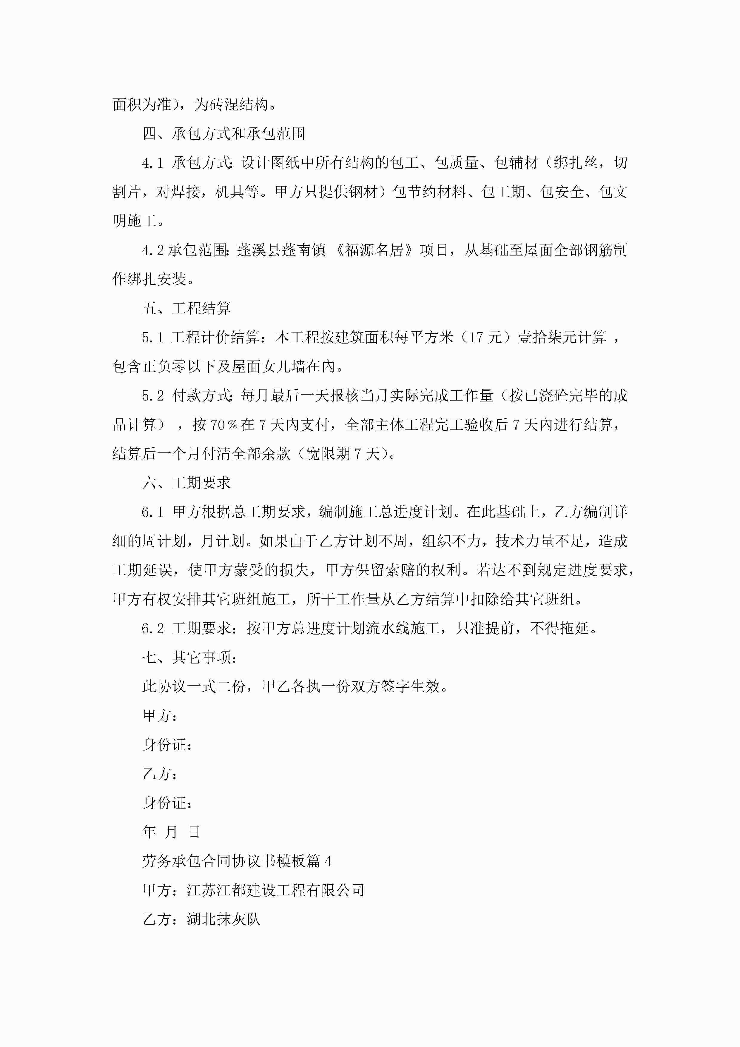 劳务承包合同协议书模板(精选7篇)jugei3月23日 01:36发布关注204 劳务承包合同协议书模板(精选7篇)此内容为付费资源,请付费后查看¥10.9 单篇文档限时特惠¥15个人会员开通企业会员开通立即下载无需登陆!可直接快捷下载单个模板付费资源© 版权声明THE ENDWord模板# 实用文档# 实用模板# 合同模板# 承包合同 如有问题,可点击最底部“联系我们”联系客服 分享QQ空间微博QQ好友海报分享复制链接收藏