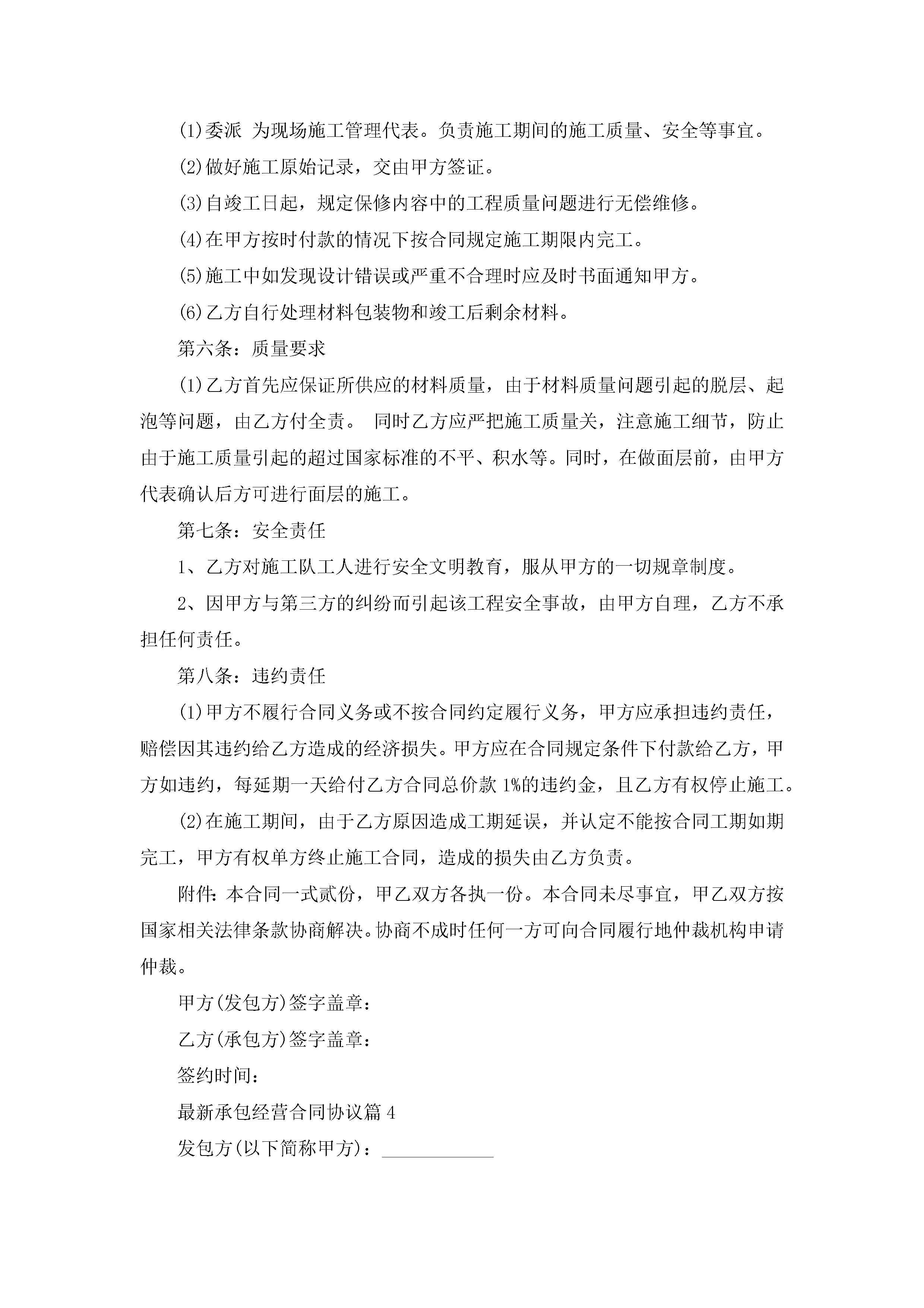关于最新承包经营合同协议10篇jugei3月23日 01:36发布关注215 关于最新承包经营合同协议10篇此内容为付费资源,请付费后查看¥10.9 单篇文档限时特惠¥15个人会员开通企业会员开通立即下载无需登陆!可直接快捷下载单个模板付费资源© 版权声明THE ENDWord模板# 实用文档# 合同模板# 承包合同# 最新承包经营合同协议10篇 如有问题,可点击最底部“联系我们”联系客服 分享QQ空间微博QQ好友海报分享复制链接收藏