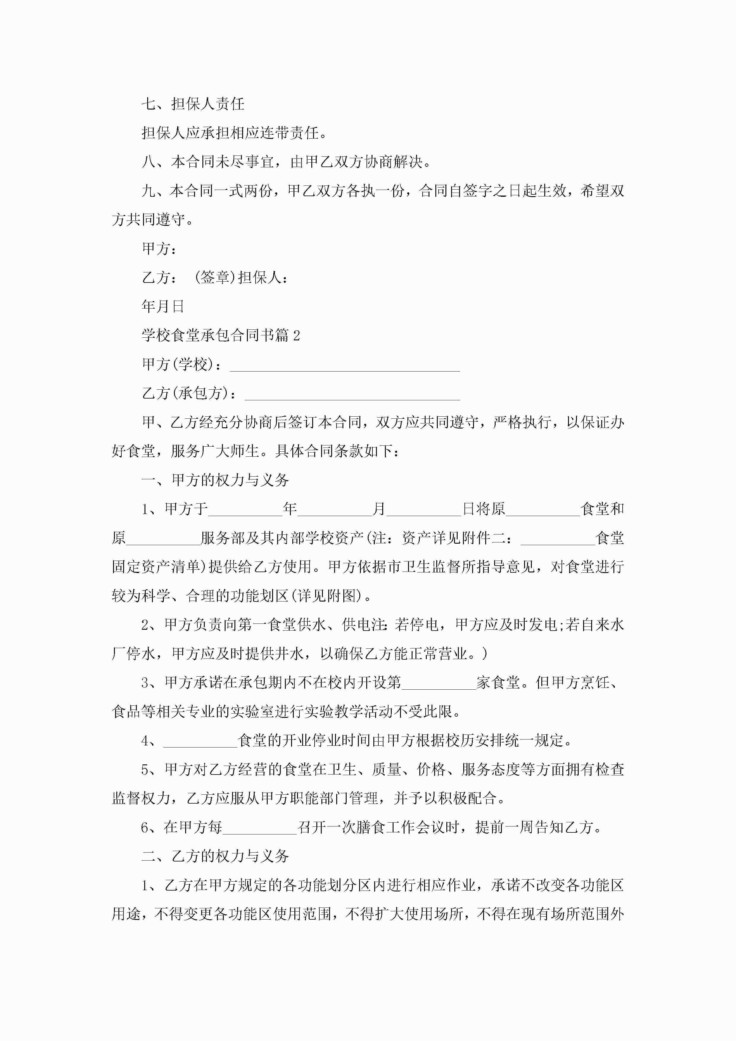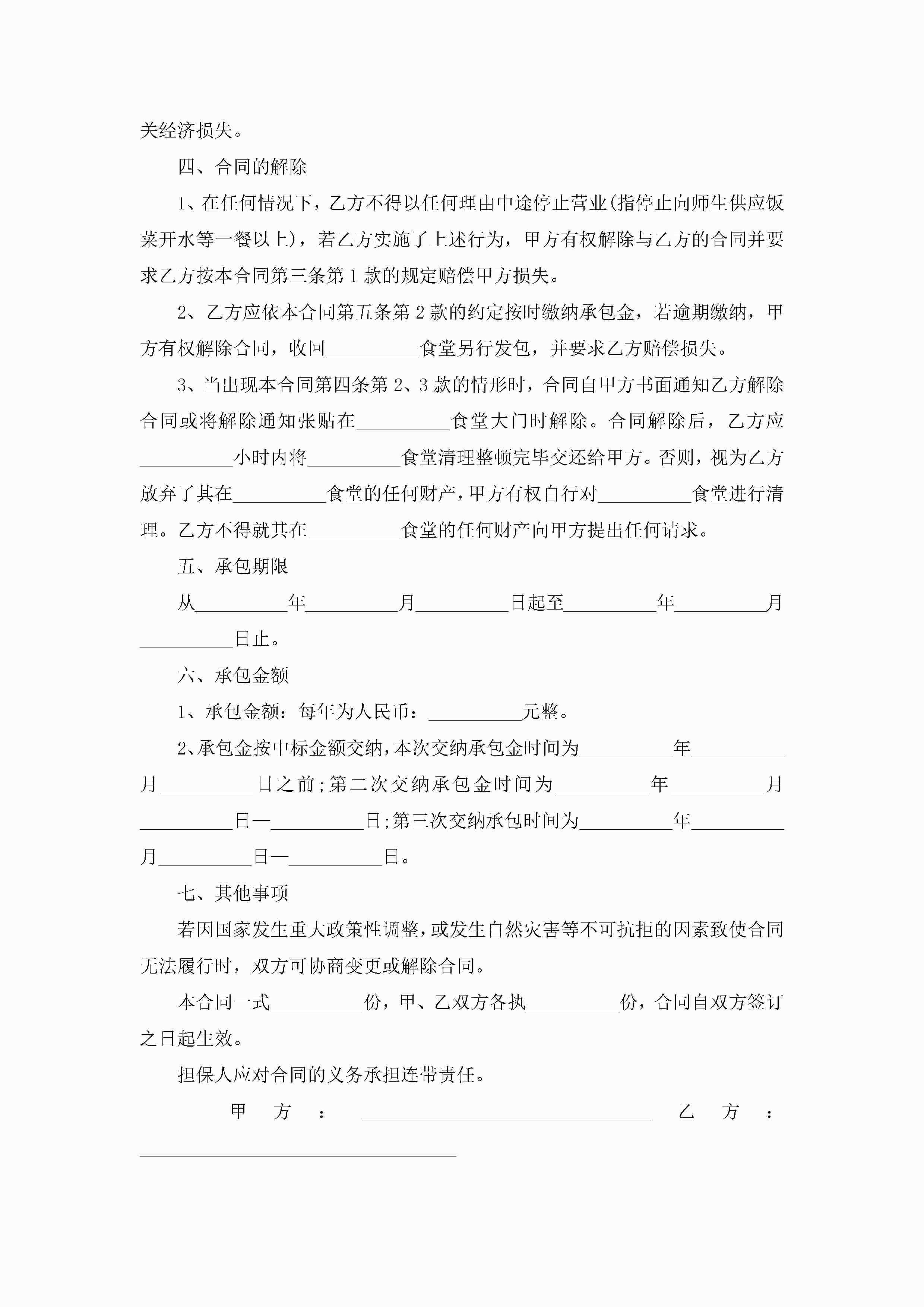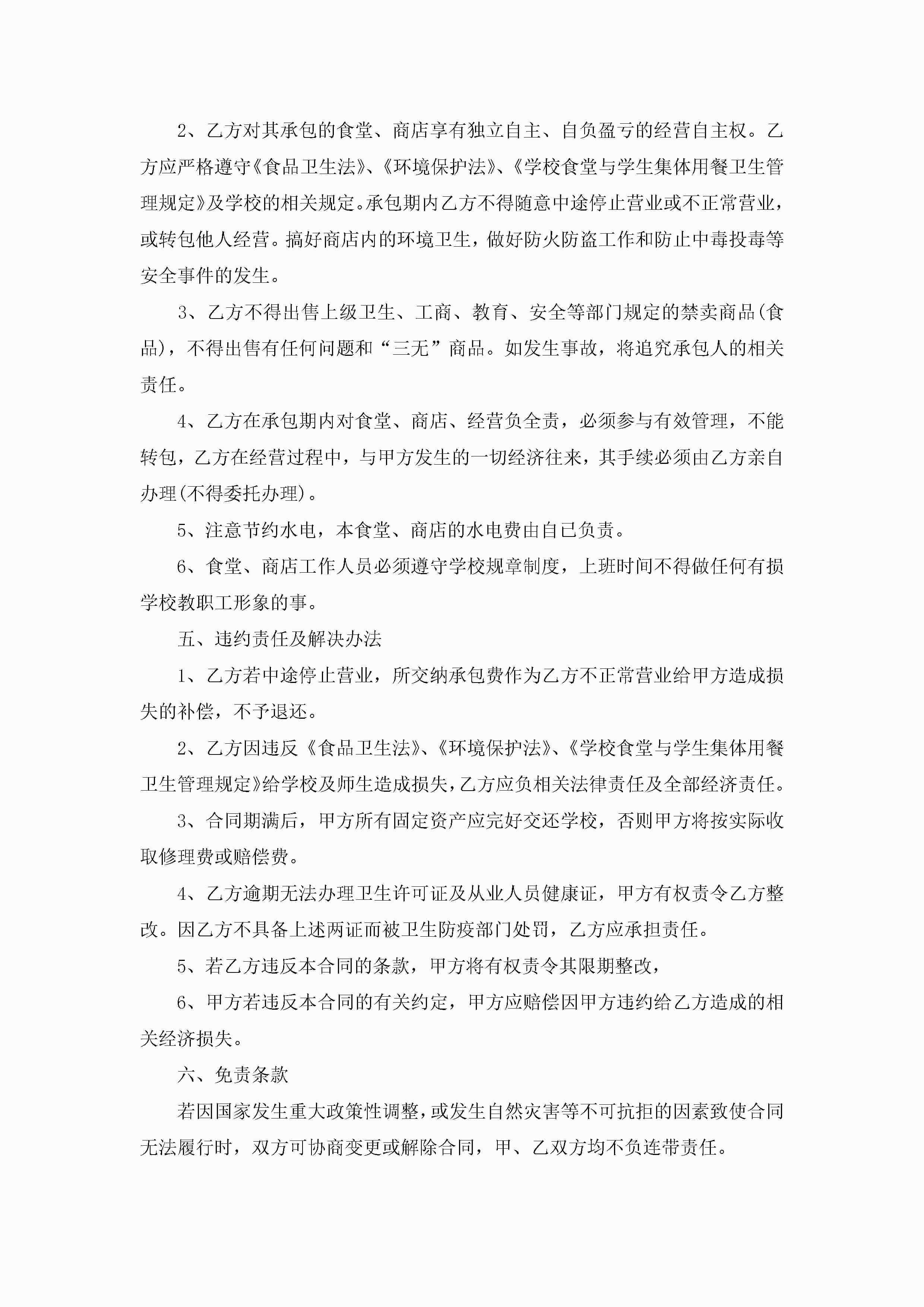 学校食堂承包合同书【7篇】jugei3月23日 01:36发布关注268 学校食堂承包合同书【7篇】此内容为付费资源,请付费后查看¥10.9 单篇文档限时特惠¥15个人会员开通企业会员开通立即下载无需登陆!可直接快捷下载单个模板付费资源© 版权声明THE ENDWord模板# 实用文档# 实用模板# 合同模板# 承包合同 如有问题,可点击最底部“联系我们”联系客服 分享QQ空间微博QQ好友海报分享复制链接收藏