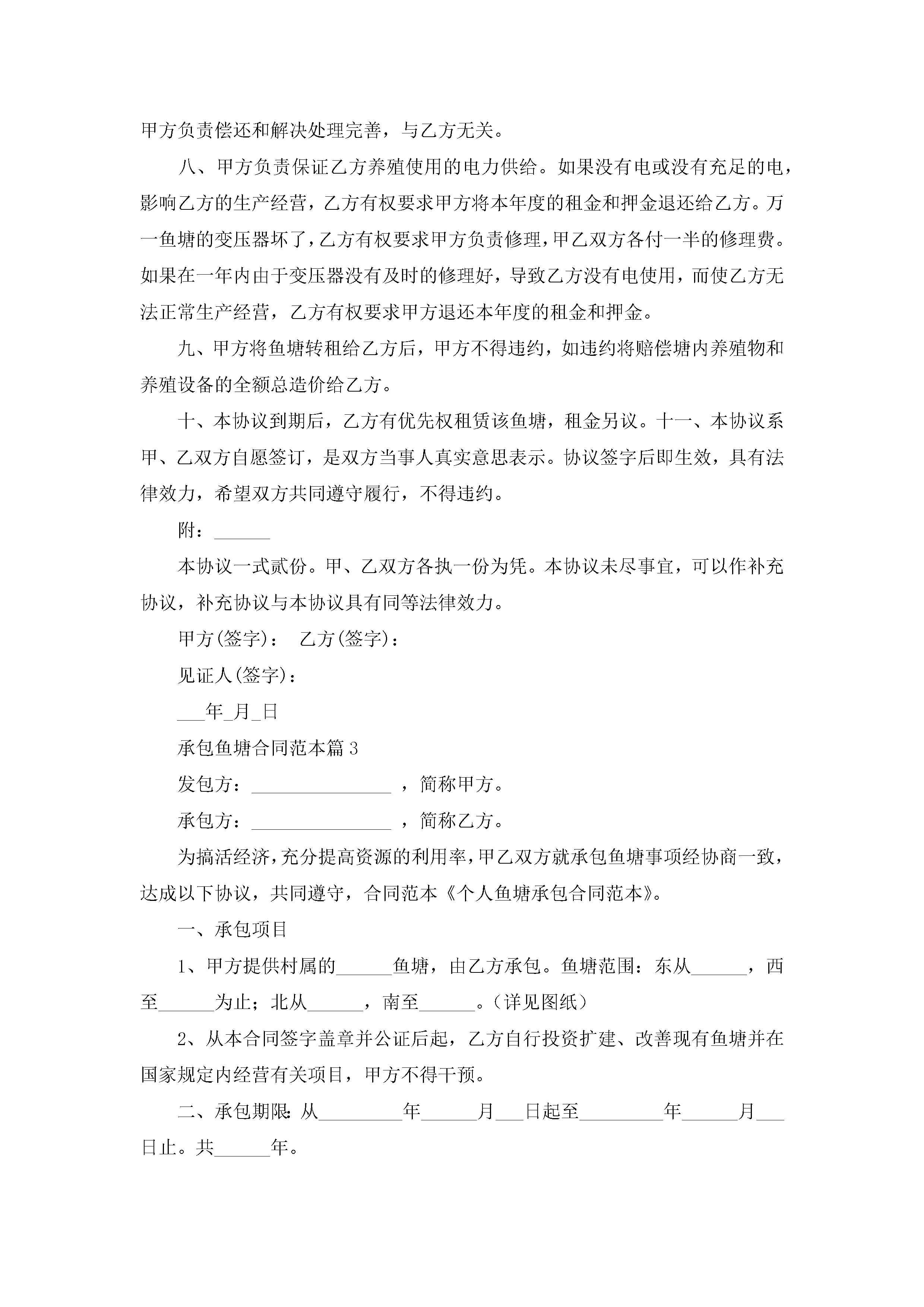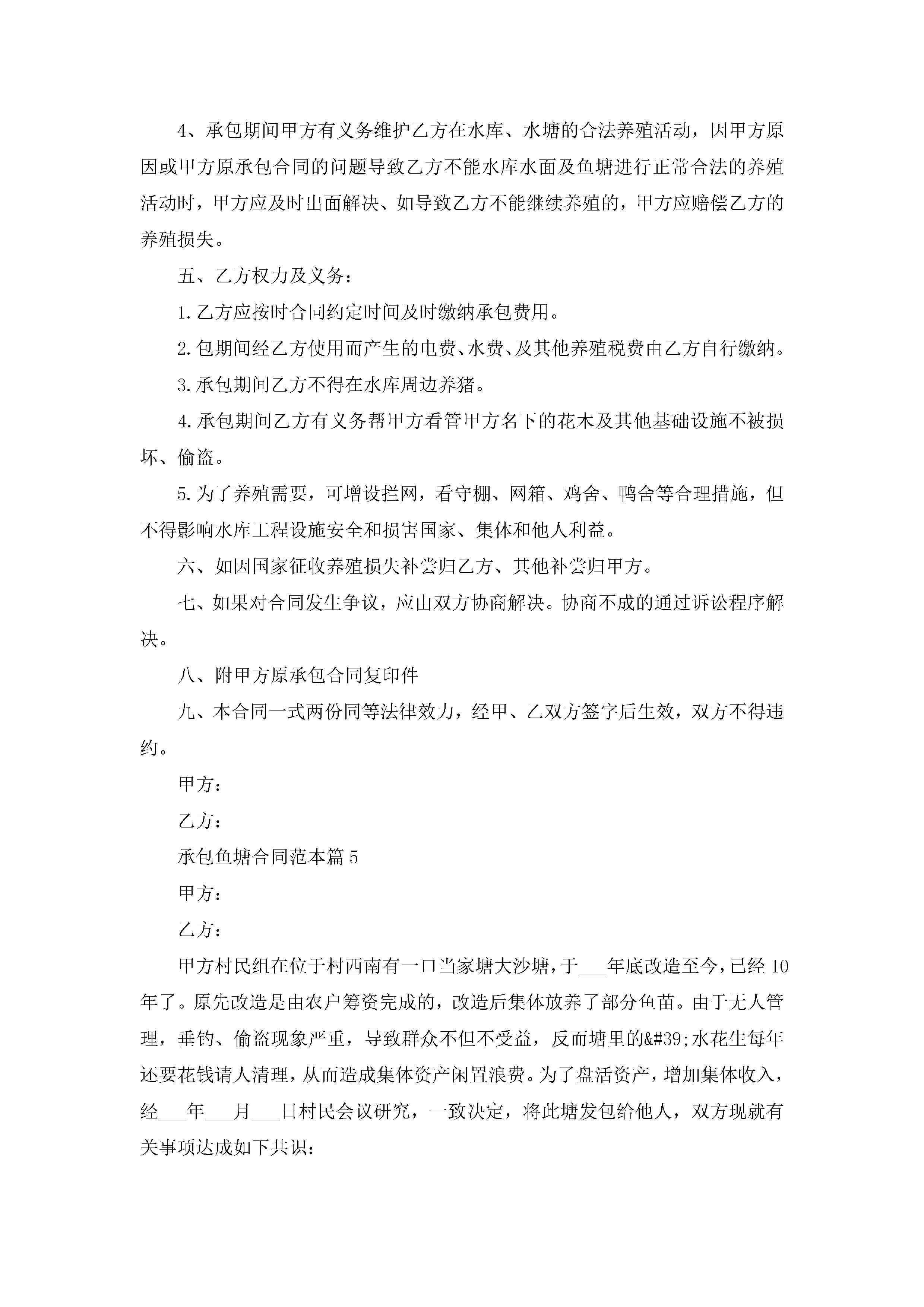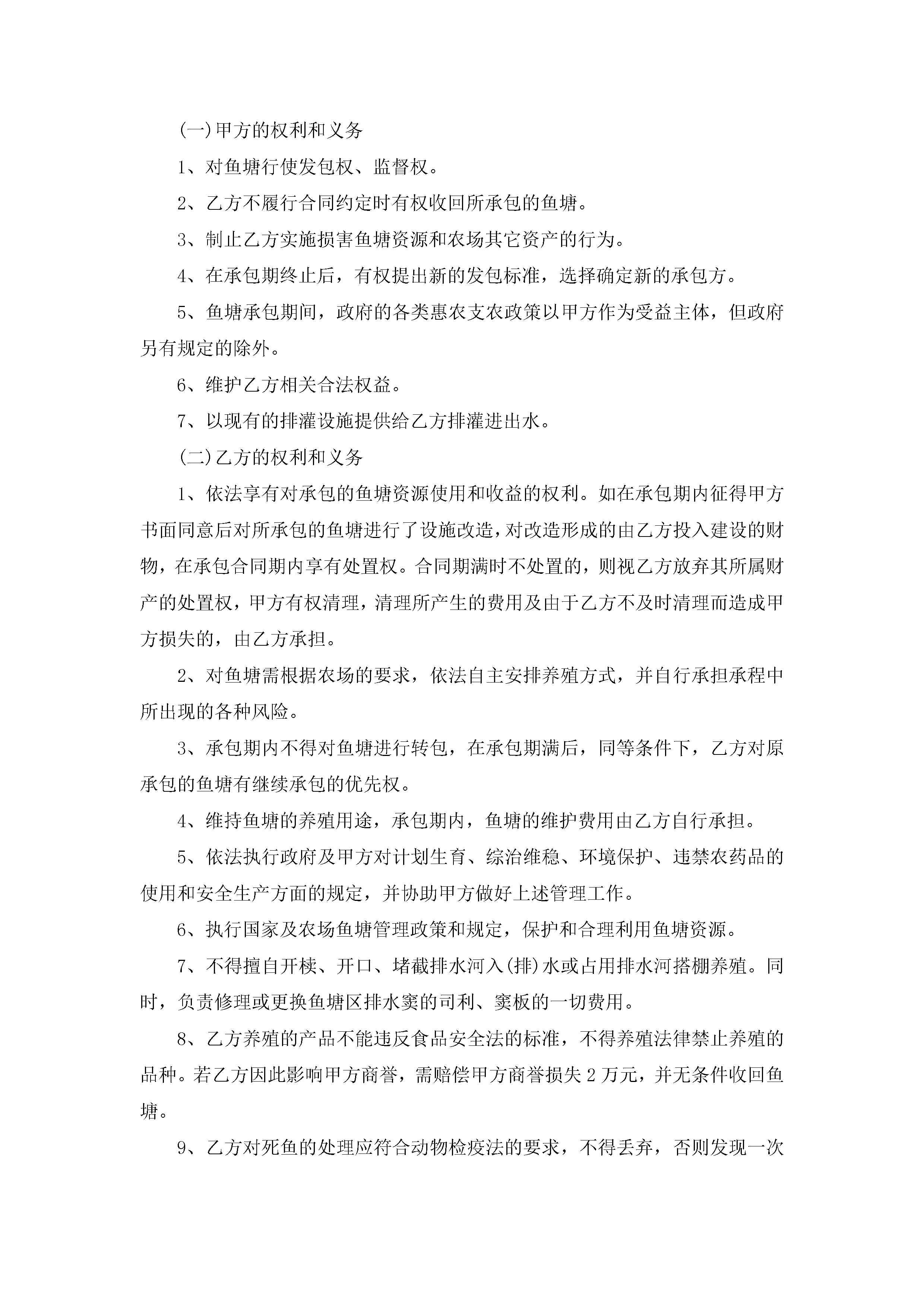 承包鱼塘合同范本【7篇】jugei3月23日 01:36发布关注247 承包鱼塘合同范本【7篇】此内容为付费资源,请付费后查看¥10.9 单篇文档限时特惠¥15个人会员开通企业会员开通立即下载无需登陆!可直接快捷下载单个模板付费资源© 版权声明THE ENDWord模板# 实用文档# 实用模板# 合同模板# 承包合同 如有问题,可点击最底部“联系我们”联系客服 分享QQ空间微博QQ好友海报分享复制链接收藏