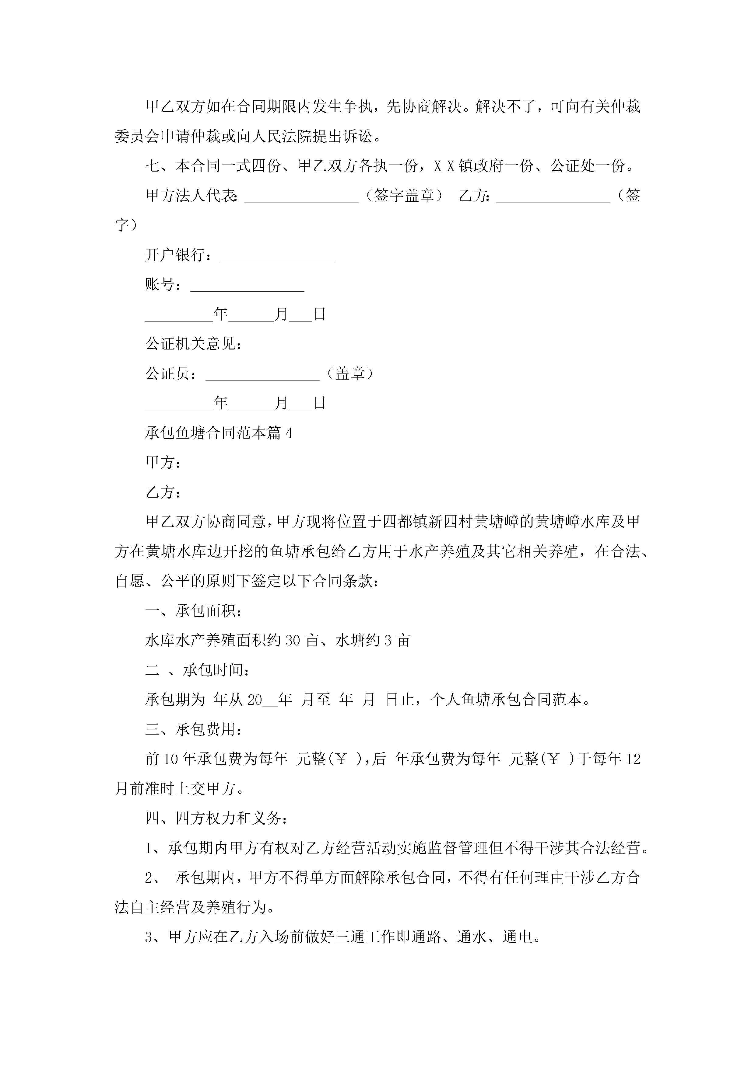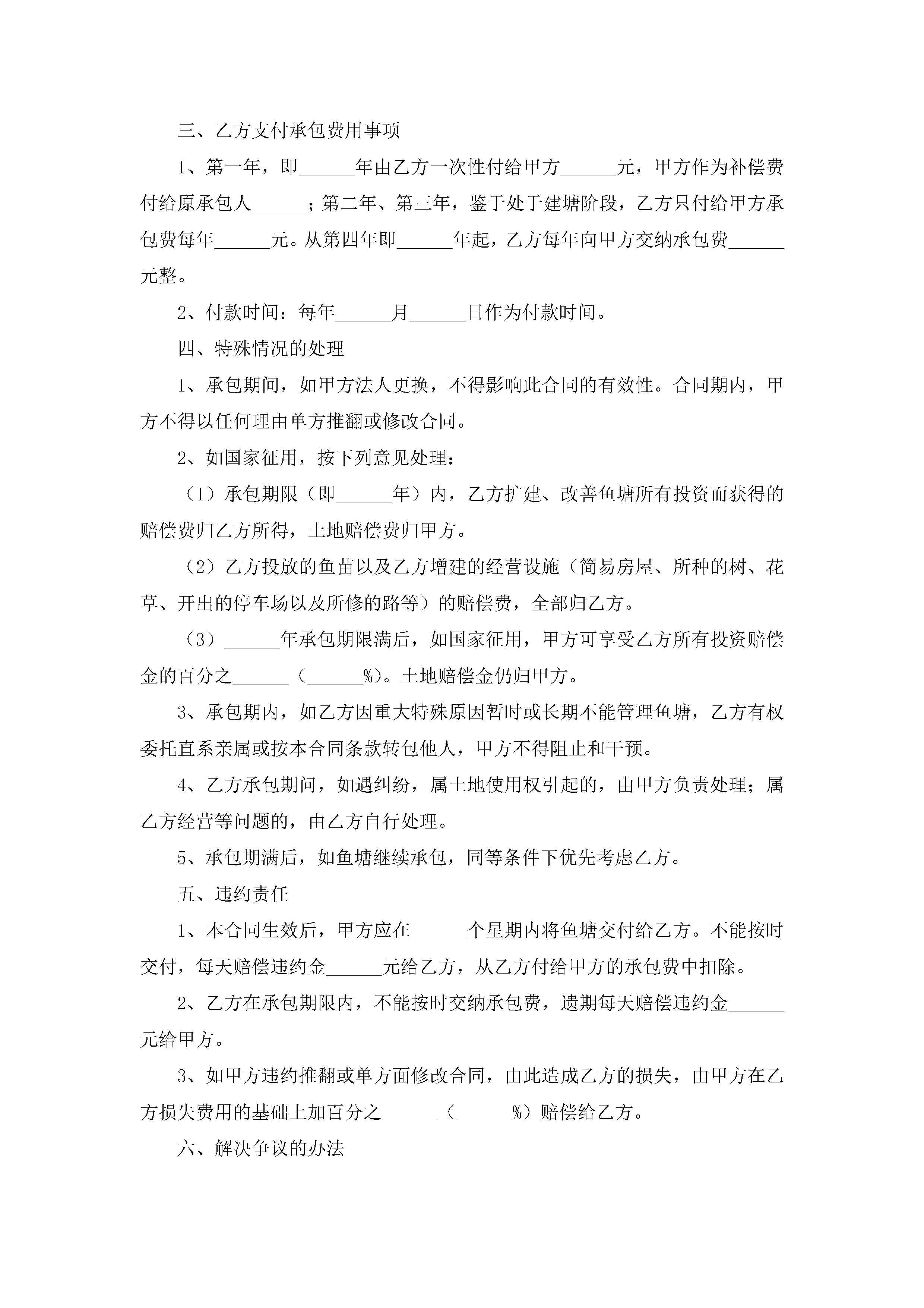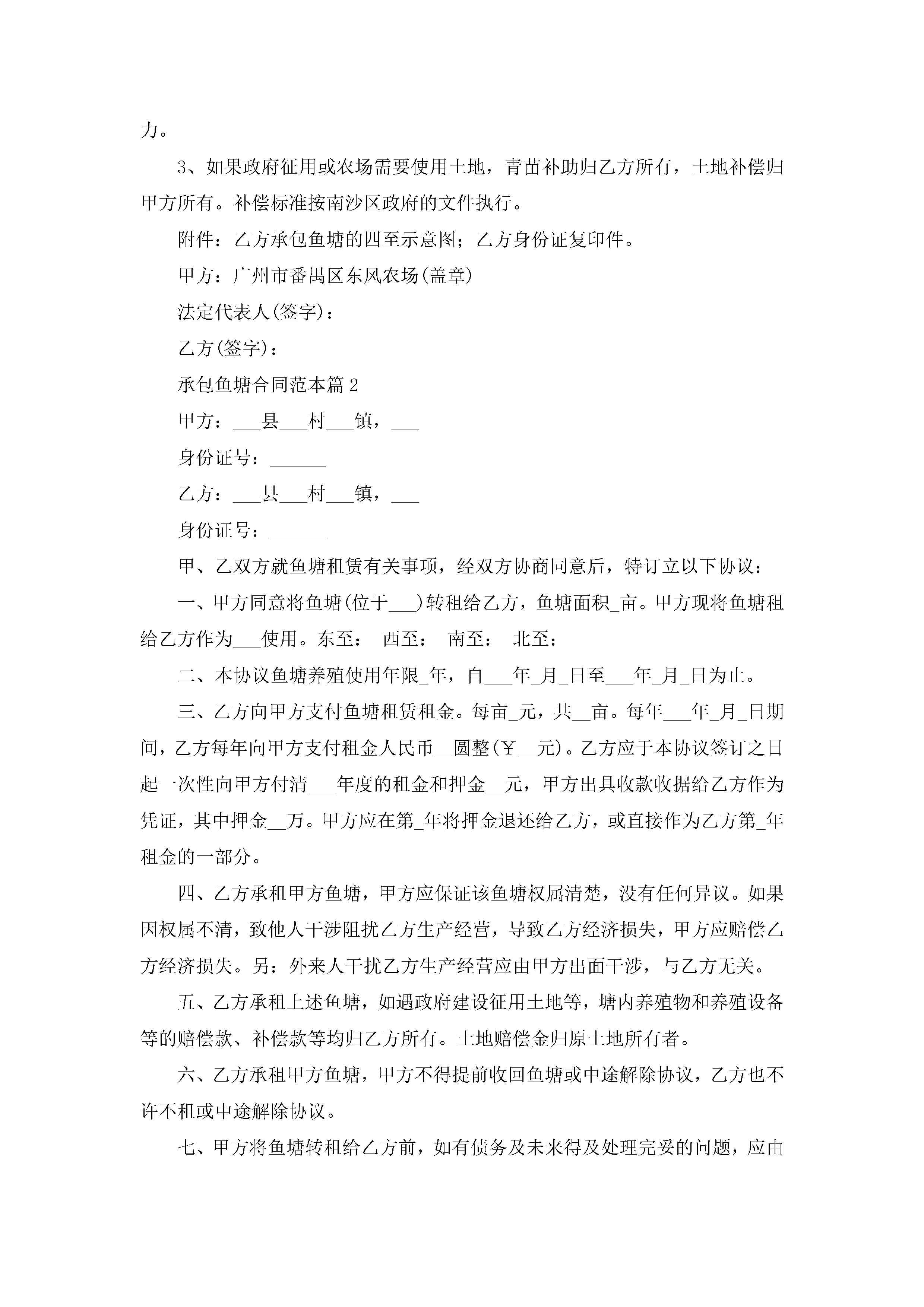 承包鱼塘合同范本【7篇】jugei3月23日 01:36发布关注247 承包鱼塘合同范本【7篇】此内容为付费资源,请付费后查看¥10.9 单篇文档限时特惠¥15个人会员开通企业会员开通立即下载无需登陆!可直接快捷下载单个模板付费资源© 版权声明THE ENDWord模板# 实用文档# 实用模板# 合同模板# 承包合同 如有问题,可点击最底部“联系我们”联系客服 分享QQ空间微博QQ好友海报分享复制链接收藏