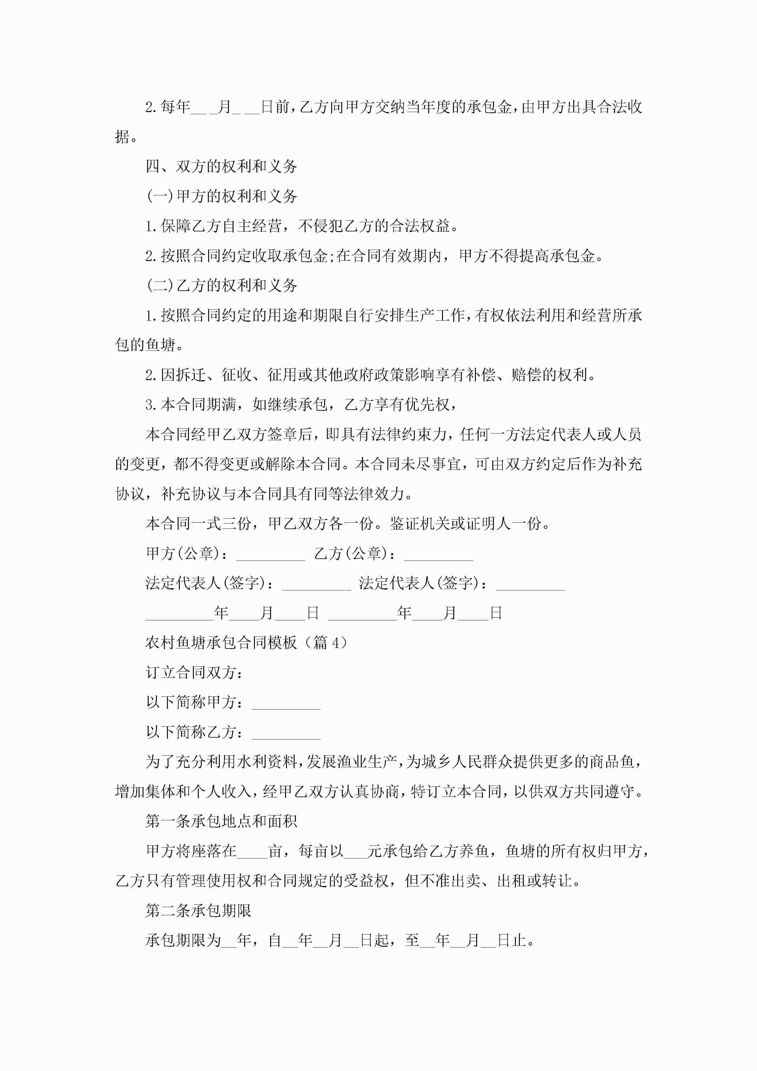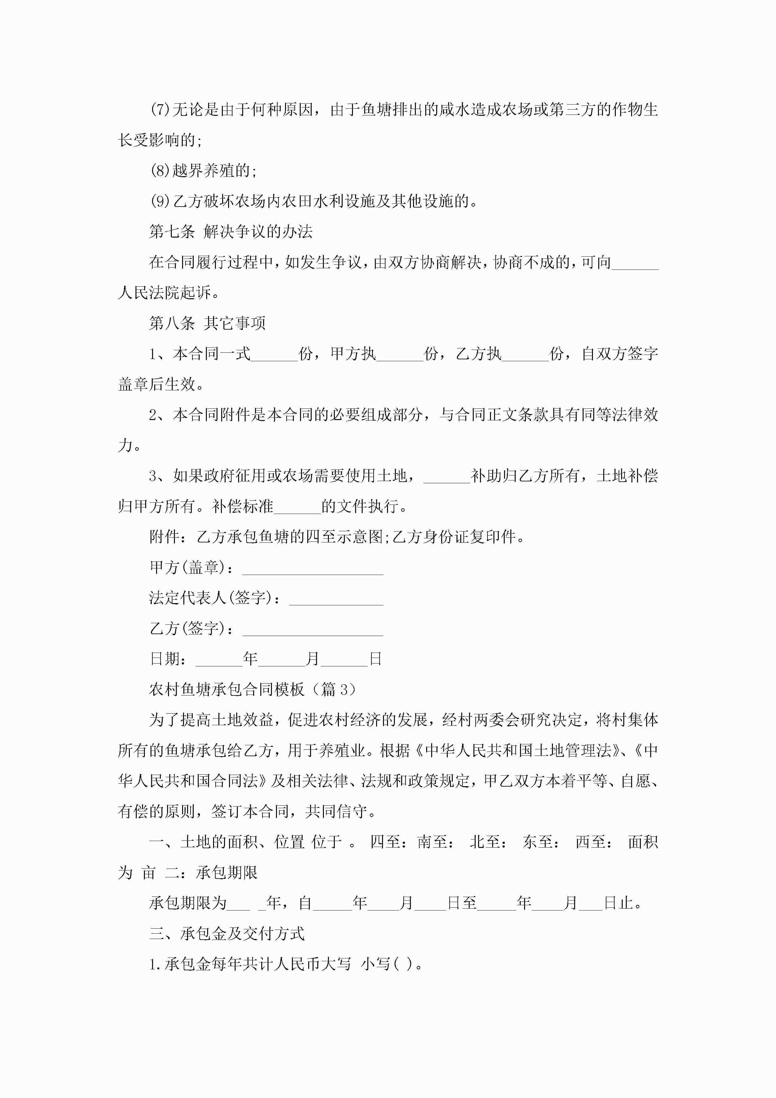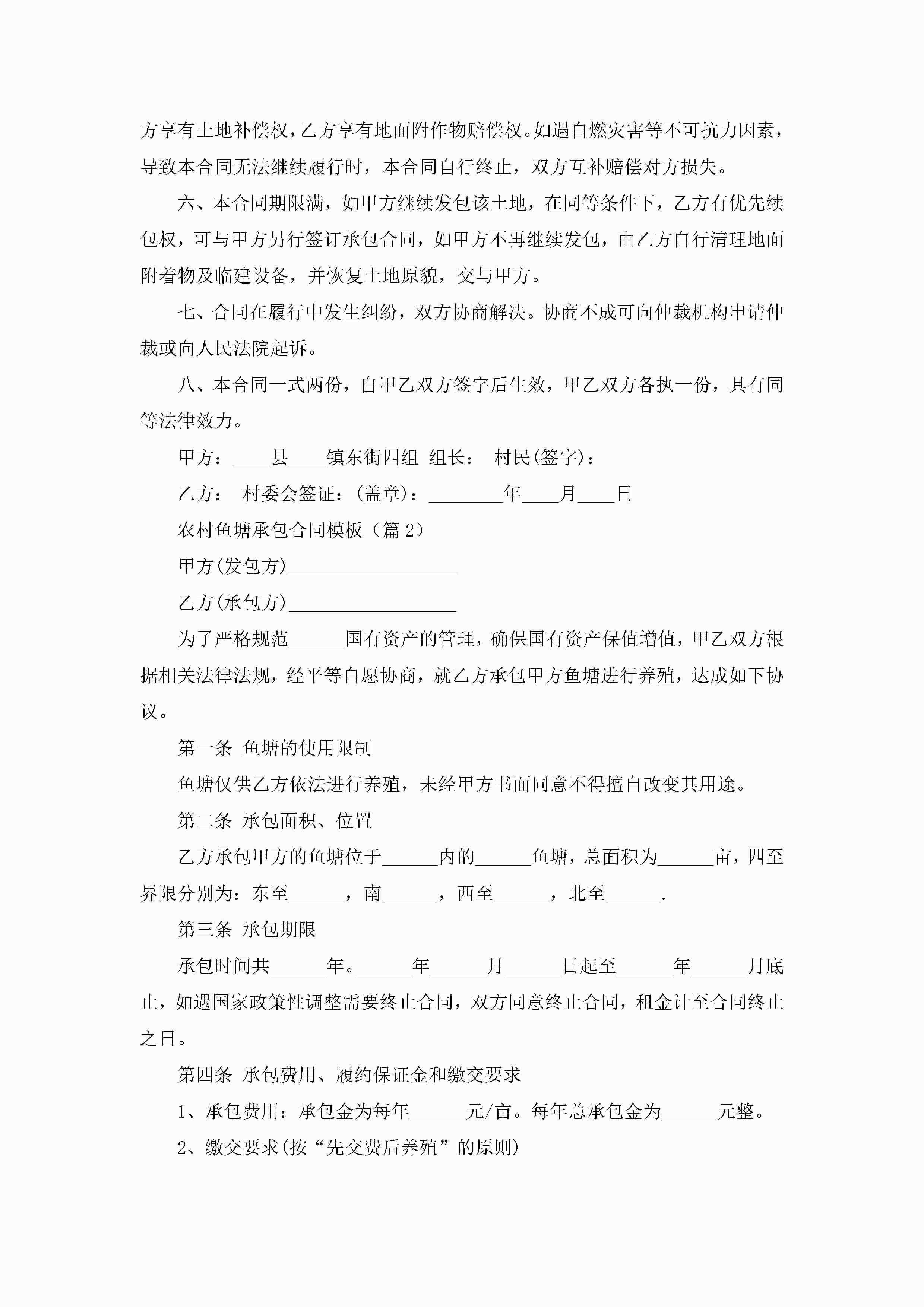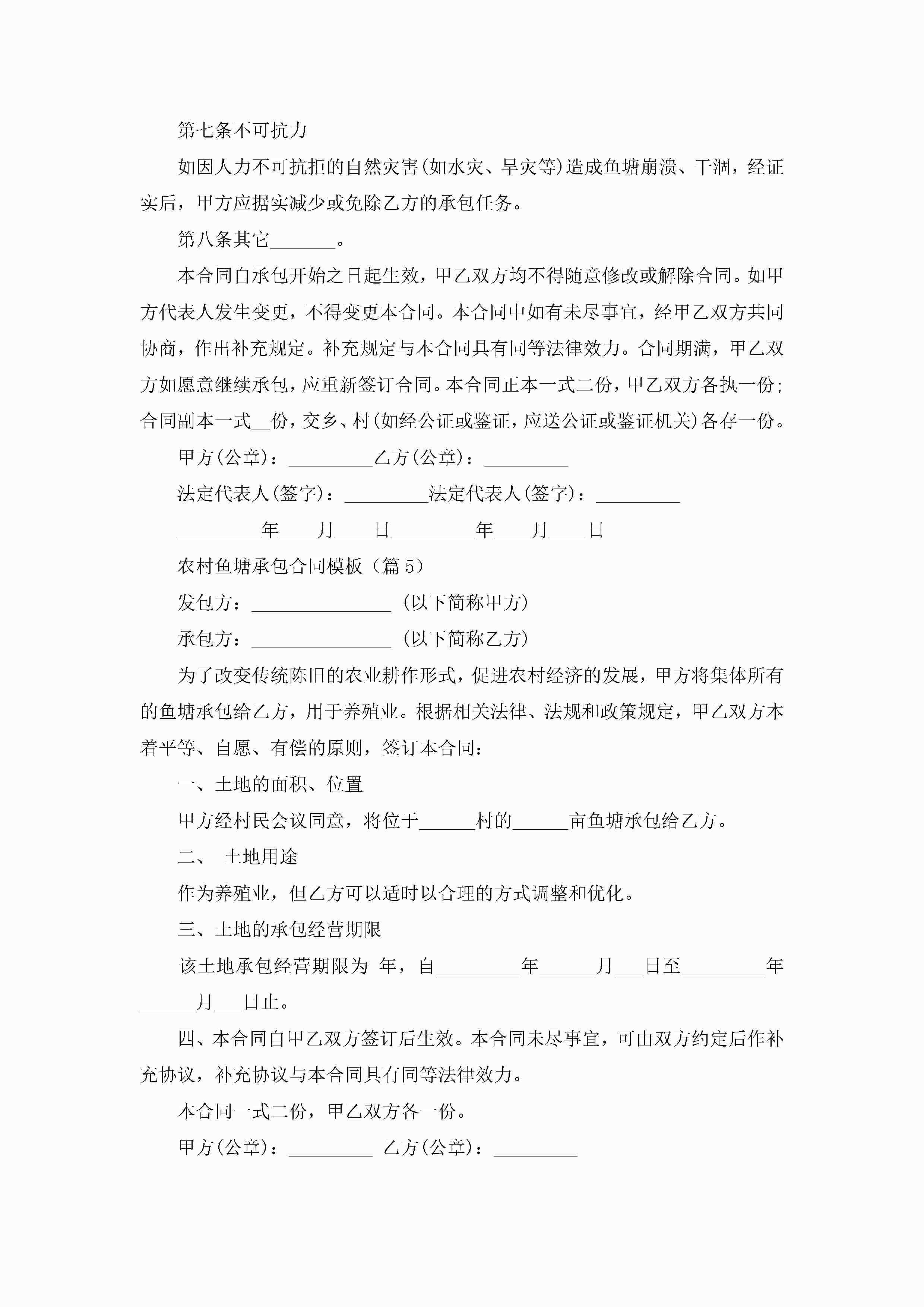农村鱼塘承包合同模板7篇jugei3月23日 01:36发布关注405 农村鱼塘承包合同模板7篇此内容为付费资源,请付费后查看¥10.9 单篇文档限时特惠¥15个人会员开通企业会员开通立即下载无需登陆!可直接快捷下载单个模板付费资源© 版权声明THE ENDWord模板# 实用文档# 实用模板# 合同模板# 承包合同 如有问题,可点击最底部“联系我们”联系客服 分享QQ空间微博QQ好友海报分享复制链接收藏