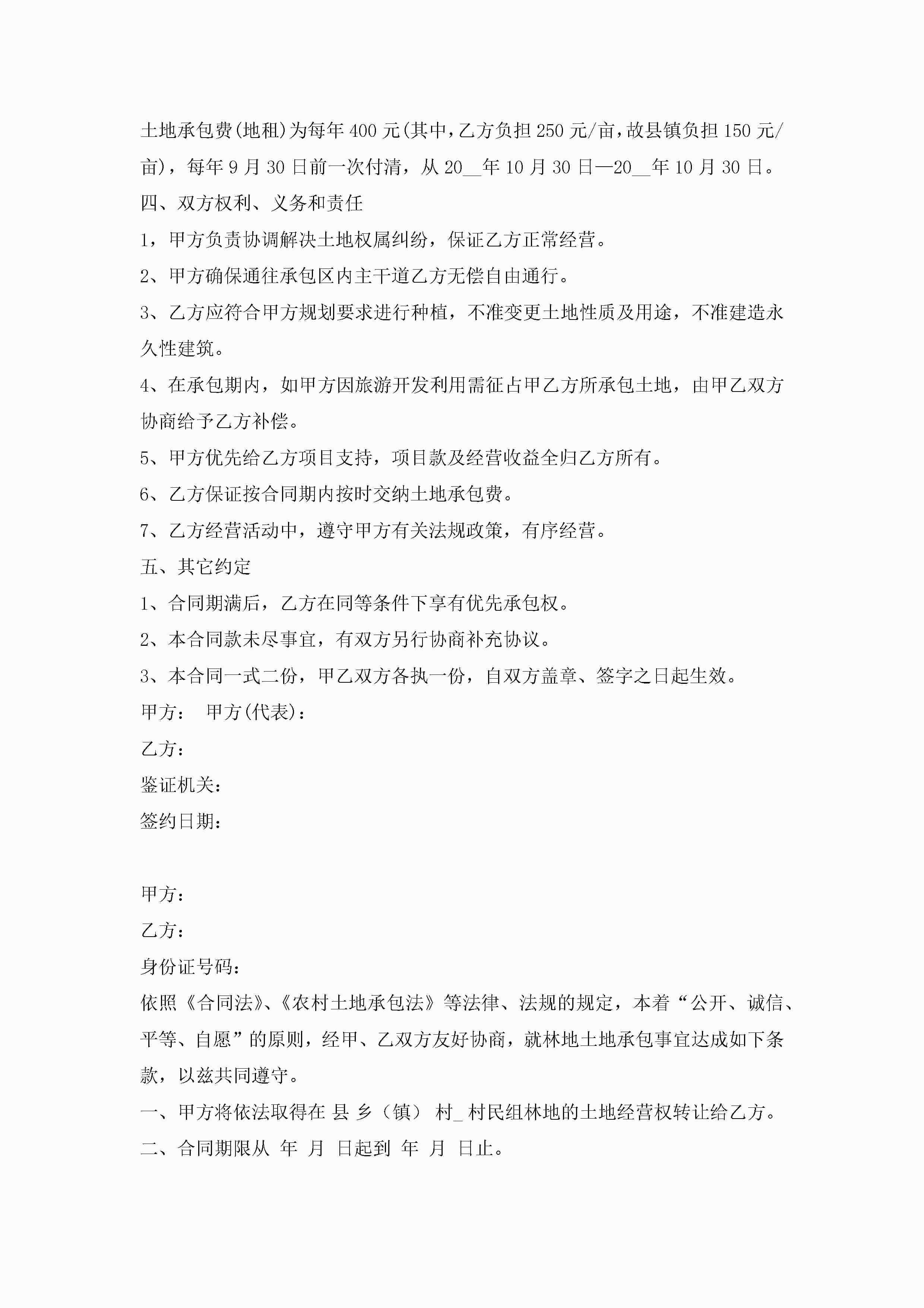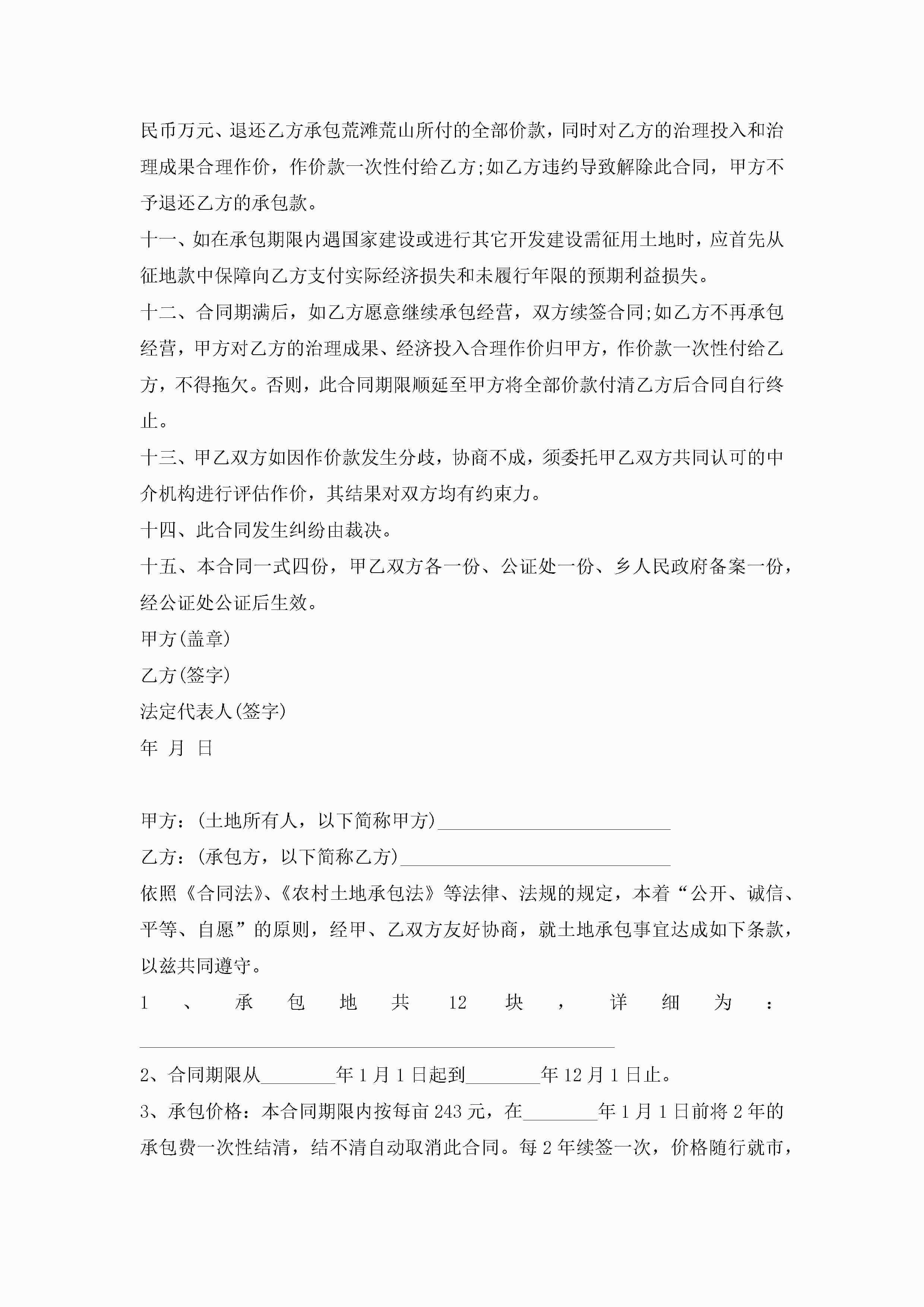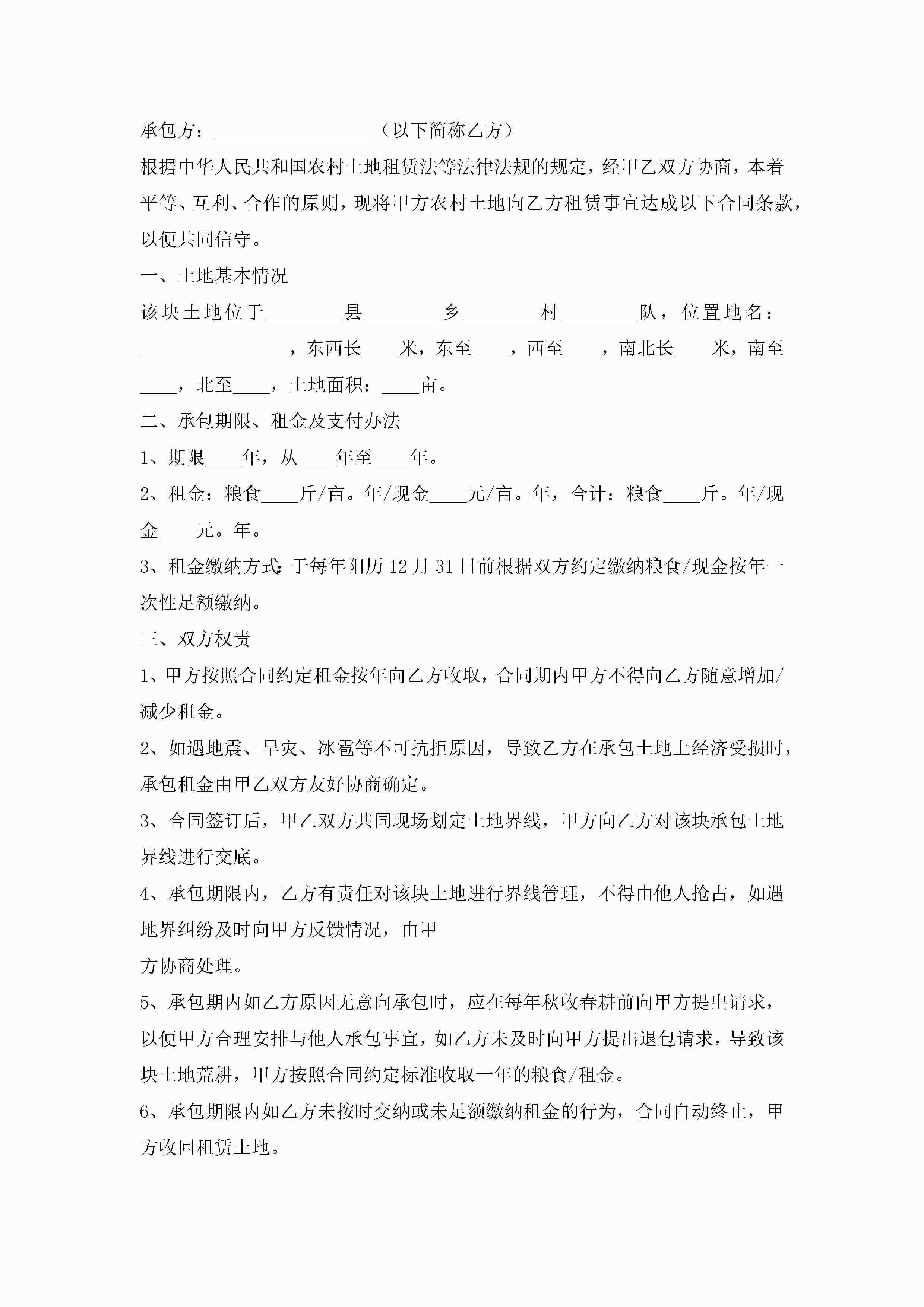 土地承包合同范文(7篇)jugei3月23日 01:36发布关注254 土地承包合同范文(7篇)此内容为付费资源,请付费后查看¥10.9 单篇文档限时特惠¥15个人会员开通企业会员开通立即下载无需登陆!可直接快捷下载单个模板付费资源© 版权声明THE ENDWord模板# 实用文档# 实用模板# 合同模板# 承包合同 如有问题,可点击最底部“联系我们”联系客服 分享QQ空间微博QQ好友海报分享复制链接收藏