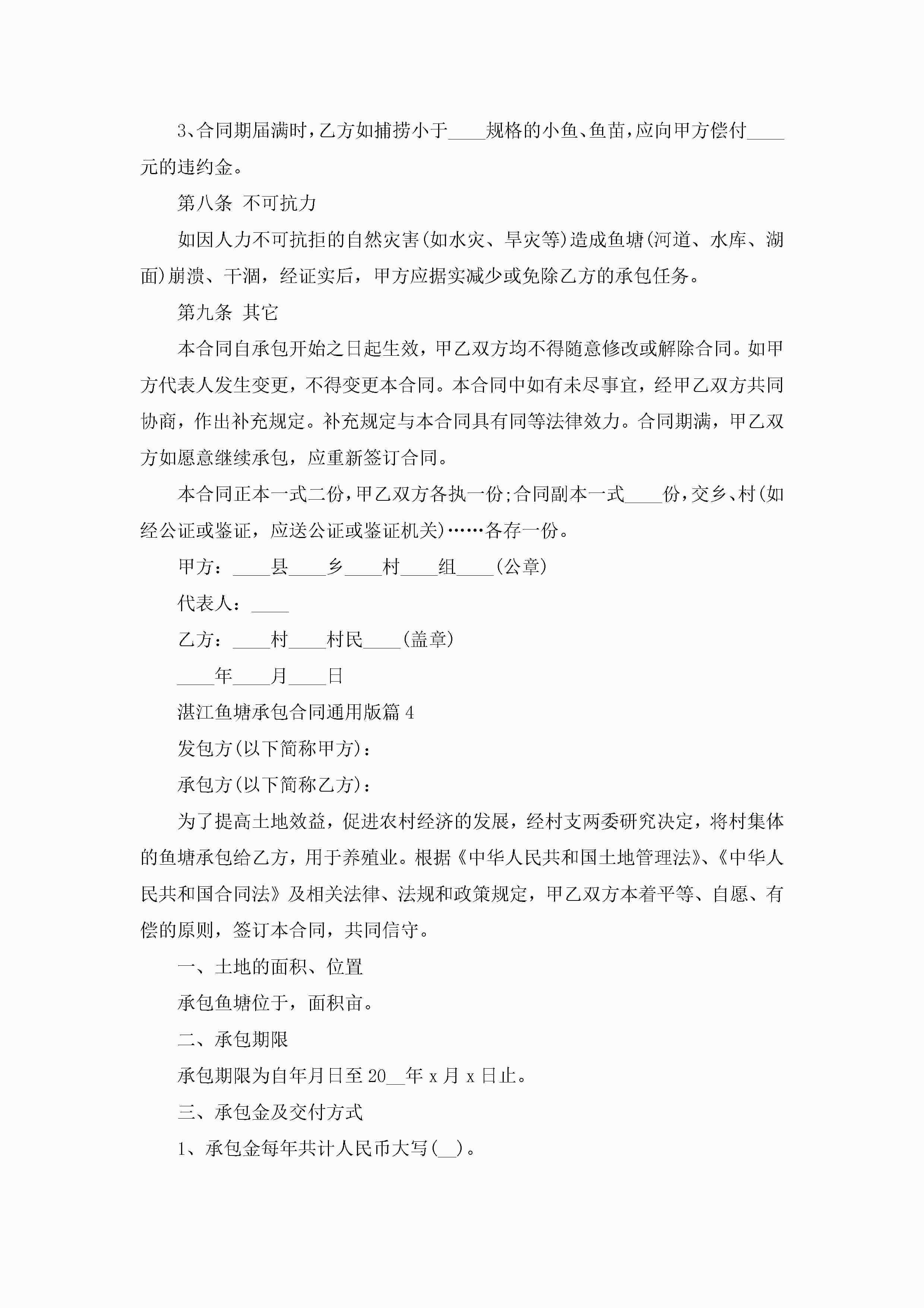湛江鱼塘承包合同通用版7篇jugei3月23日 01:36发布关注234 湛江鱼塘承包合同通用版7篇此内容为付费资源,请付费后查看¥10.9 单篇文档限时特惠¥15个人会员开通企业会员开通立即下载无需登陆!可直接快捷下载单个模板付费资源© 版权声明THE ENDWord模板# 实用文档# 实用模板# 合同模板# 承包合同 如有问题,可点击最底部“联系我们”联系客服 分享QQ空间微博QQ好友海报分享复制链接收藏