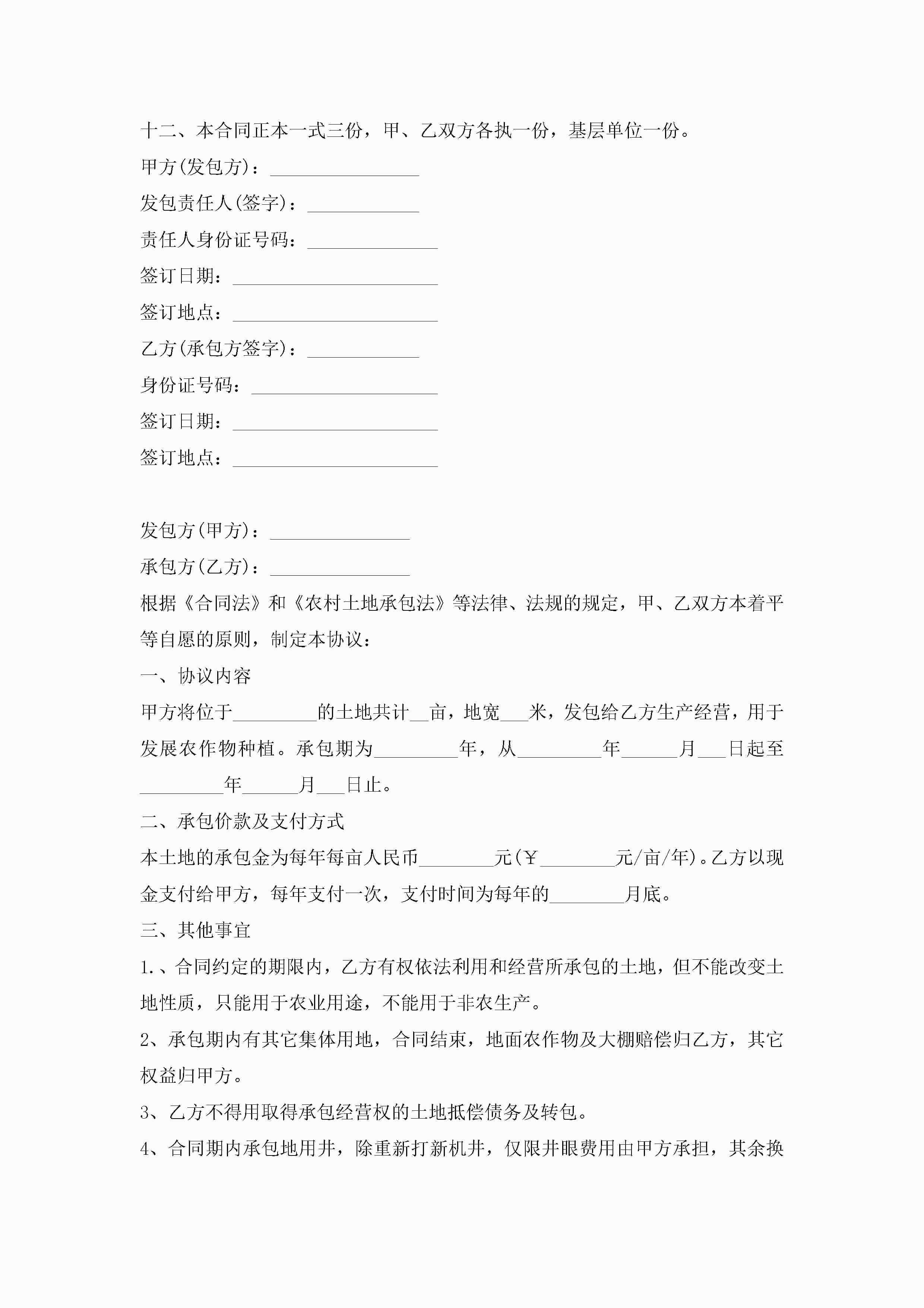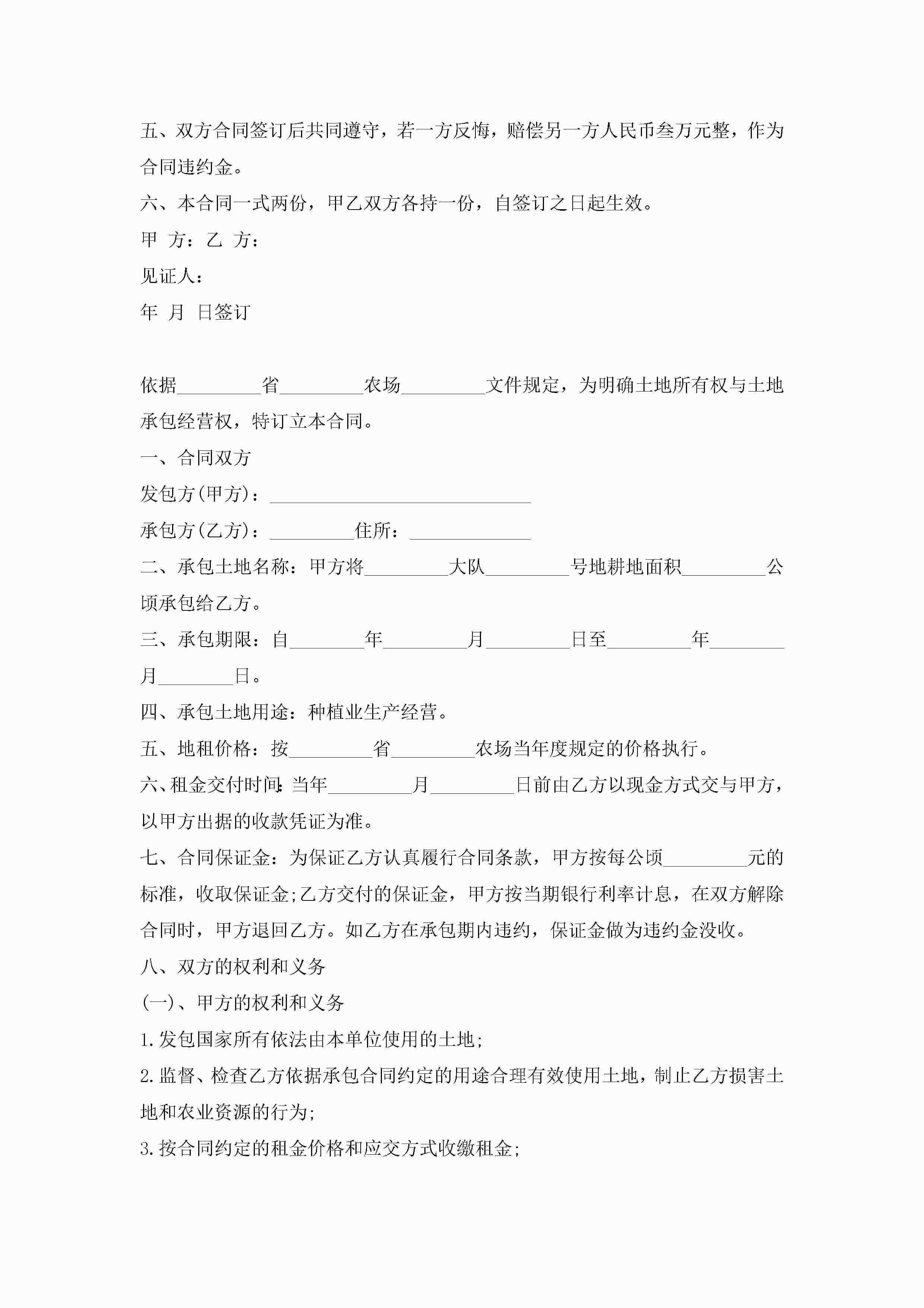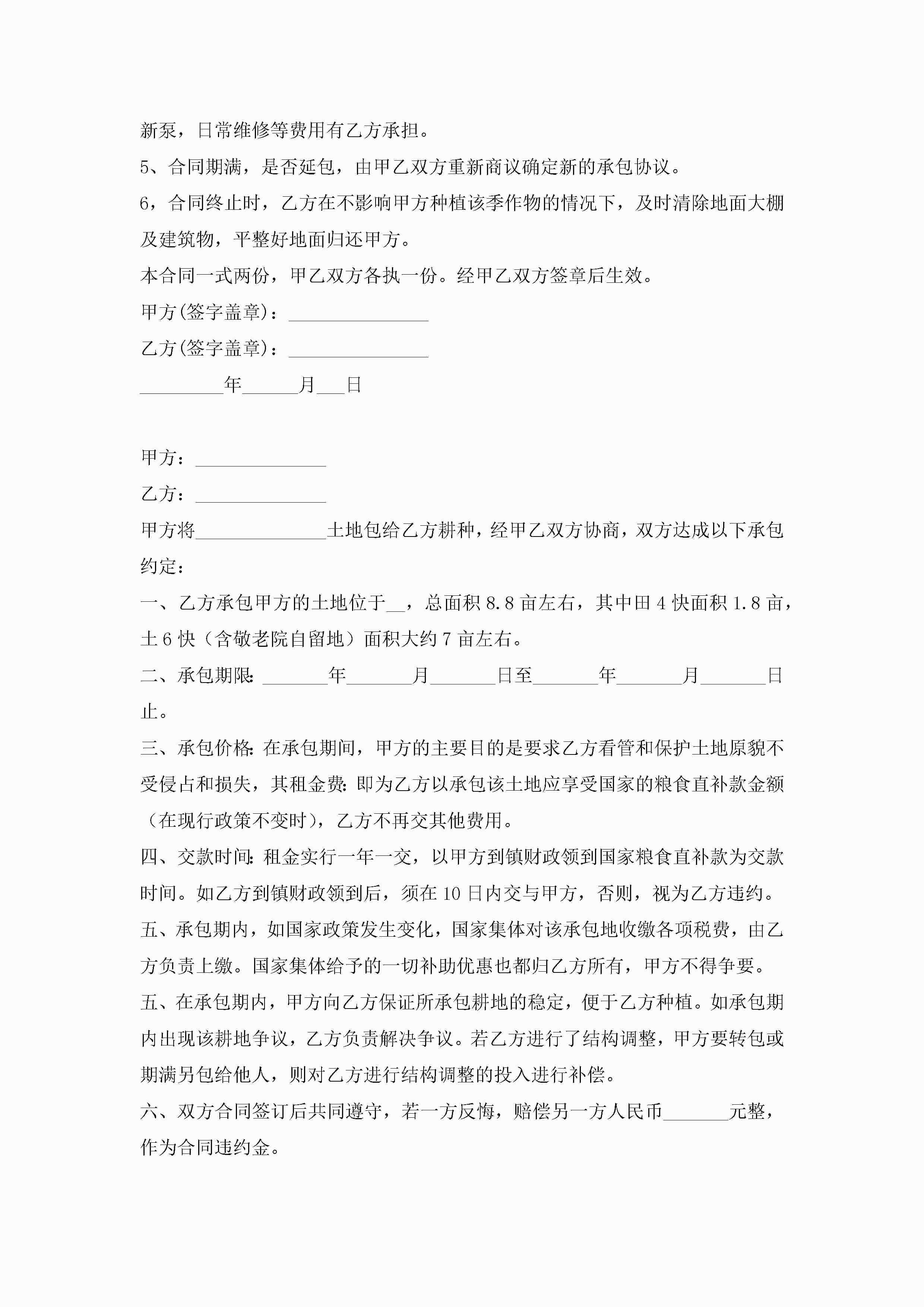 土地耕地承包合同(7篇)jugei3月23日 01:36发布关注320 土地耕地承包合同(7篇)此内容为付费资源,请付费后查看¥10.9 单篇文档限时特惠¥15个人会员开通企业会员开通立即下载无需登陆!可直接快捷下载单个模板付费资源© 版权声明THE ENDWord模板# 实用文档# 实用模板# 合同模板# 承包合同 如有问题,可点击最底部“联系我们”联系客服 分享QQ空间微博QQ好友海报分享复制链接收藏