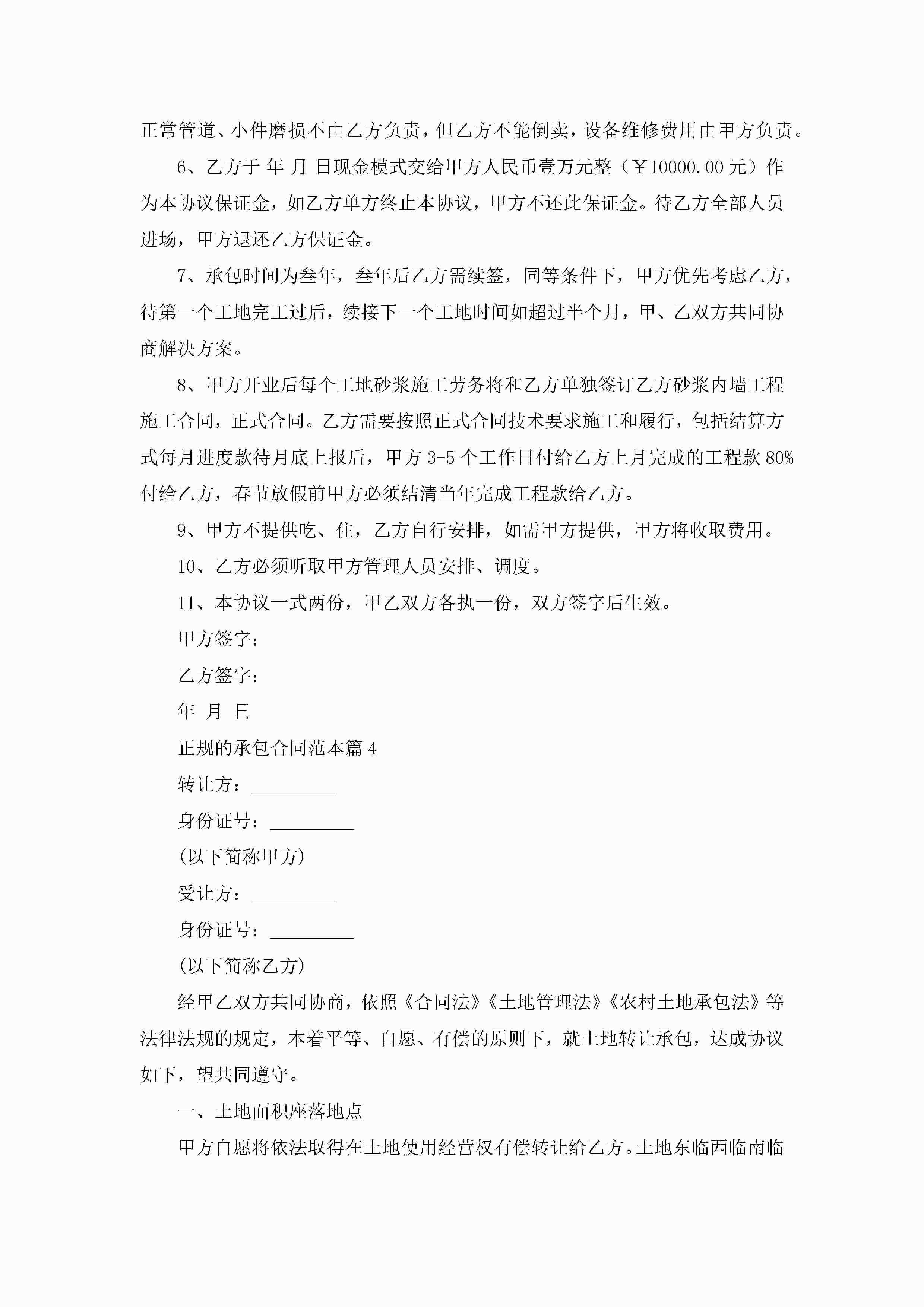 正规的承包合同范本5篇jugei3月23日 01:36发布关注228 正规的承包合同范本5篇此内容为付费资源,请付费后查看¥10.9 单篇文档限时特惠¥15个人会员开通企业会员开通立即下载无需登陆!可直接快捷下载单个模板付费资源© 版权声明THE ENDWord模板# 实用文档# 合同模板# 承包合同# 正规的承包合同范本 如有问题,可点击最底部“联系我们”联系客服 分享QQ空间微博QQ好友海报分享复制链接收藏