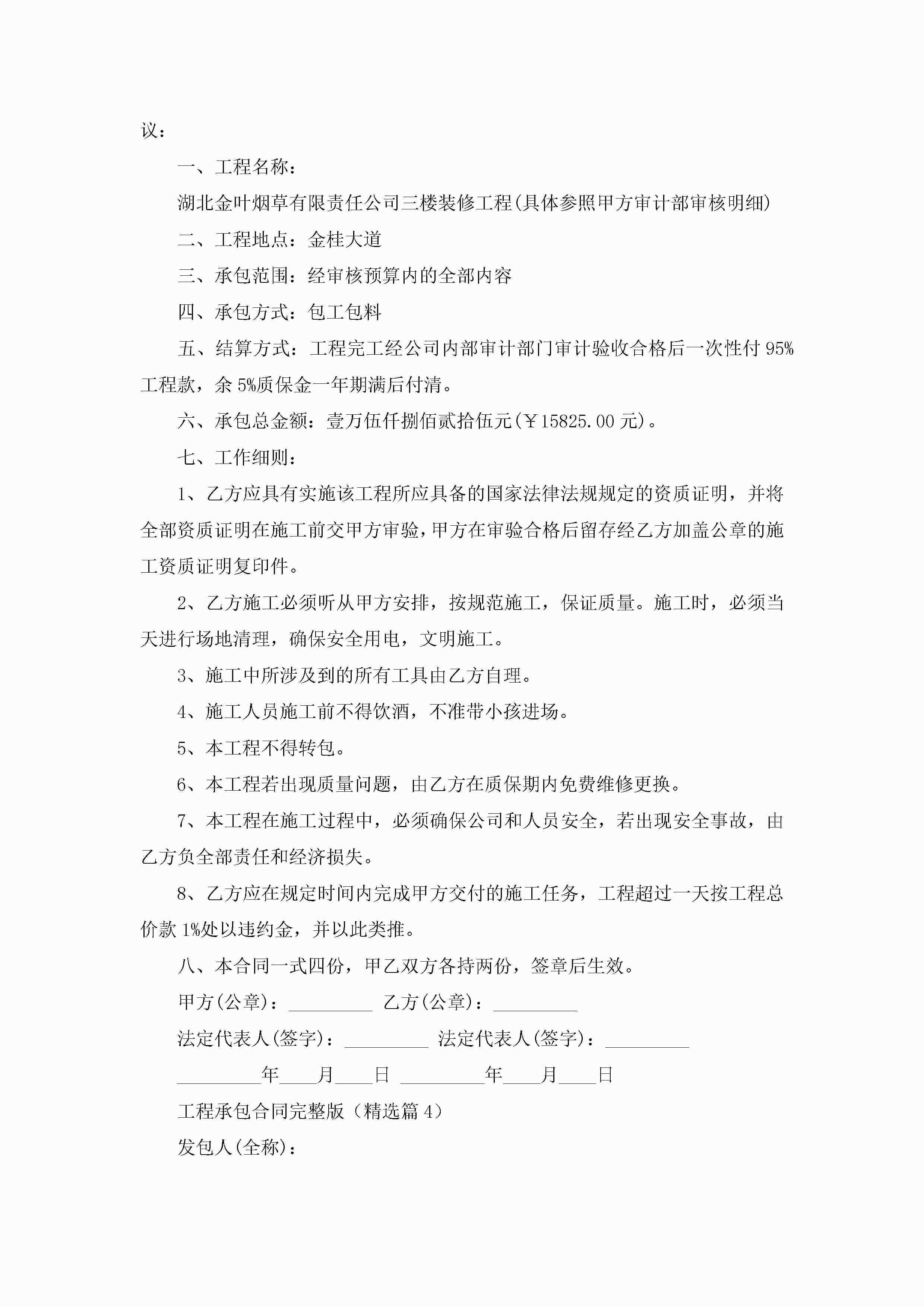 工程承包合同完整版5篇jugei3月23日 01:36发布关注218 工程承包合同完整版5篇此内容为付费资源,请付费后查看¥10.9 单篇文档限时特惠¥15个人会员开通企业会员开通立即下载无需登陆!可直接快捷下载单个模板付费资源© 版权声明THE ENDWord模板# 实用文档# 合同模板# 承包合同# 工程承包合同完整版 如有问题,可点击最底部“联系我们”联系客服 分享QQ空间微博QQ好友海报分享复制链接收藏