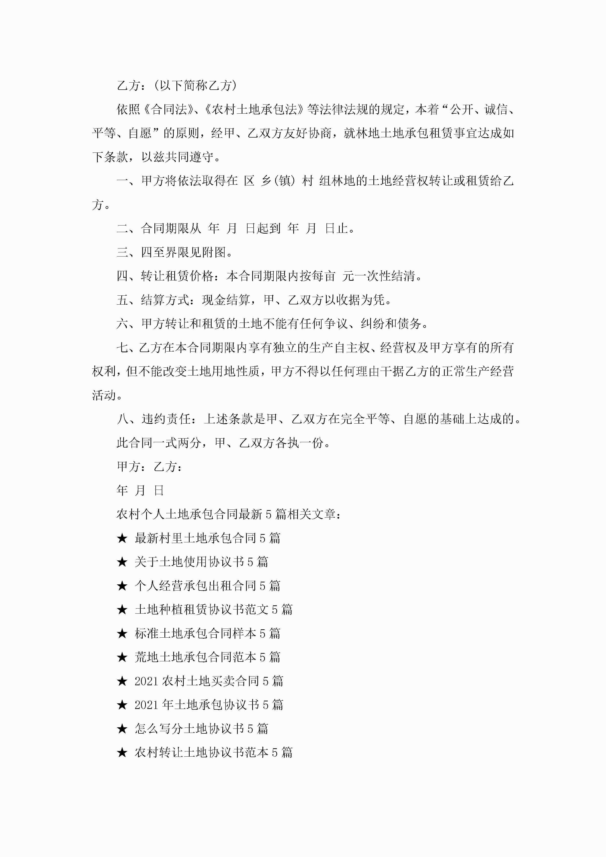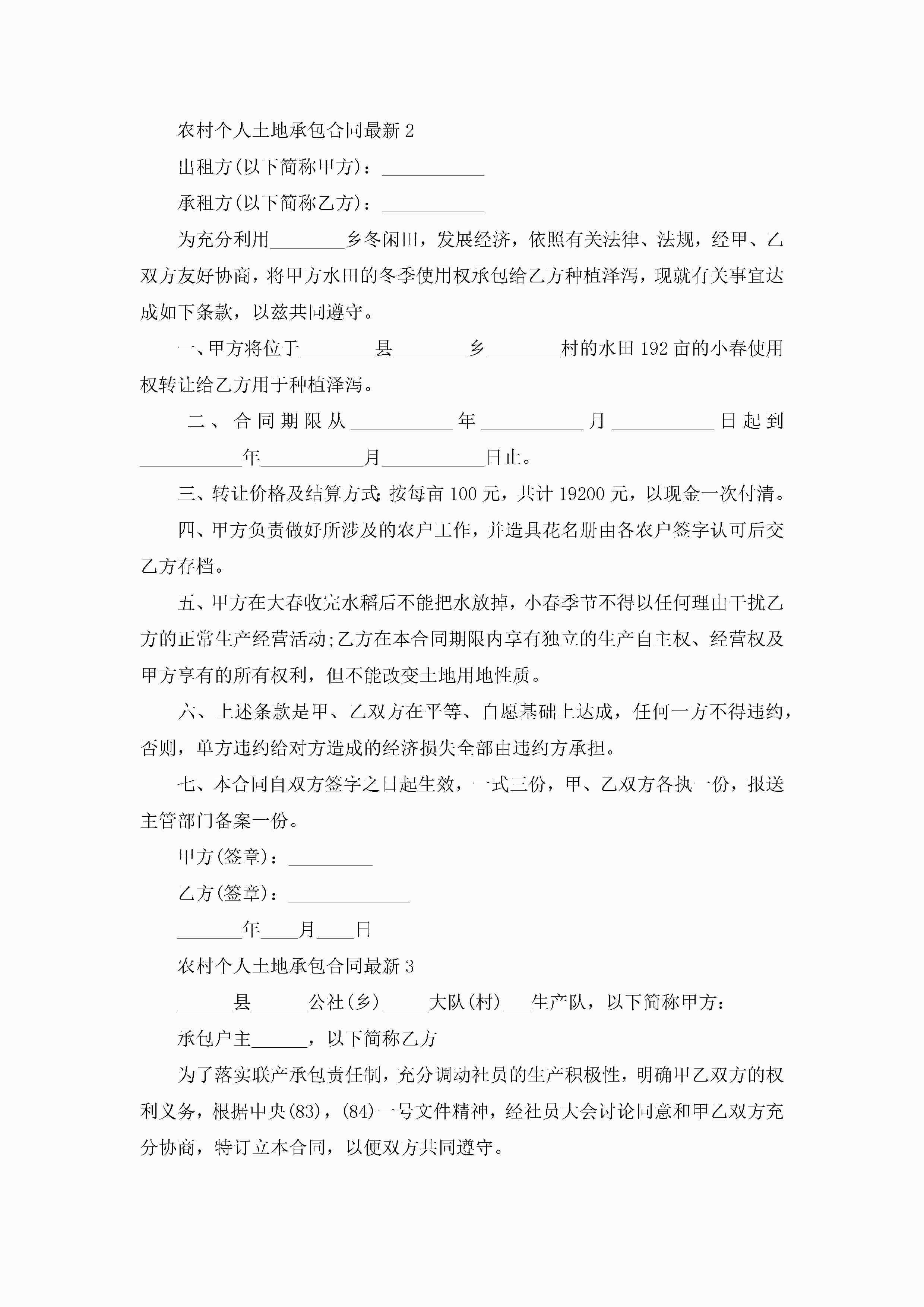 关于农村个人土地承包合同最新5篇jugei3月23日 01:36发布关注204 关于农村个人土地承包合同最新5篇此内容为付费资源,请付费后查看¥10.9 单篇文档限时特惠¥15个人会员开通企业会员开通立即下载无需登陆!可直接快捷下载单个模板付费资源© 版权声明THE ENDWord模板# 实用文档# 实用模板# 合同模板# 承包合同 如有问题,可点击最底部“联系我们”联系客服 分享QQ空间微博QQ好友海报分享复制链接收藏