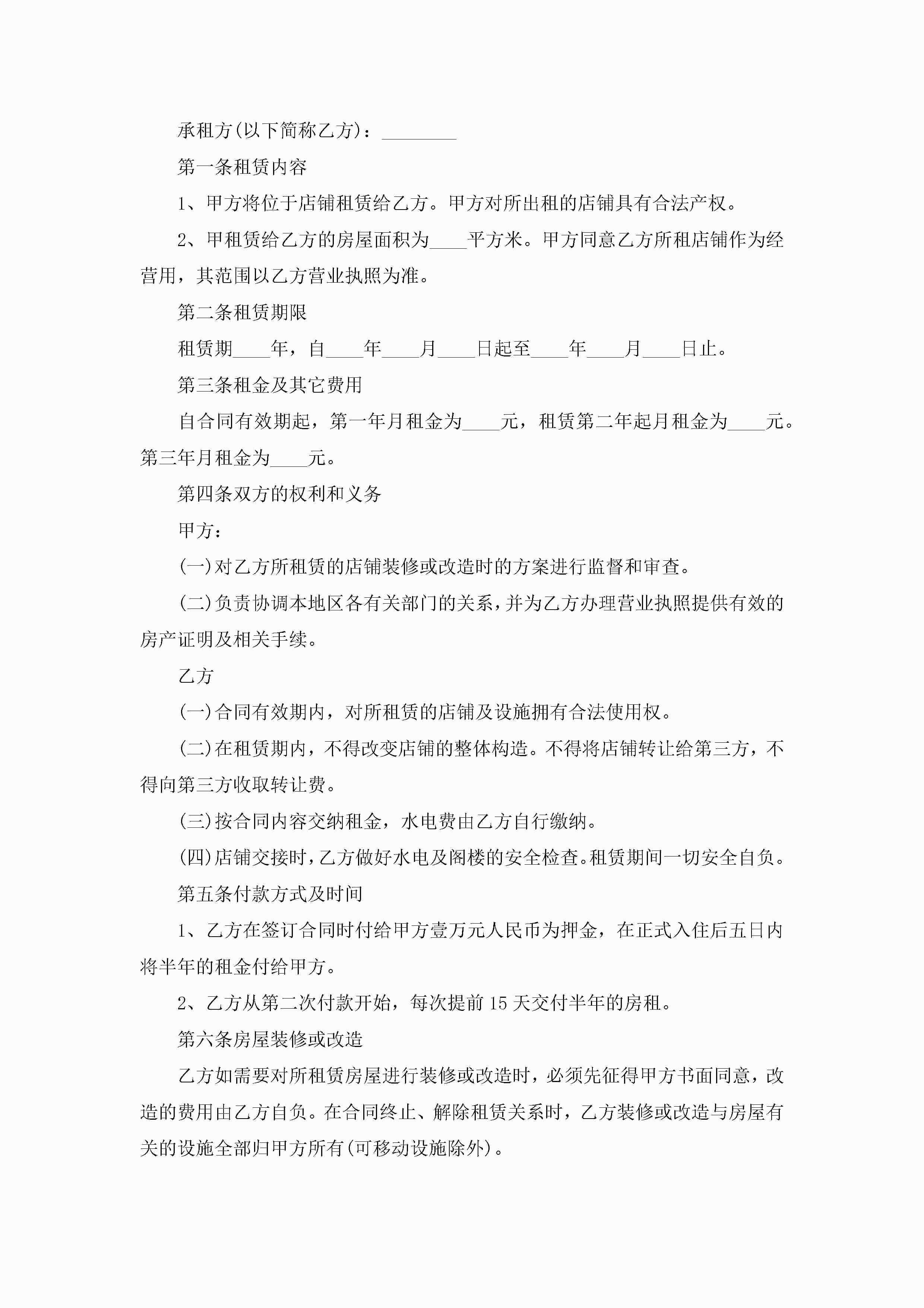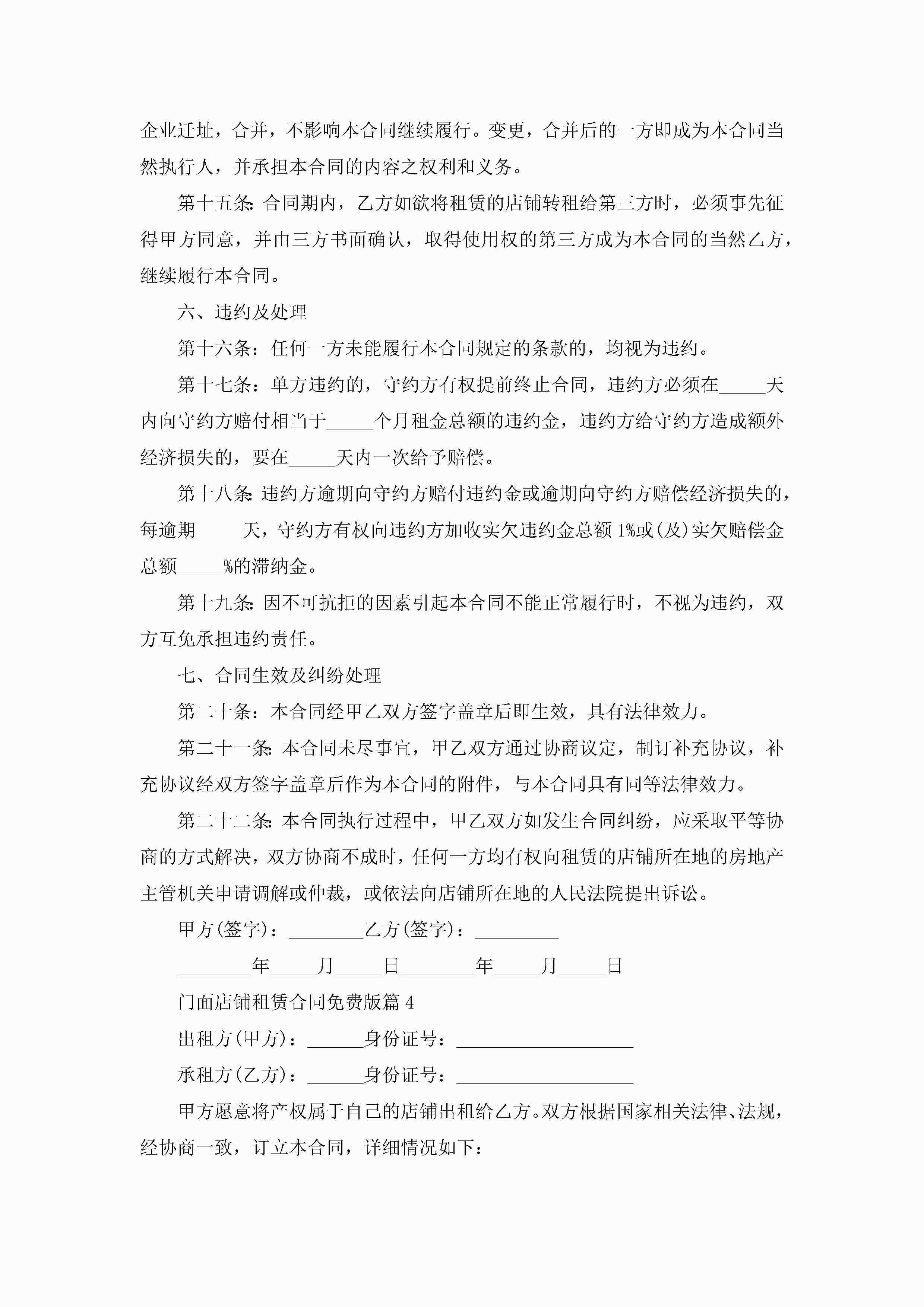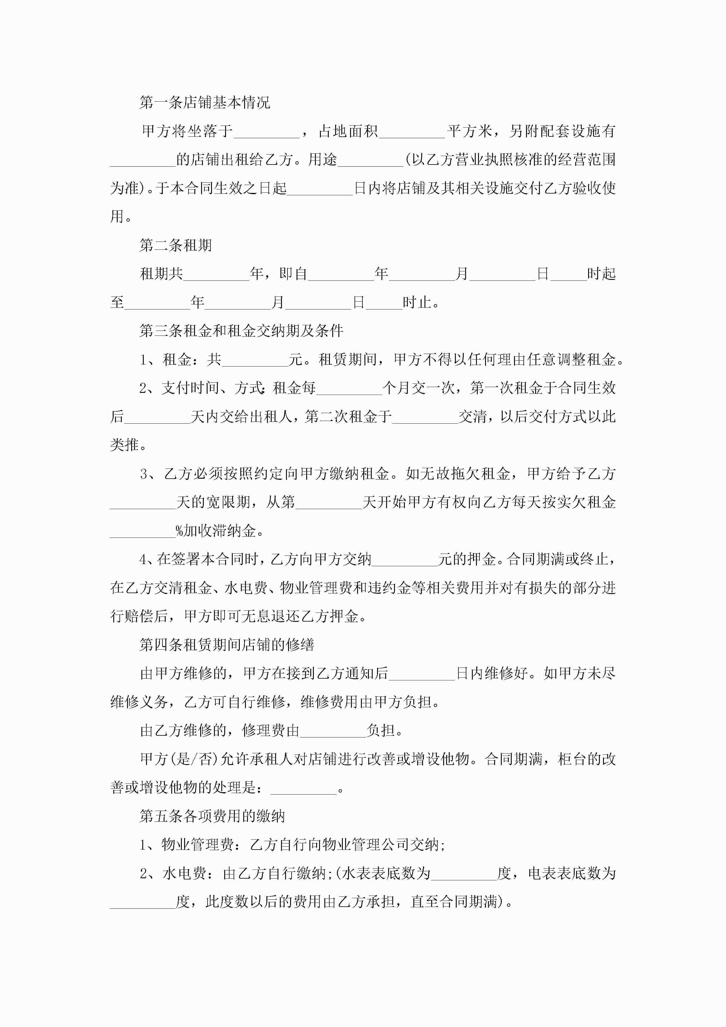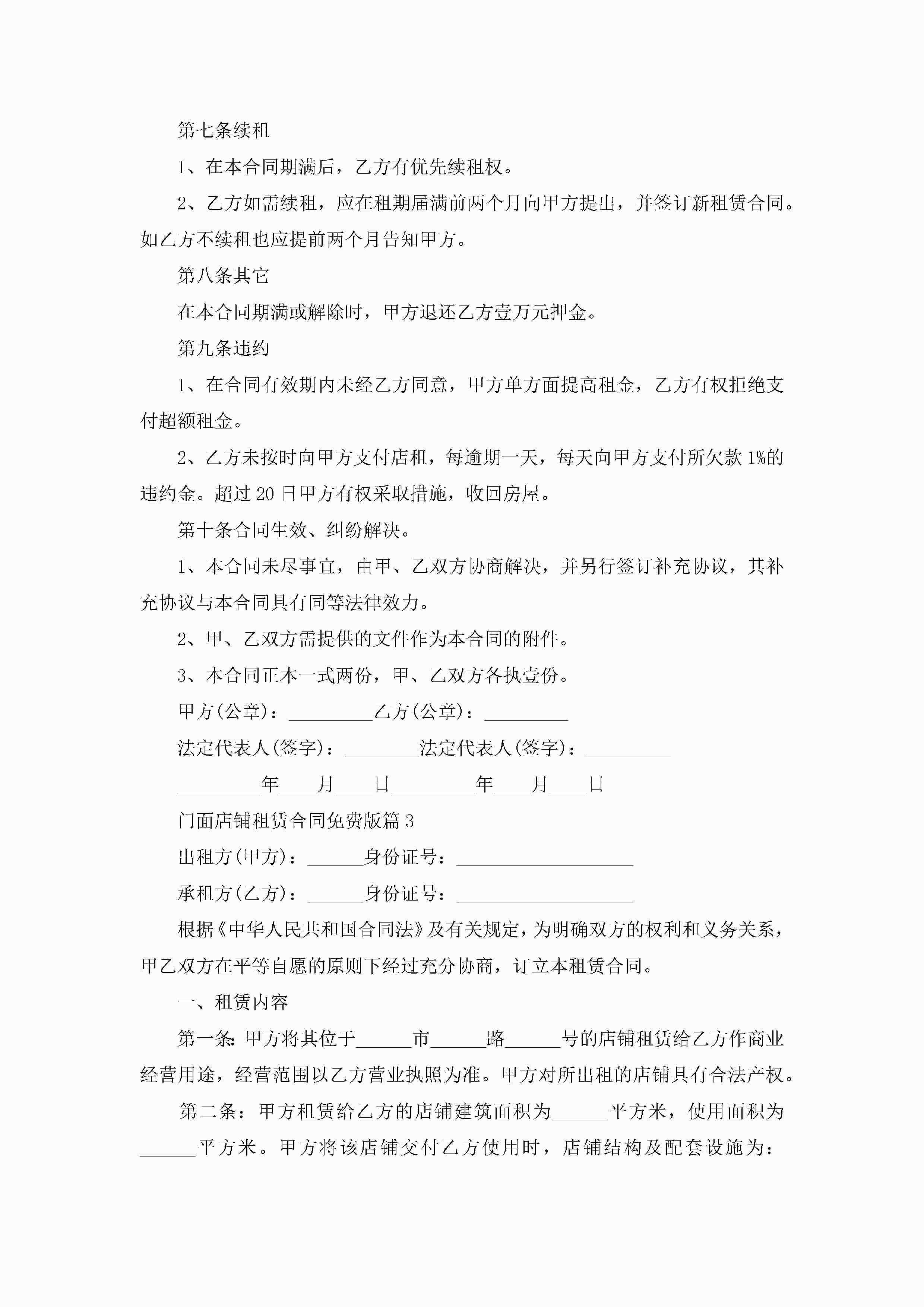 门面店铺租赁合同范文免费版jugei3月23日 01:36发布关注197 门面店铺租赁合同范文免费版此内容为付费资源,请付费后查看¥10.9 单篇文档限时特惠¥15个人会员开通企业会员开通立即下载无需登陆!可直接快捷下载单个模板付费资源© 版权声明THE ENDWord模板# 实用文档# 实用模板# 合同模板# 合同范本 如有问题,可点击最底部“联系我们”联系客服 分享QQ空间微博QQ好友海报分享复制链接收藏