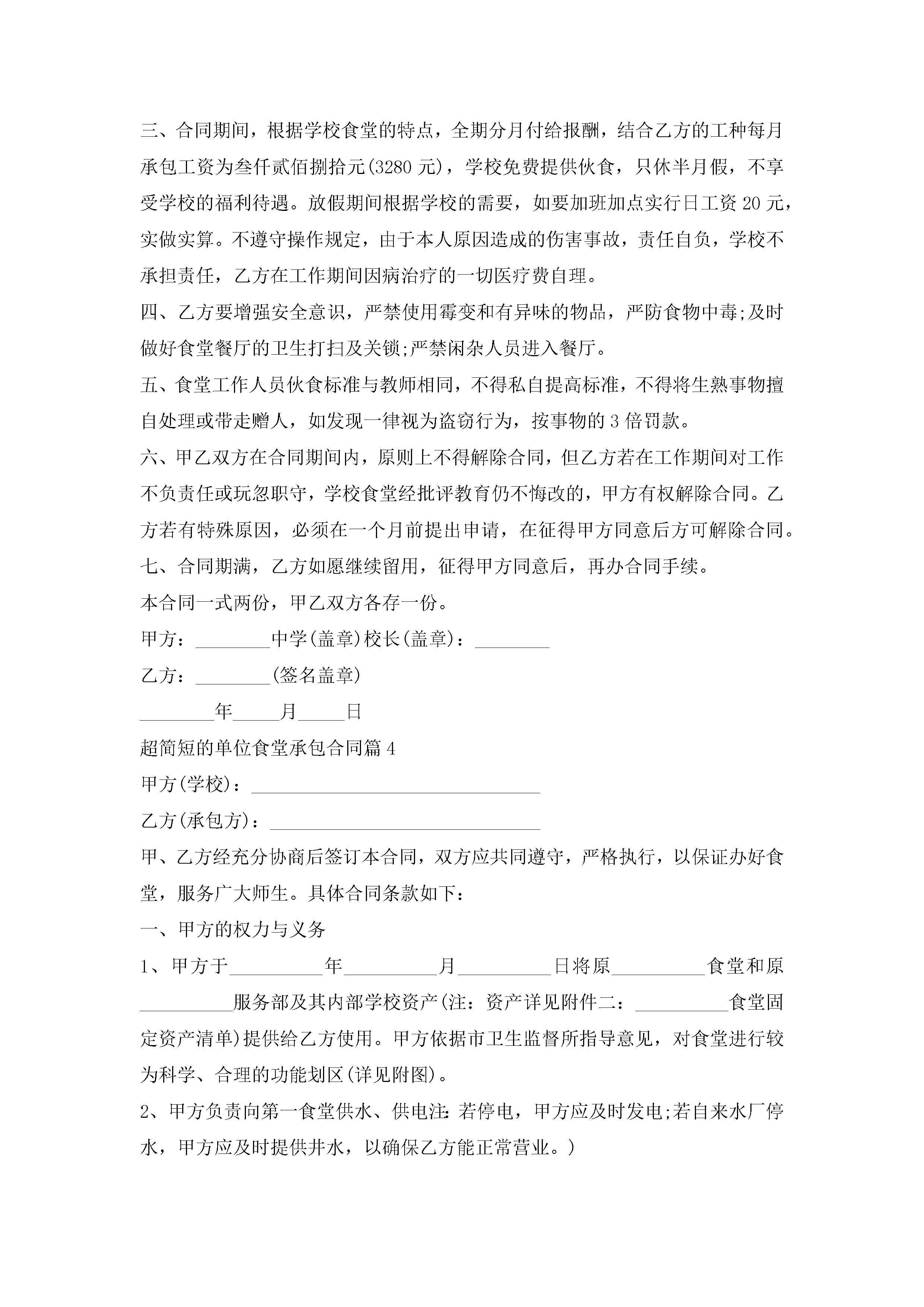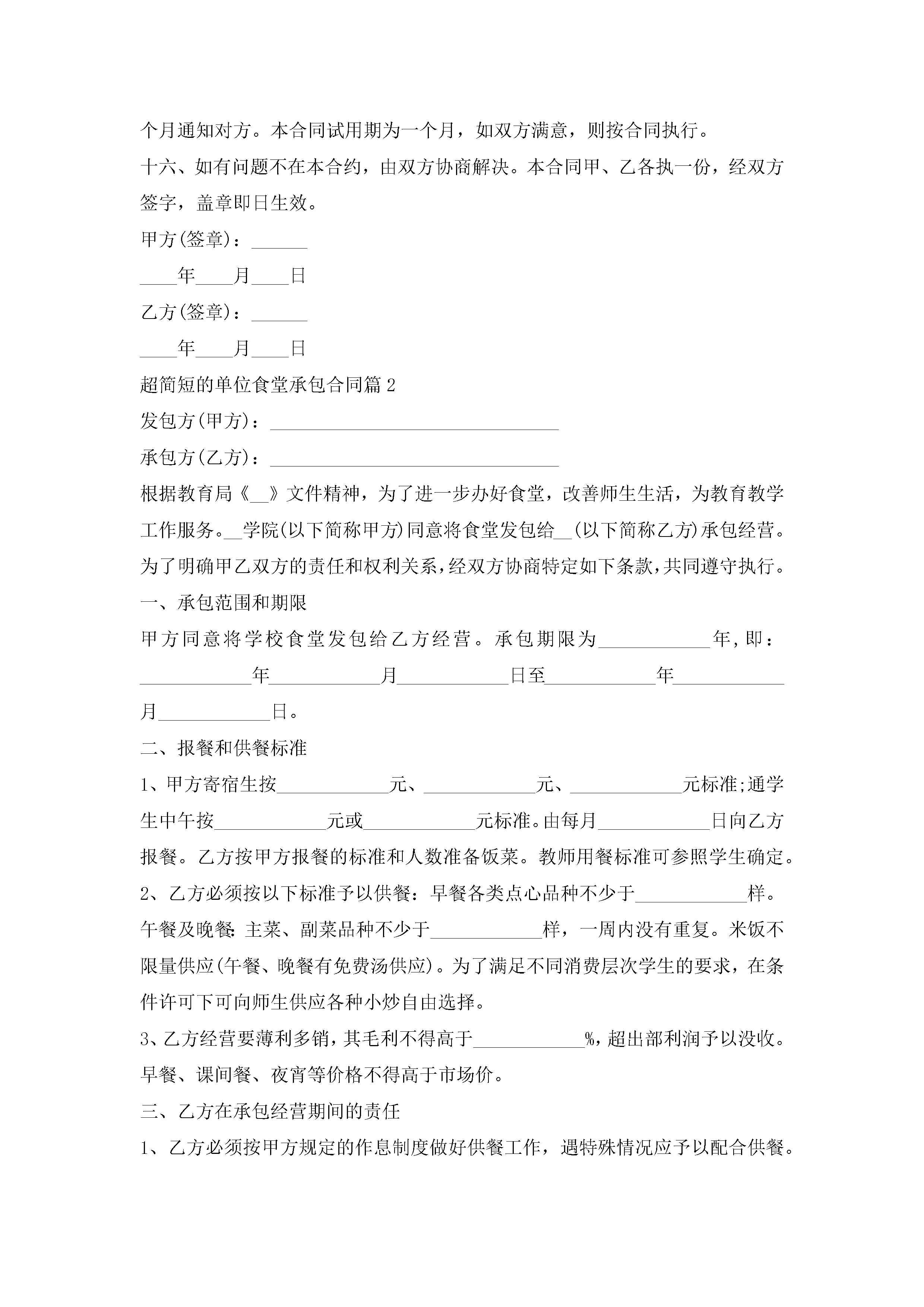超简短的单位食堂承包合同范文jugei3月23日 01:36发布关注186 超简短的单位食堂承包合同范文此内容为付费资源,请付费后查看¥10.9 单篇文档限时特惠¥15个人会员开通企业会员开通立即下载无需登陆!可直接快捷下载单个模板付费资源© 版权声明THE ENDWord模板# 实用文档# 实用模板# 合同模板# 合同范本 如有问题,可点击最底部“联系我们”联系客服 分享QQ空间微博QQ好友海报分享复制链接收藏