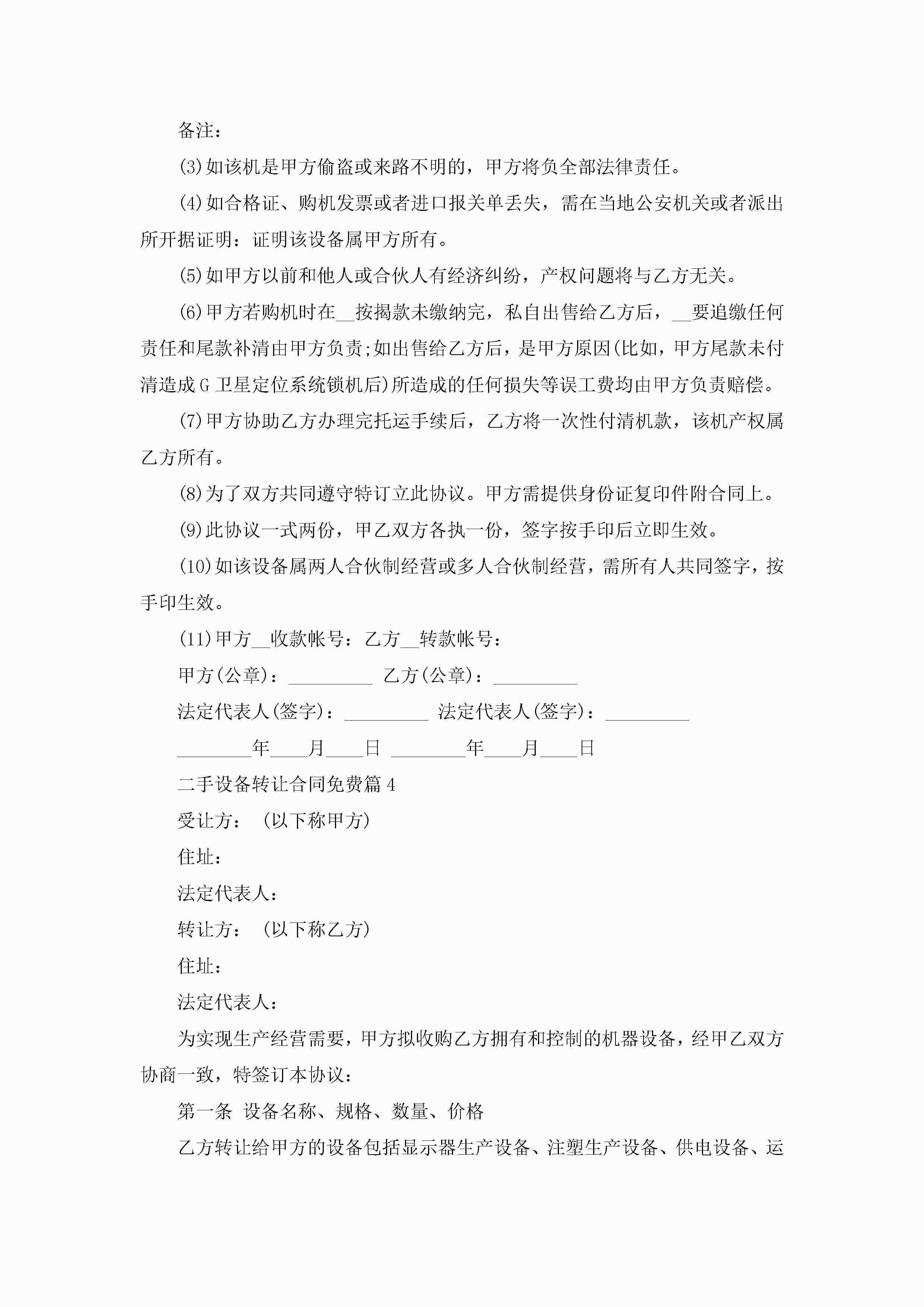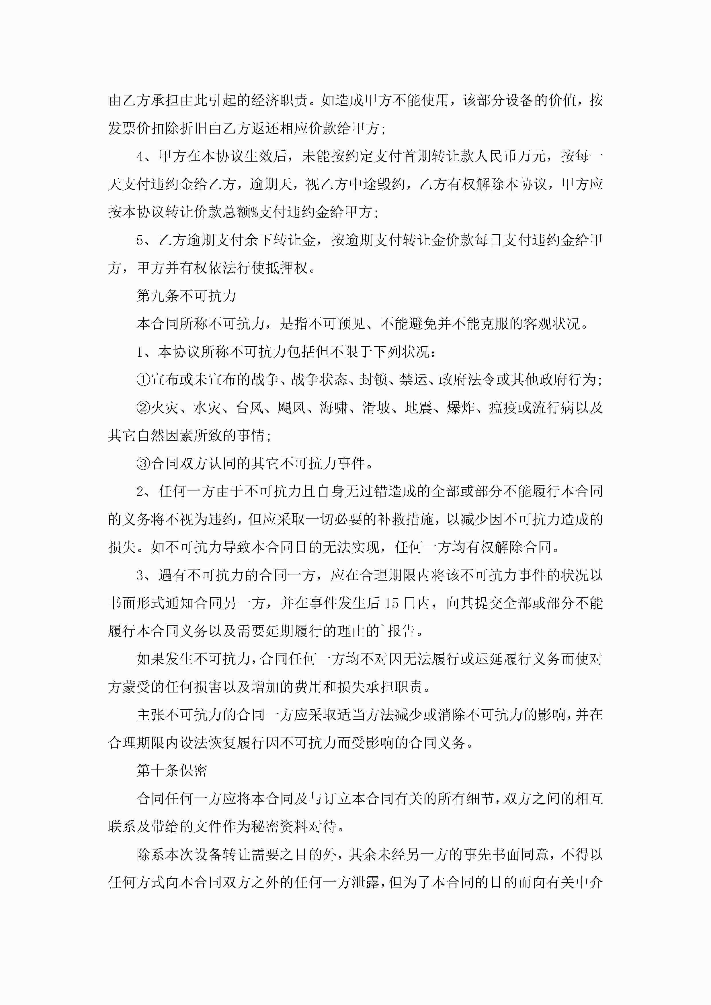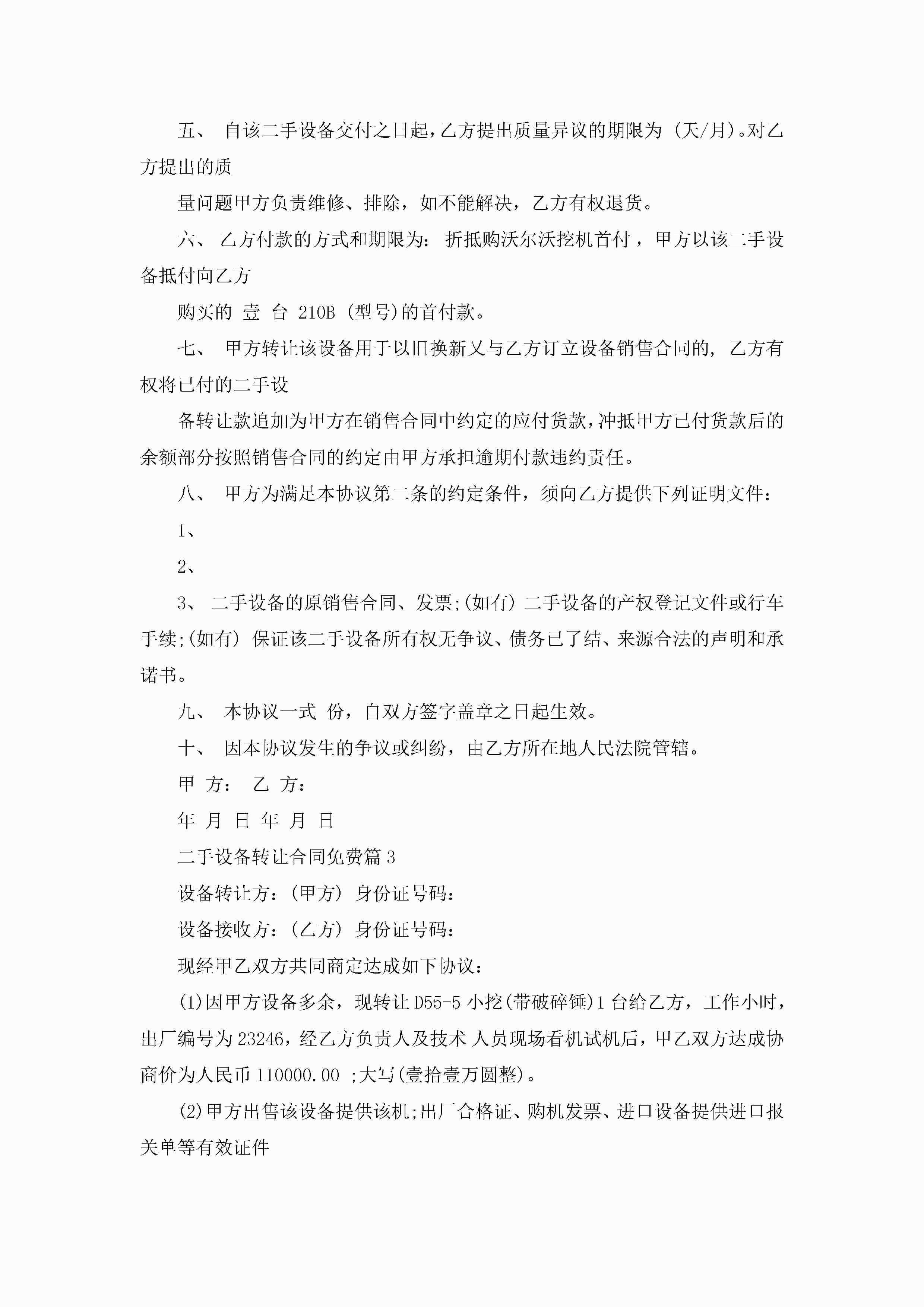 二手设备转让合同免费范文jugei3月23日 01:36发布关注187 二手设备转让合同免费范文此内容为付费资源,请付费后查看¥10.9 单篇文档限时特惠¥15个人会员开通企业会员开通立即下载无需登陆!可直接快捷下载单个模板付费资源© 版权声明THE ENDWord模板# 实用文档# 实用模板# 合同模板# 合同范本 如有问题,可点击最底部“联系我们”联系客服 分享QQ空间微博QQ好友海报分享复制链接收藏