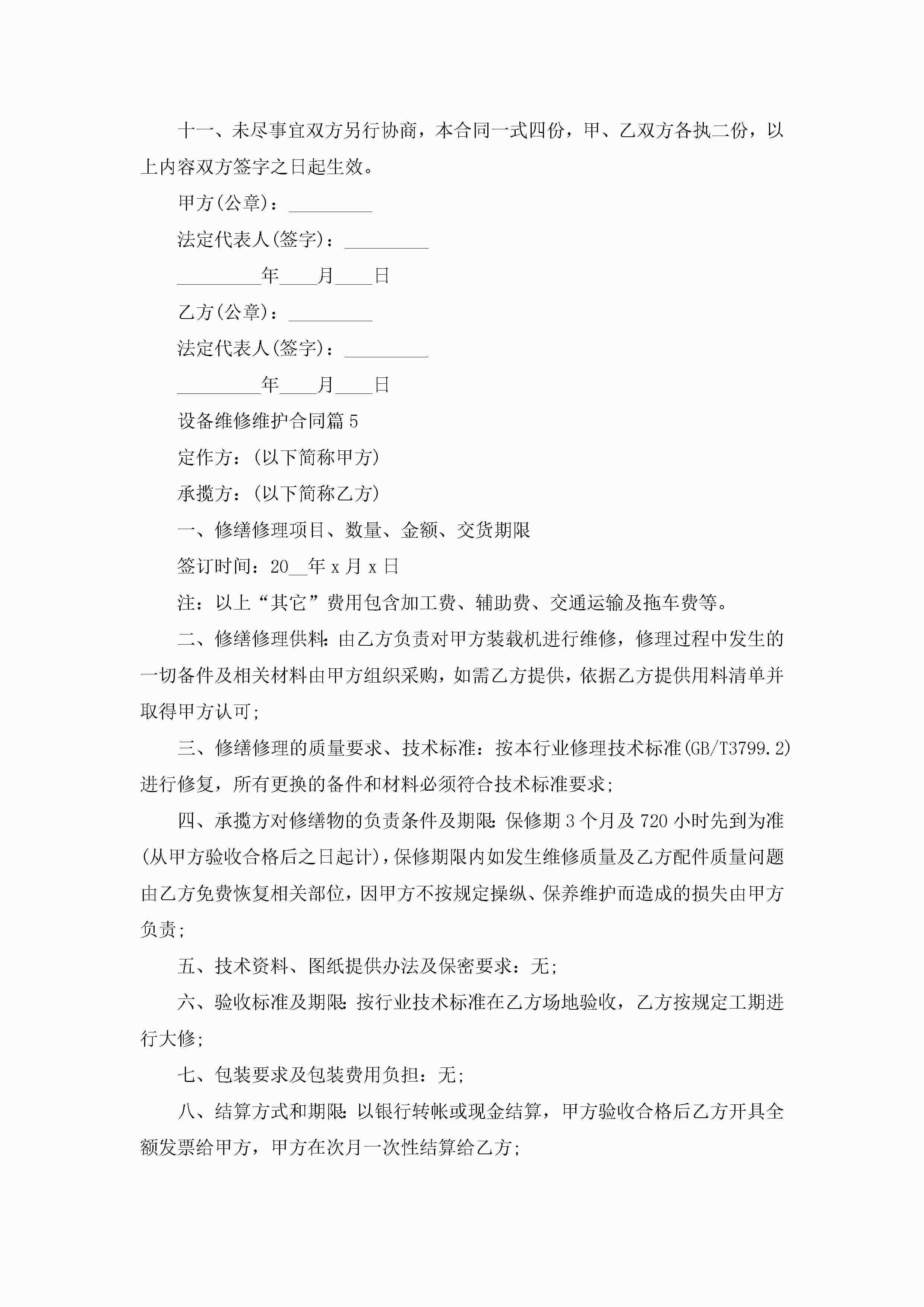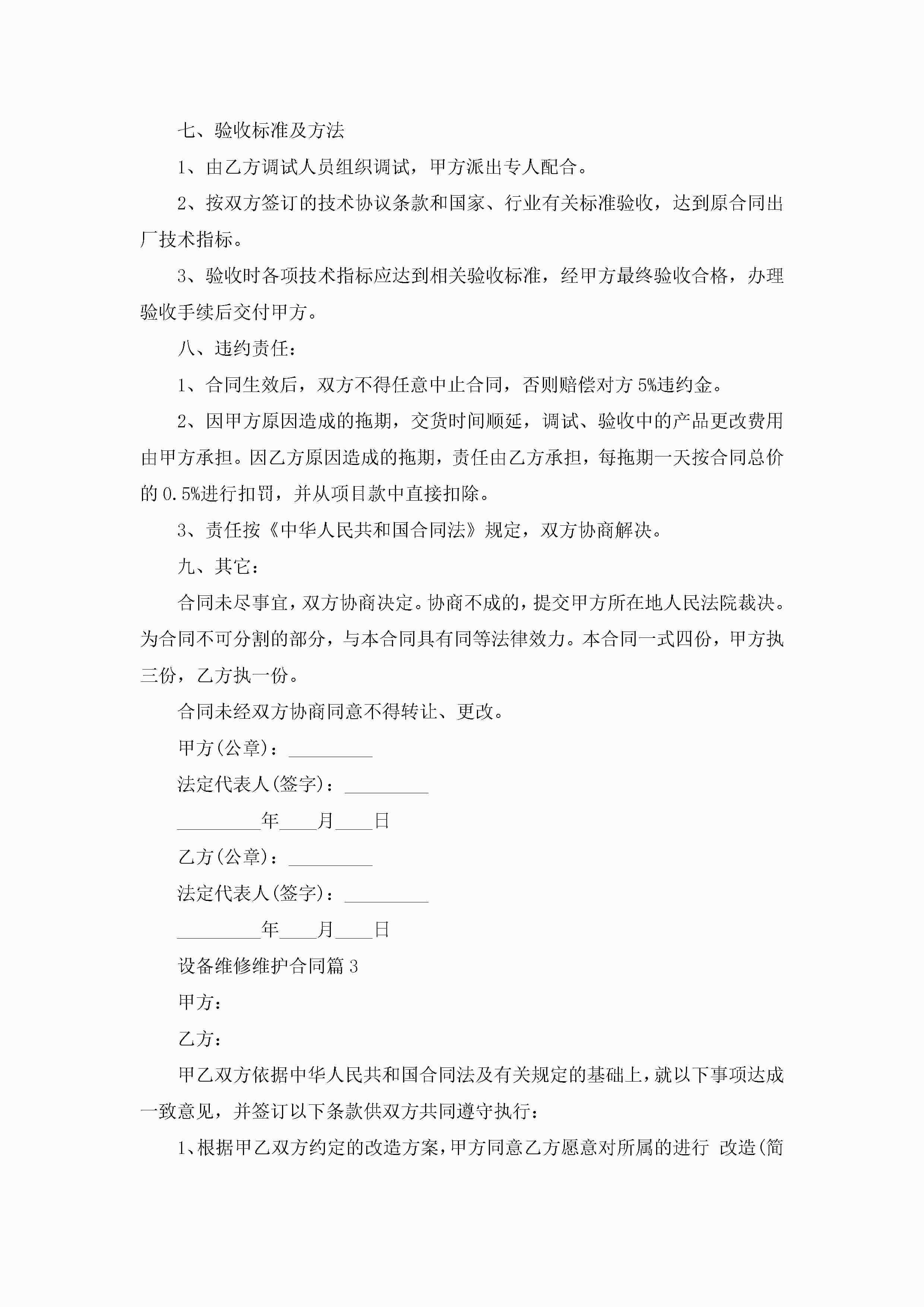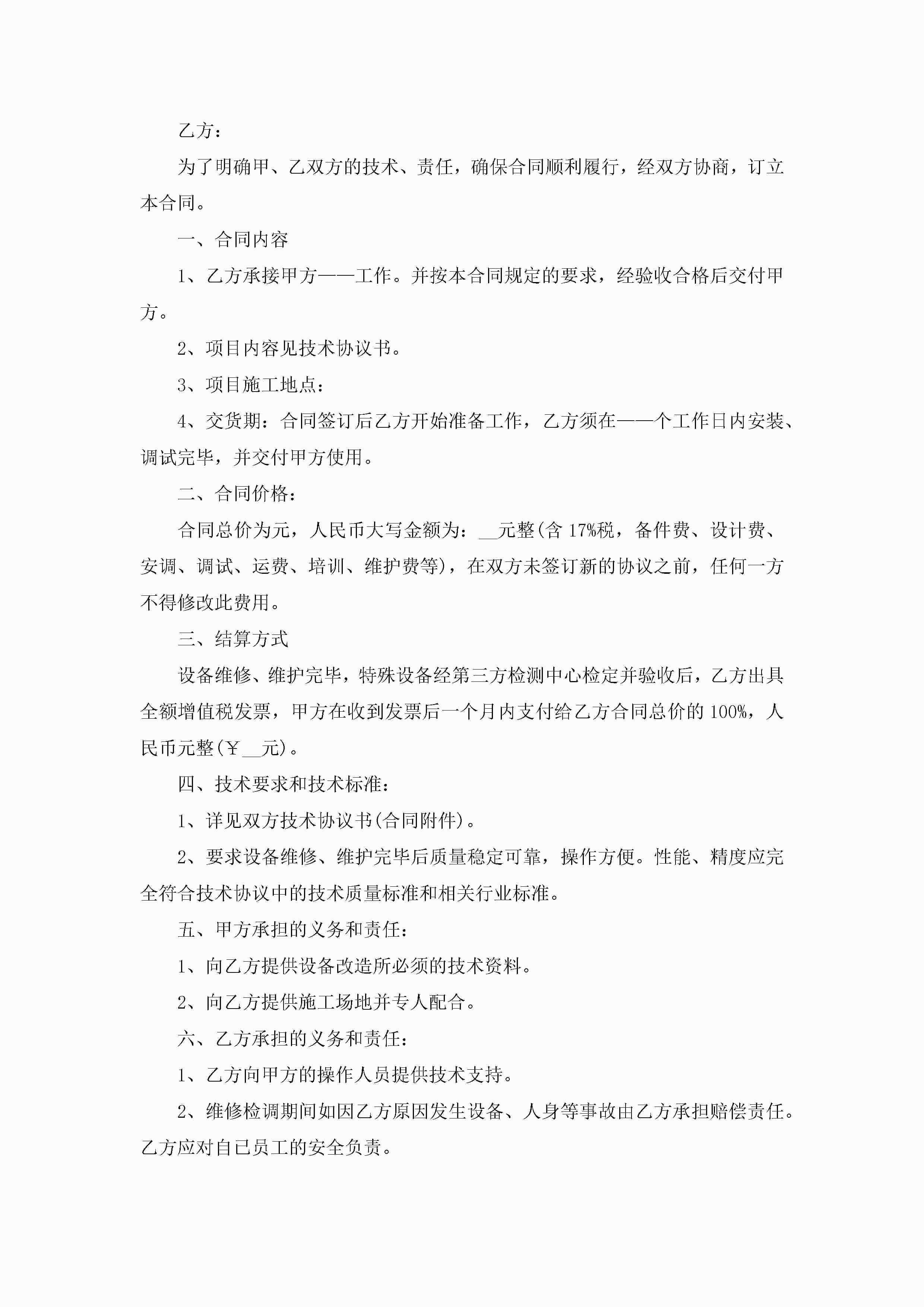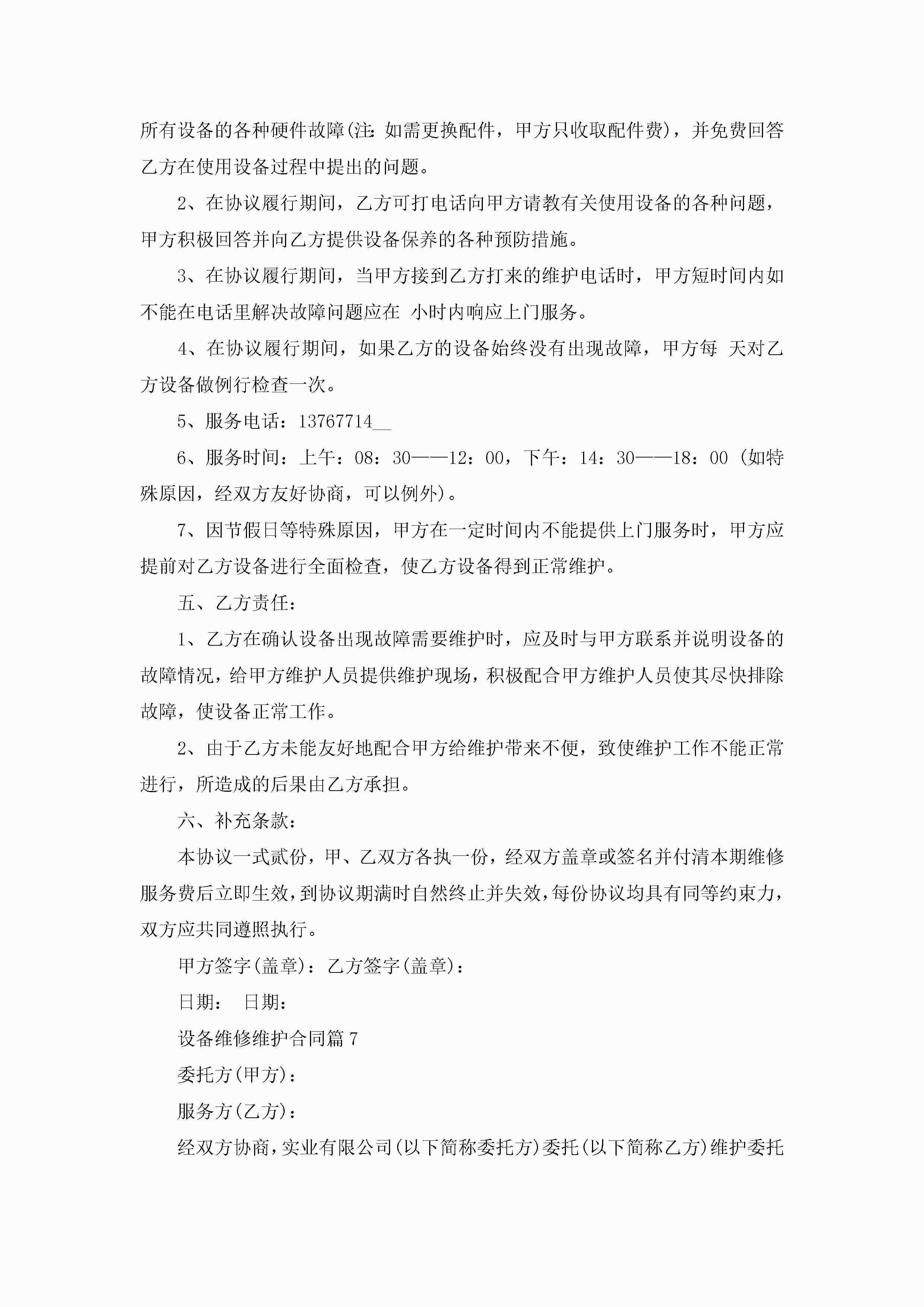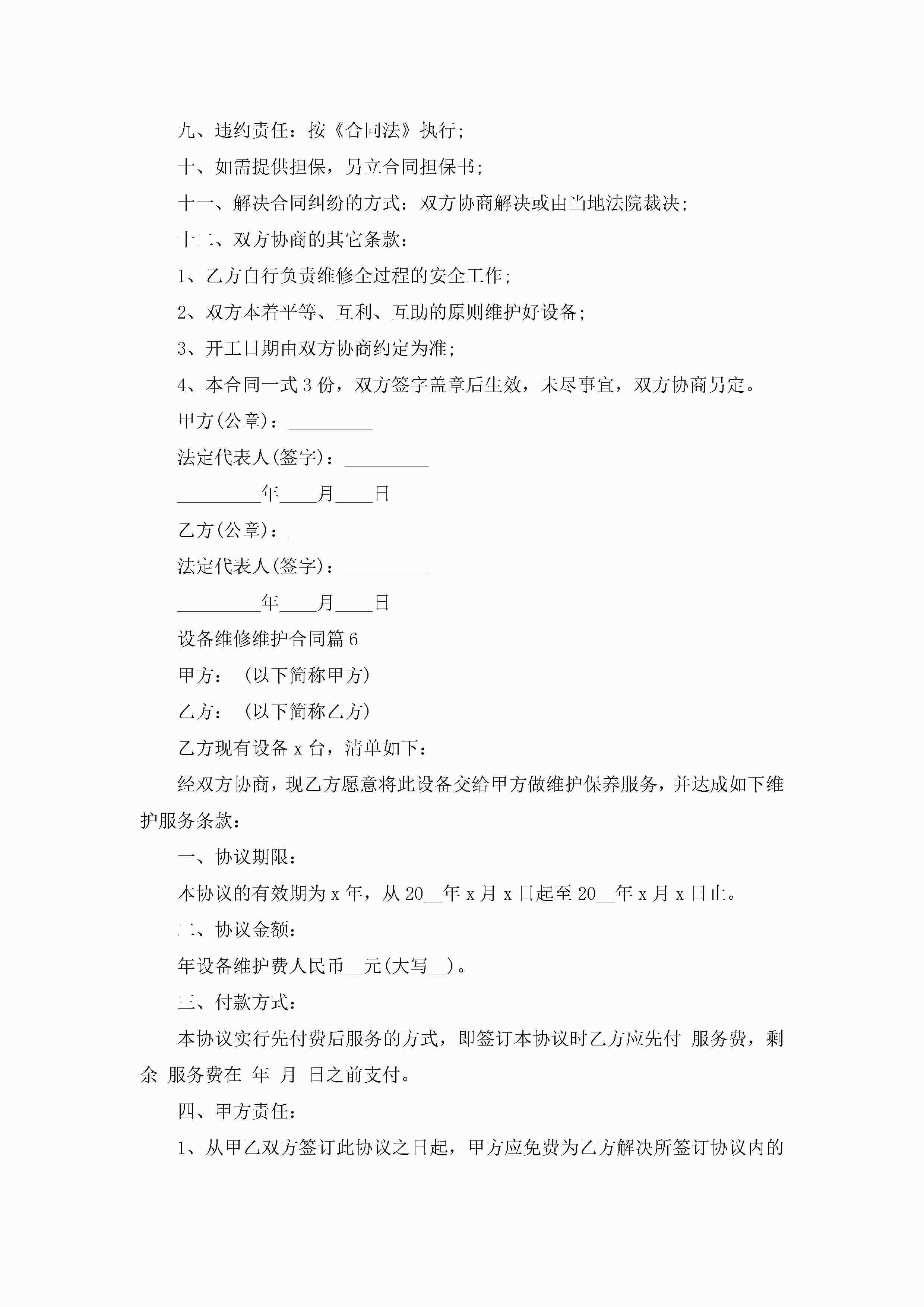 设备维修维护合同范文jugei3月23日 01:36发布关注255 设备维修维护合同范文此内容为付费资源,请付费后查看¥10.9 单篇文档限时特惠¥15个人会员开通企业会员开通立即下载无需登陆!可直接快捷下载单个模板付费资源© 版权声明THE ENDWord模板# 实用文档# 实用模板# 合同模板# 合同范本 如有问题,可点击最底部“联系我们”联系客服 分享QQ空间微博QQ好友海报分享复制链接收藏