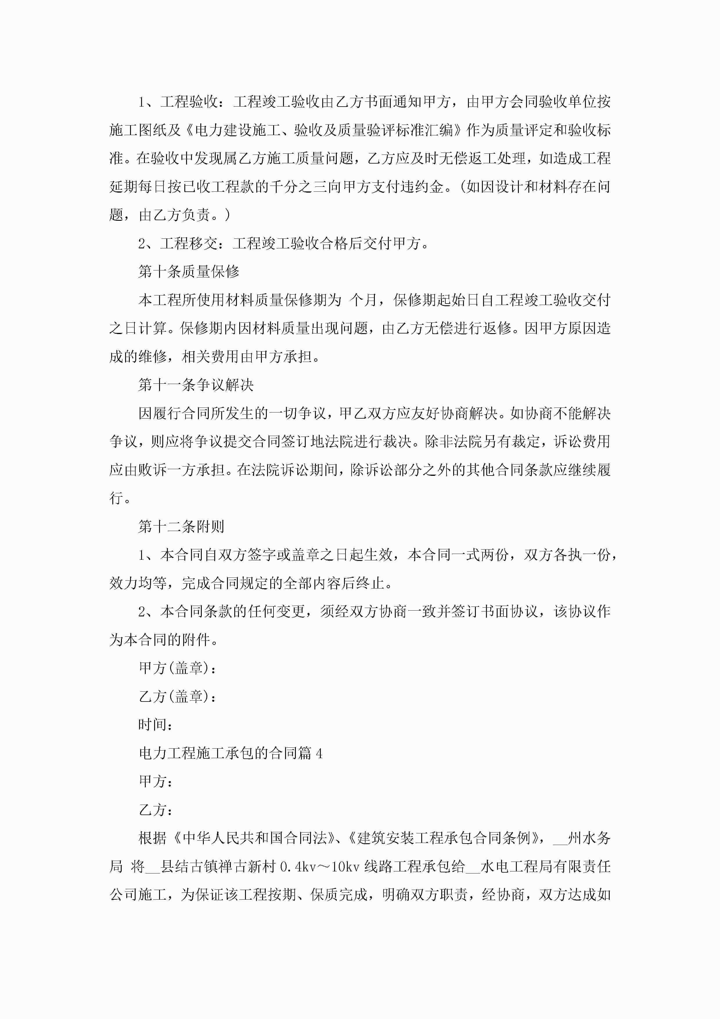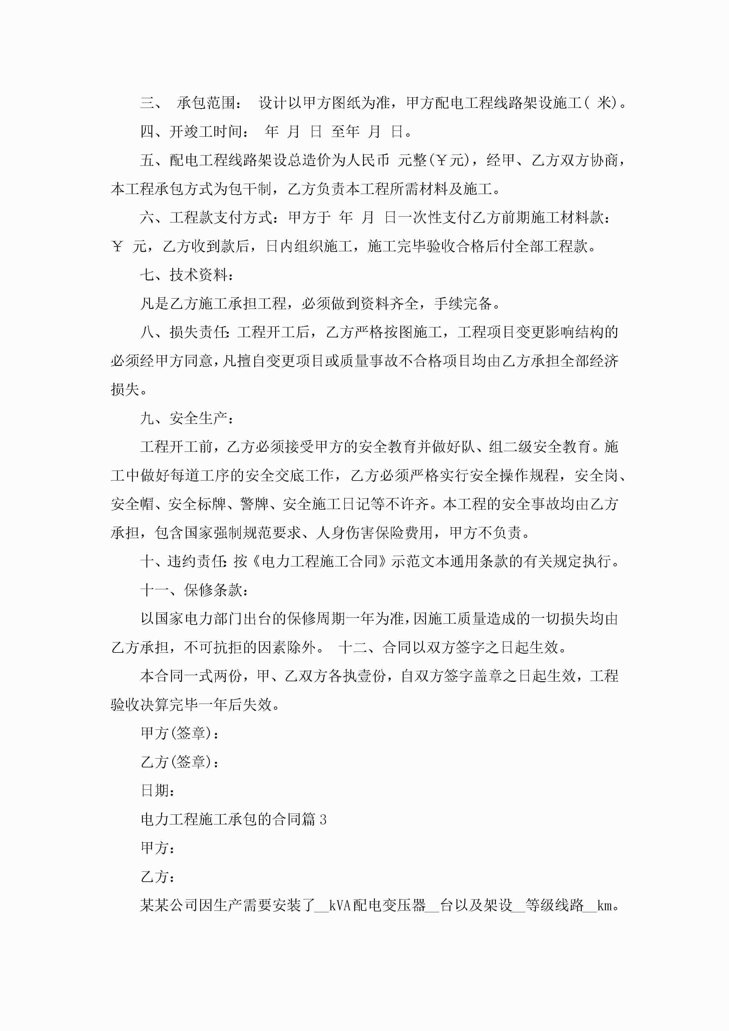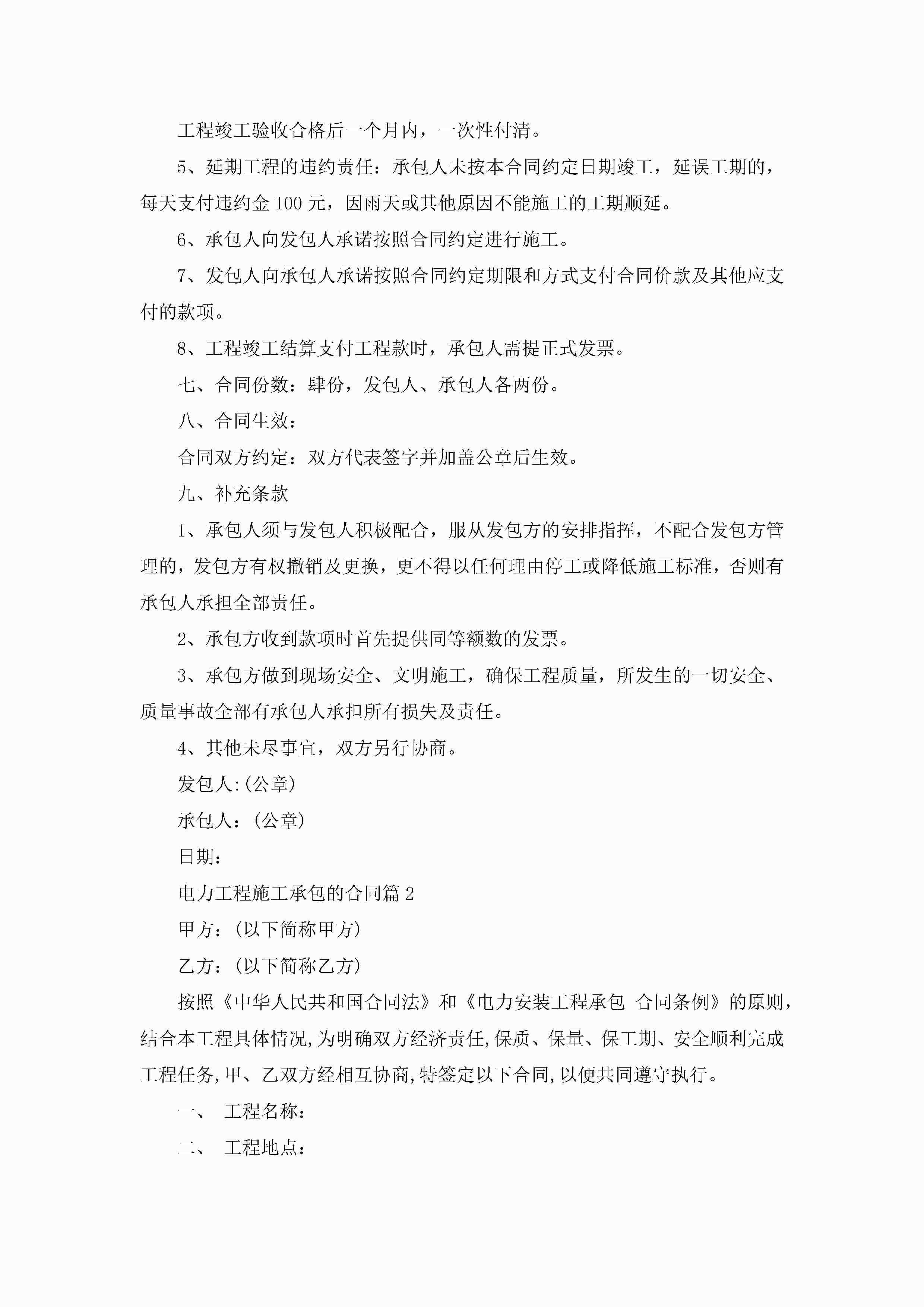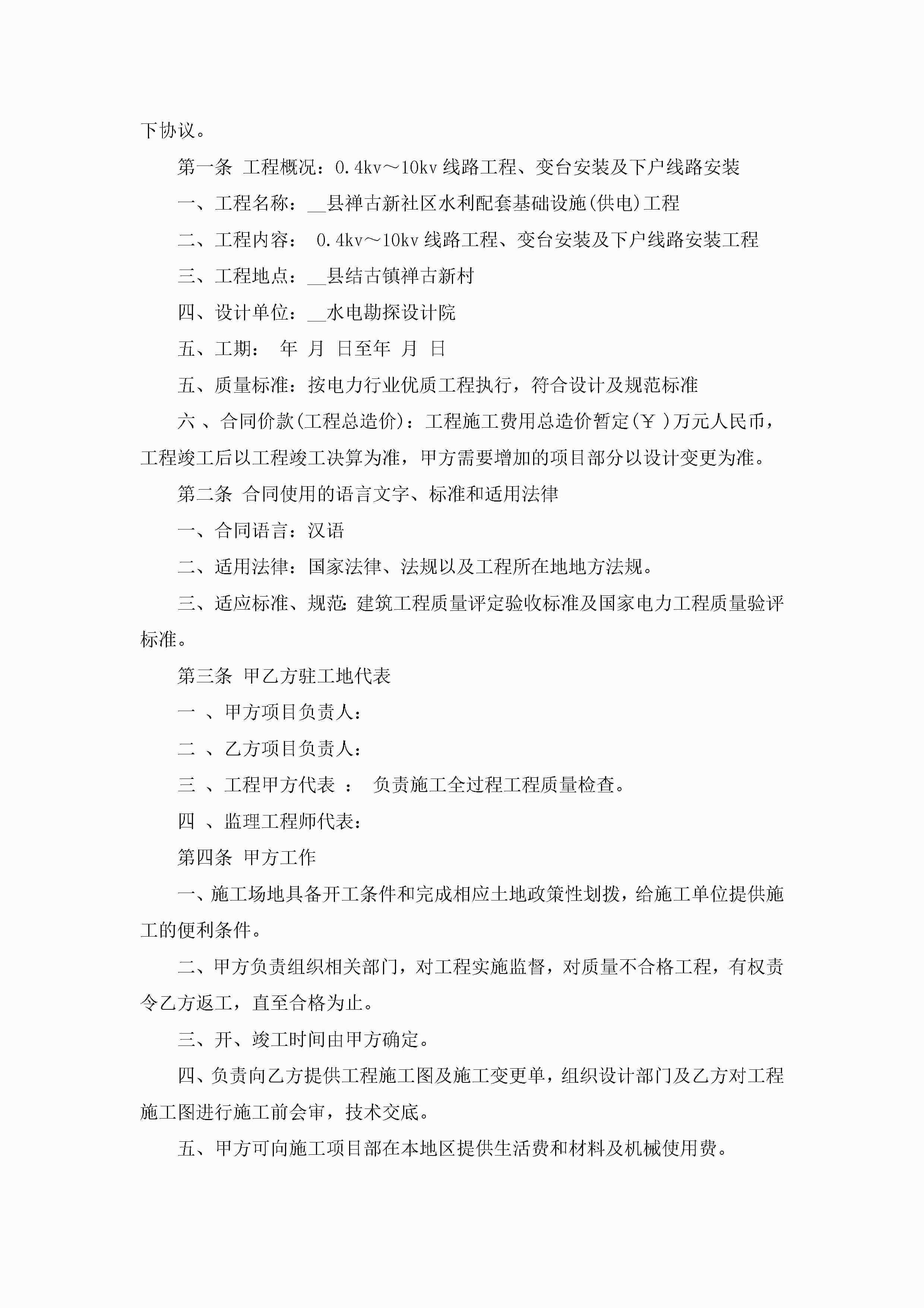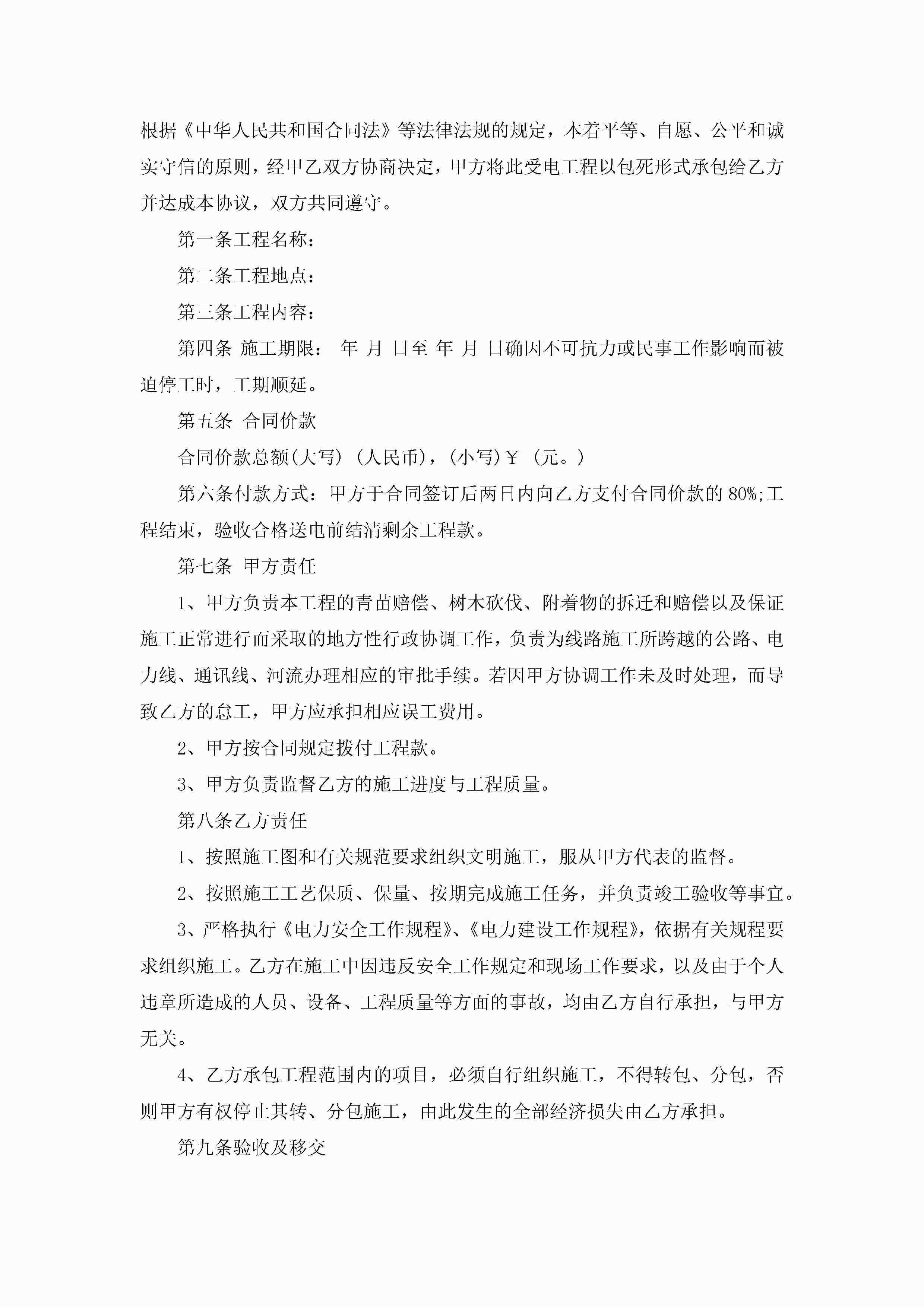 电力工程施工承包的合同范文jugei3月23日 01:36发布关注186 电力工程施工承包的合同范文此内容为付费资源,请付费后查看¥10.9 单篇文档限时特惠¥15个人会员开通企业会员开通立即下载无需登陆!可直接快捷下载单个模板付费资源© 版权声明THE ENDWord模板# 实用文档# 实用模板# 合同模板# 合同范本 如有问题,可点击最底部“联系我们”联系客服 分享QQ空间微博QQ好友海报分享复制链接收藏
