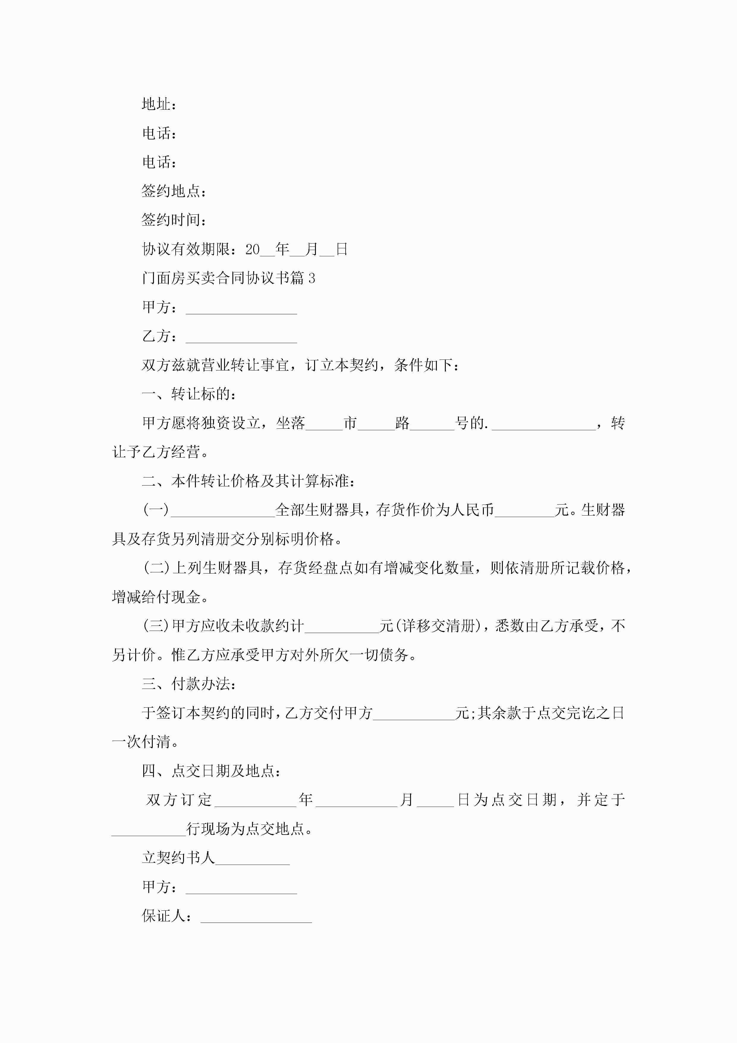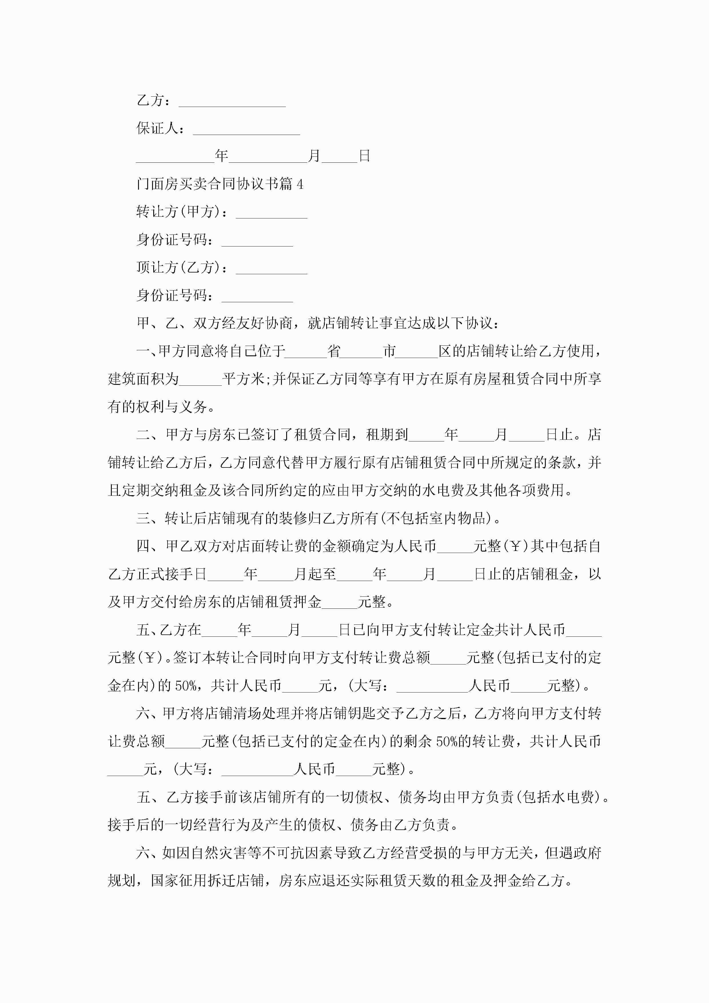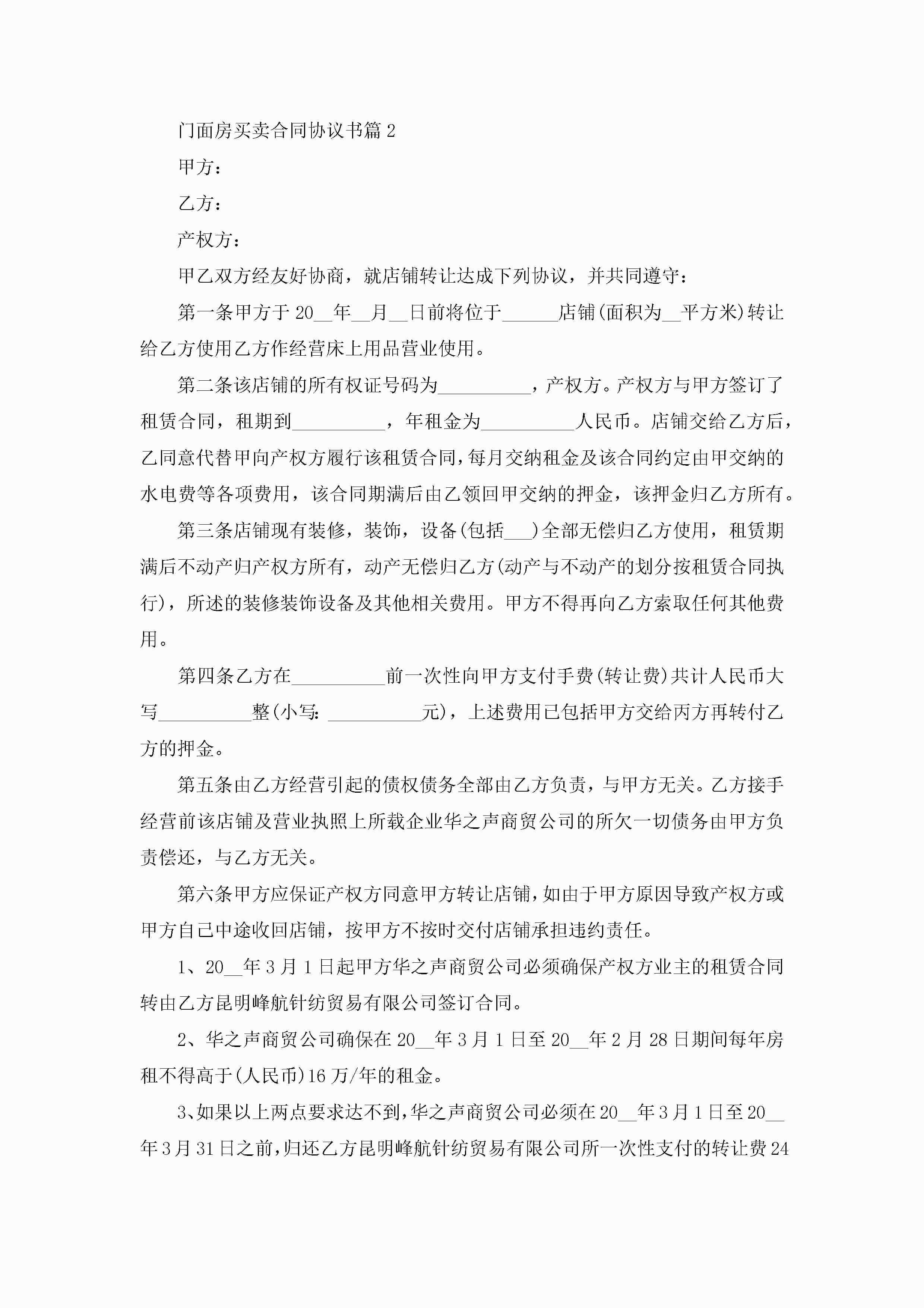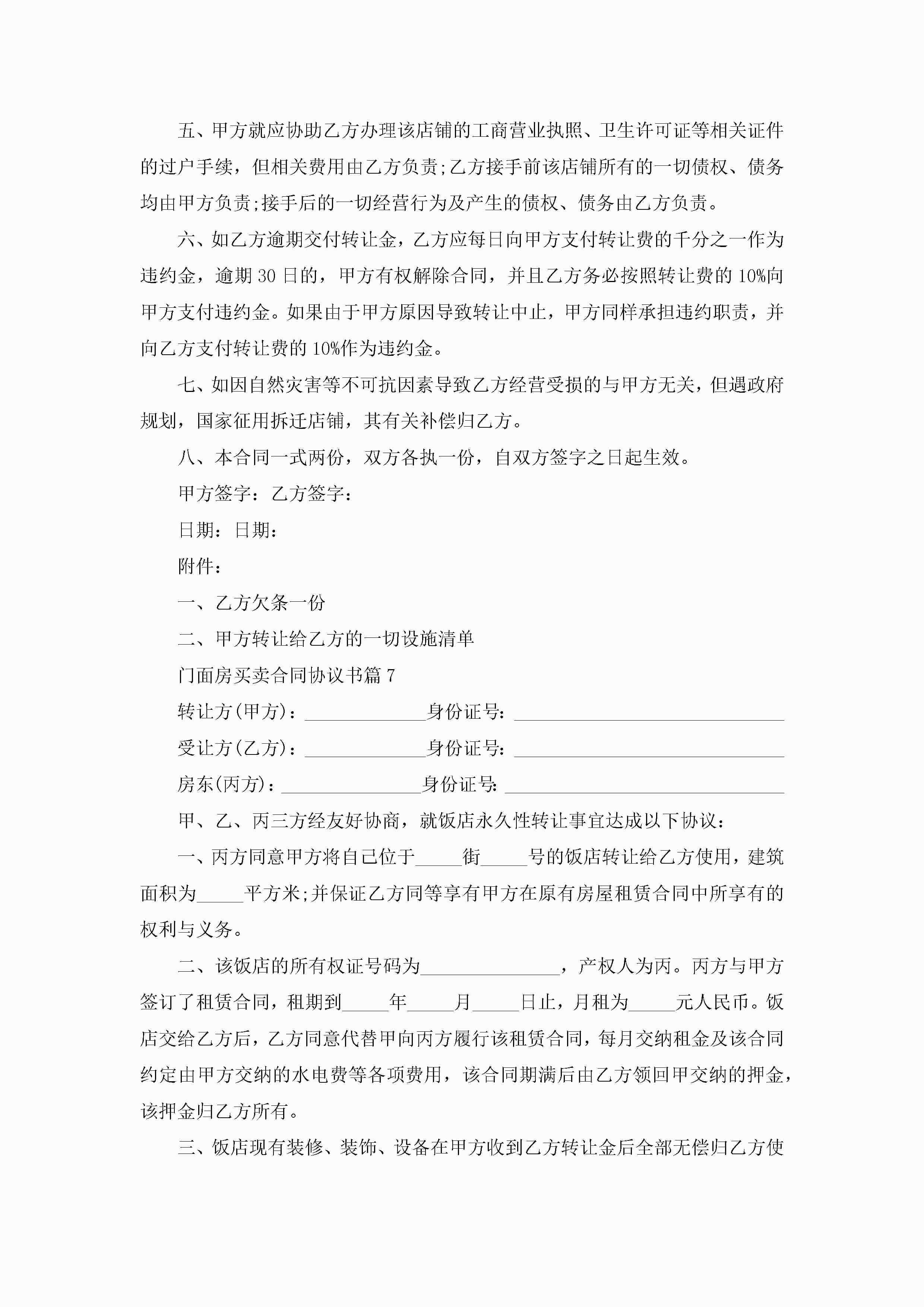 门面房买卖合同协议书范文jugei3月23日 01:36发布关注243 门面房买卖合同协议书范文此内容为付费资源,请付费后查看¥10.9 单篇文档限时特惠¥15个人会员开通企业会员开通立即下载无需登陆!可直接快捷下载单个模板付费资源© 版权声明THE ENDWord模板# 实用文档# 实用模板# 合同模板# 合同范本 如有问题,可点击最底部“联系我们”联系客服 分享QQ空间微博QQ好友海报分享复制链接收藏