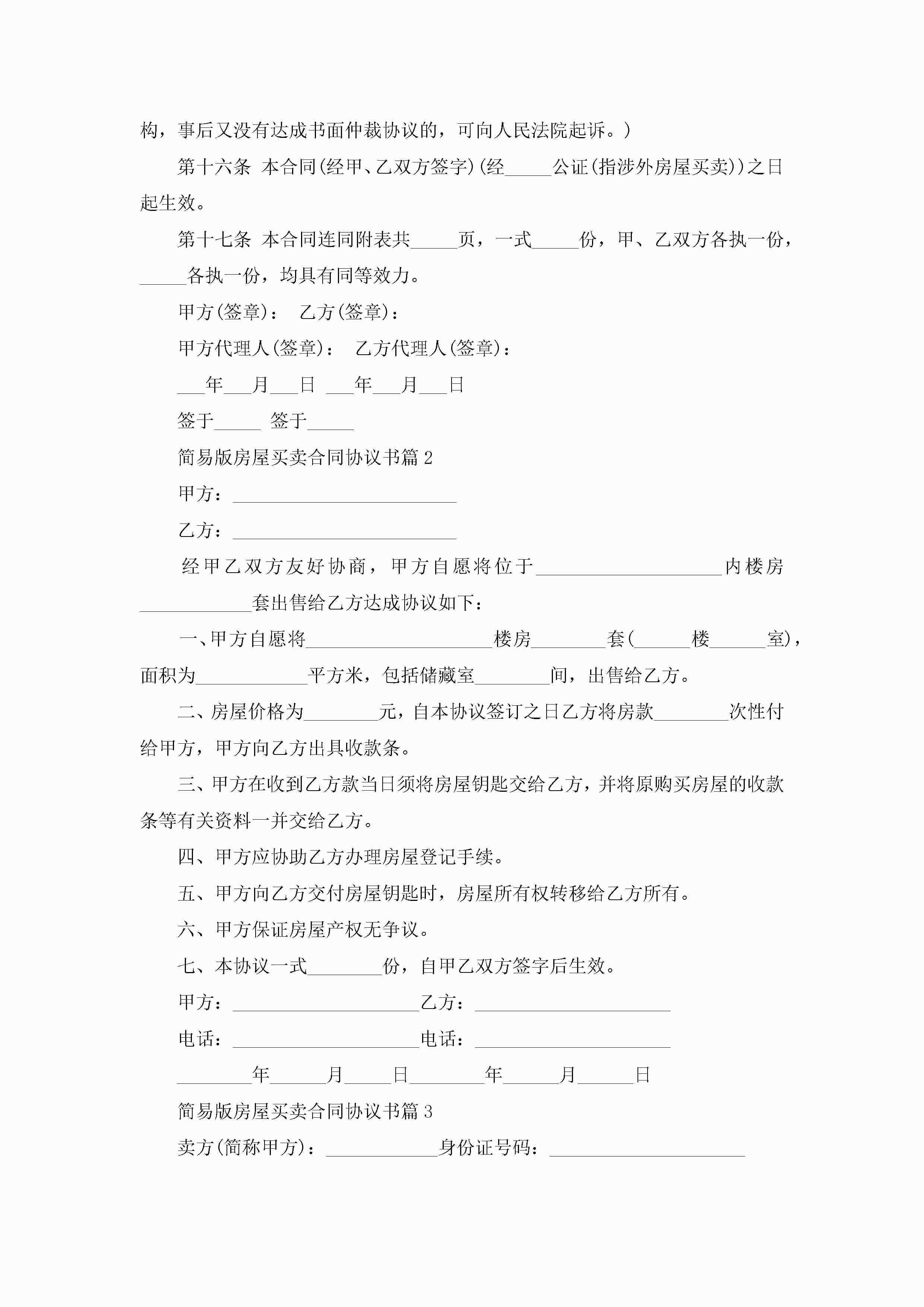 简易版房屋买卖合同协议书范文jugei3月23日 01:36发布关注191 简易版房屋买卖合同协议书范文此内容为付费资源,请付费后查看¥10.9 单篇文档限时特惠¥15个人会员开通企业会员开通立即下载无需登陆!可直接快捷下载单个模板付费资源© 版权声明THE ENDWord模板# 实用文档# 实用模板# 合同模板# 合同范本 如有问题,可点击最底部“联系我们”联系客服 分享QQ空间微博QQ好友海报分享复制链接收藏