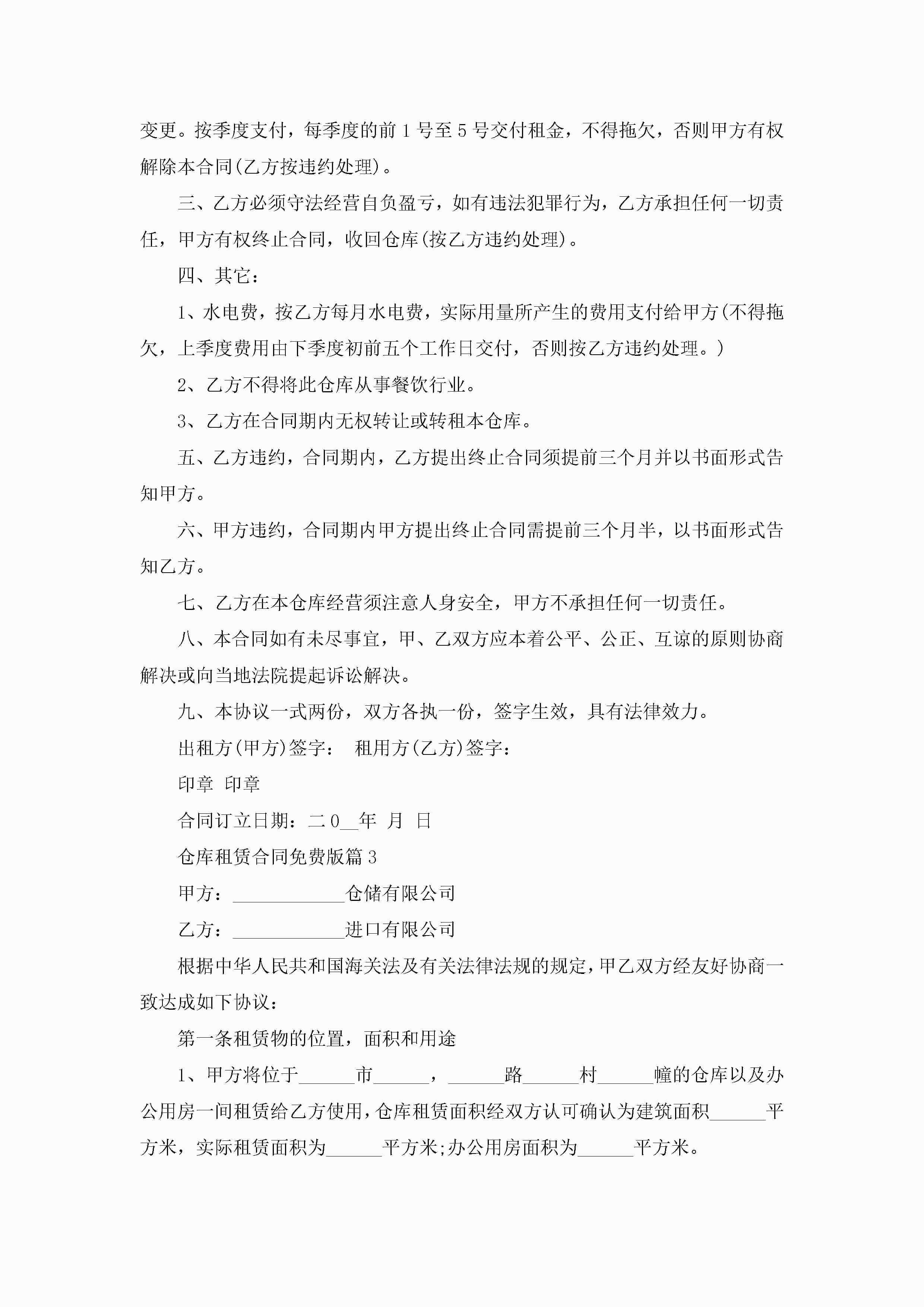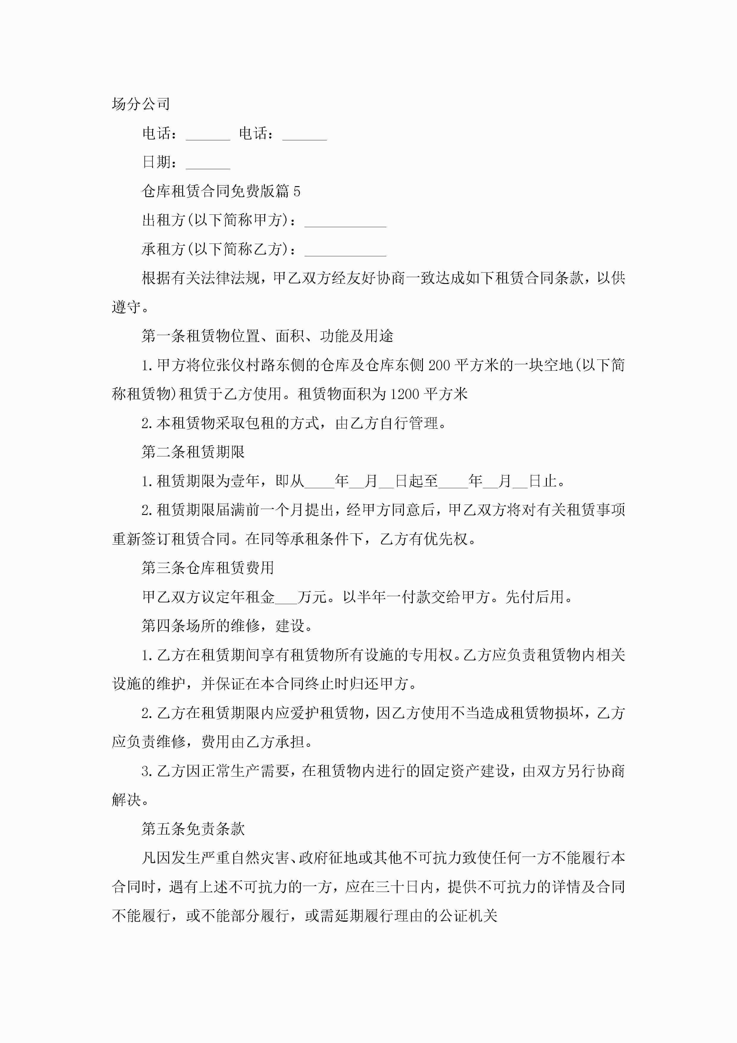 仓库租赁合同范文免费版jugei3月23日 01:36发布关注205 仓库租赁合同范文免费版此内容为付费资源,请付费后查看¥10.9 单篇文档限时特惠¥15个人会员开通企业会员开通立即下载无需登陆!可直接快捷下载单个模板付费资源© 版权声明THE ENDWord模板# 实用文档# 实用模板# 合同模板# 合同范本 如有问题,可点击最底部“联系我们”联系客服 分享QQ空间微博QQ好友海报分享复制链接收藏