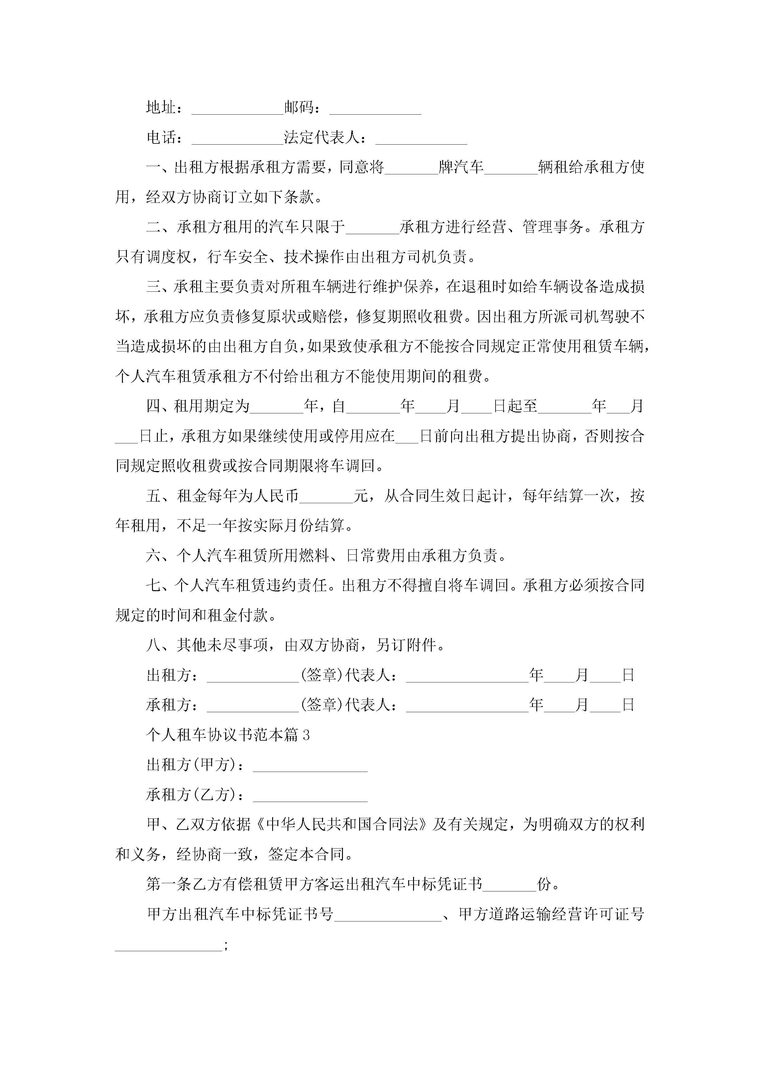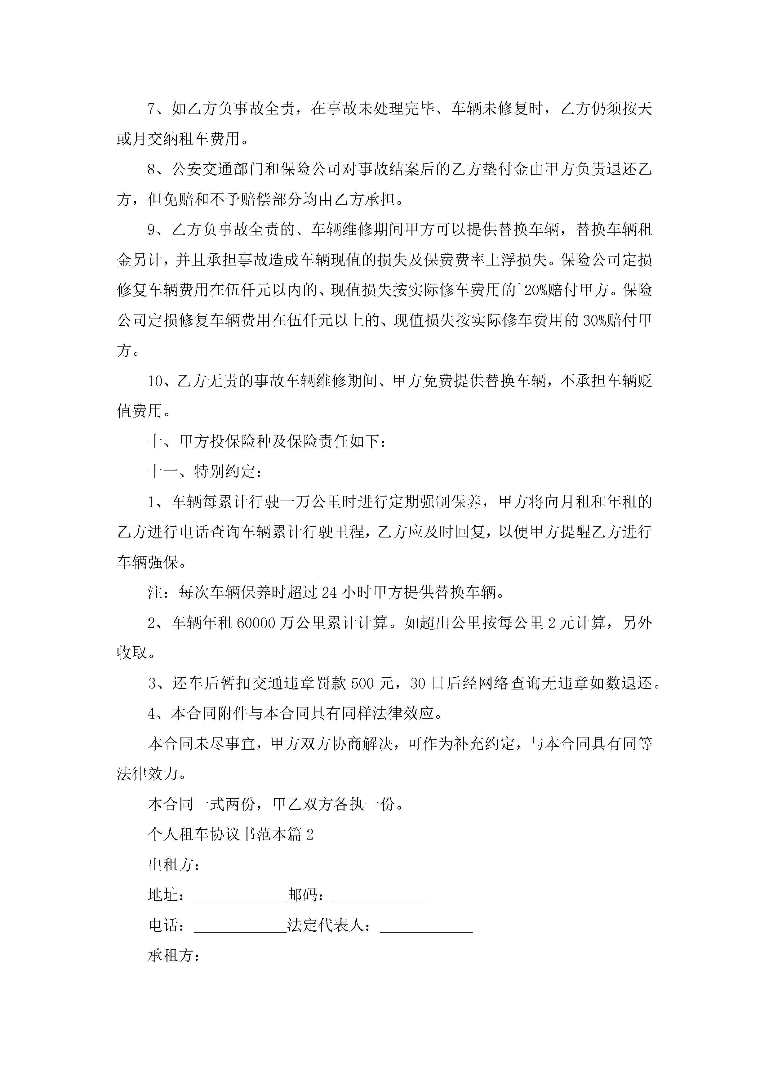 个人租车协议书最新范本jugei3月23日 01:36发布关注215 个人租车协议书最新范本此内容为付费资源,请付费后查看¥10.9 单篇文档限时特惠¥15个人会员开通企业会员开通立即下载无需登陆!可直接快捷下载单个模板付费资源© 版权声明THE ENDWord模板# 实用文档# 实用模板# 合同模板# 合同范本 如有问题,可点击最底部“联系我们”联系客服 分享QQ空间微博QQ好友海报分享复制链接收藏