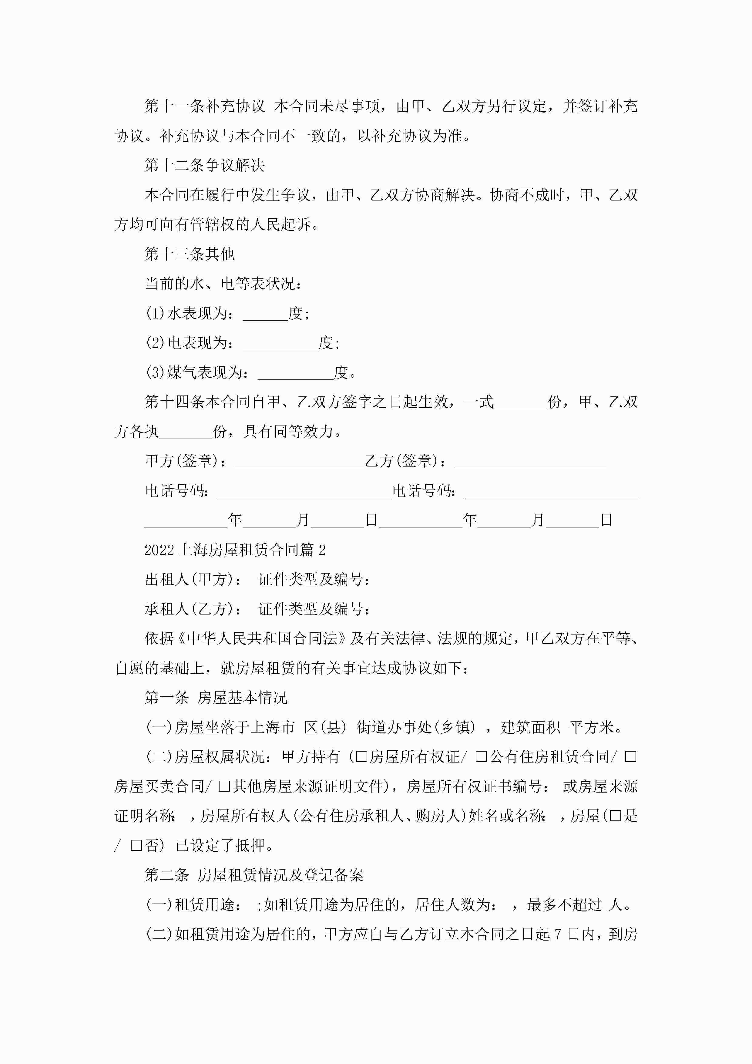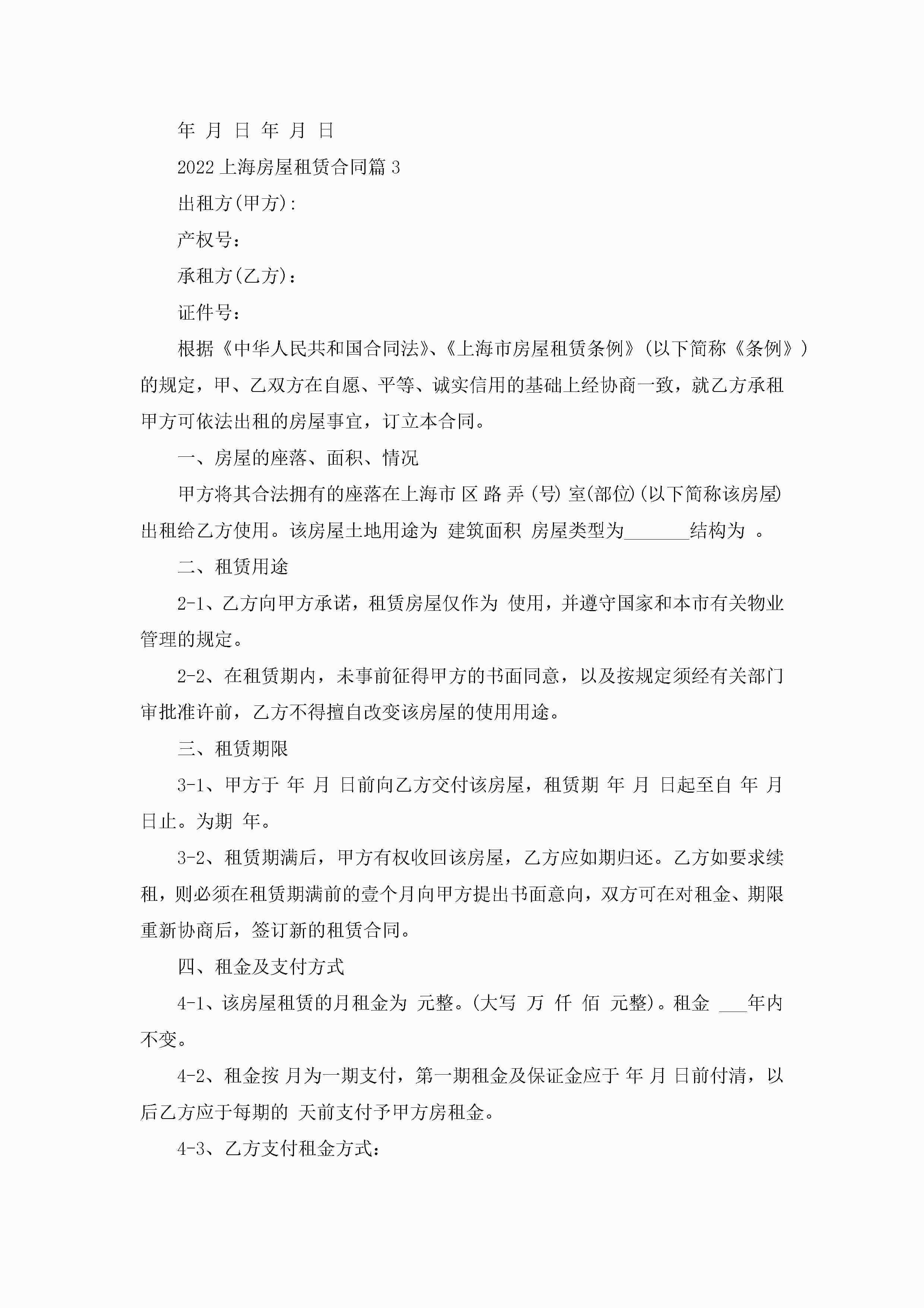 2022上海房屋租赁合同范文jugei3月23日 01:36发布关注188 2022上海房屋租赁合同范文此内容为付费资源,请付费后查看¥10.9 单篇文档限时特惠¥15个人会员开通企业会员开通立即下载无需登陆!可直接快捷下载单个模板付费资源© 版权声明THE ENDWord模板# 实用文档# 实用模板# 合同模板# 合同范本 如有问题,可点击最底部“联系我们”联系客服 分享QQ空间微博QQ好友海报分享复制链接收藏
