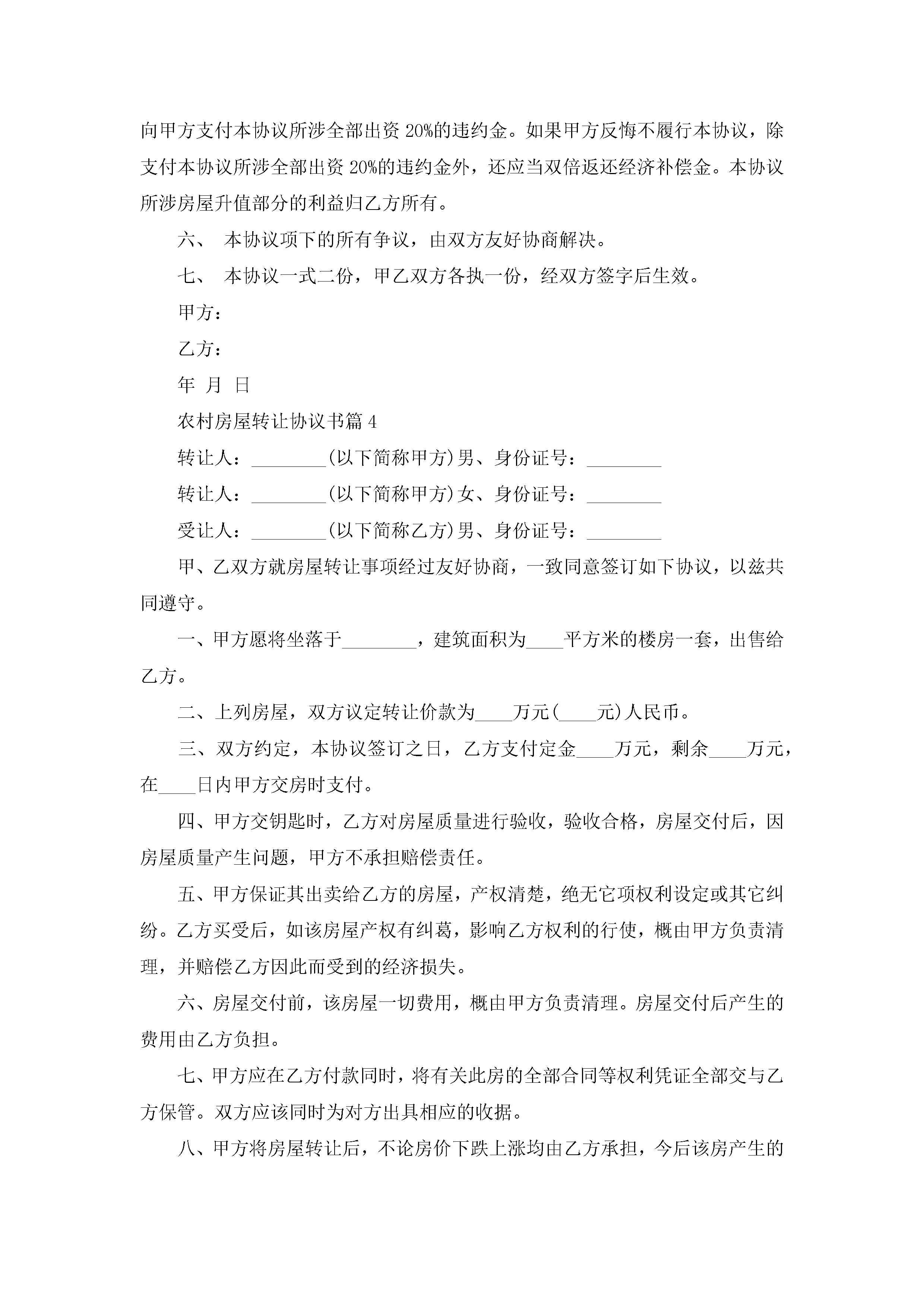 农村房屋转让协议书范文jugei3月23日 01:36发布关注194 农村房屋转让协议书范文此内容为付费资源,请付费后查看¥10.9 单篇文档限时特惠¥15个人会员开通企业会员开通立即下载无需登陆!可直接快捷下载单个模板付费资源© 版权声明THE ENDWord模板# 实用文档# 实用模板# 合同模板# 合同范本 如有问题,可点击最底部“联系我们”联系客服 分享QQ空间微博QQ好友海报分享复制链接收藏