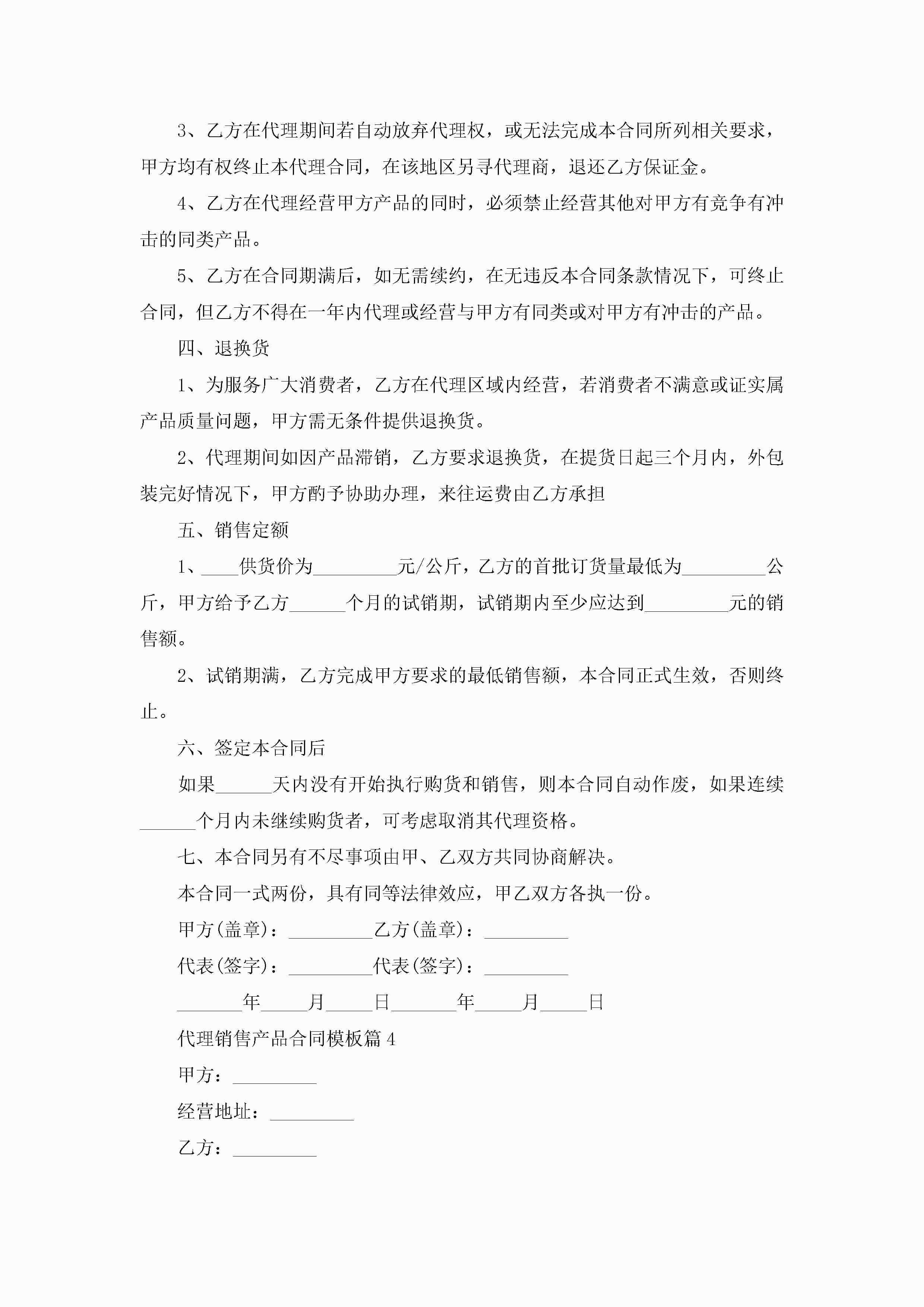 代理销售产品合同范文模板jugei3月23日 01:36发布关注188 代理销售产品合同范文模板此内容为付费资源,请付费后查看¥10.9 单篇文档限时特惠¥15个人会员开通企业会员开通立即下载无需登陆!可直接快捷下载单个模板付费资源© 版权声明THE ENDWord模板# 实用文档# 实用模板# 合同模板# 合同范本 如有问题,可点击最底部“联系我们”联系客服 分享QQ空间微博QQ好友海报分享复制链接收藏