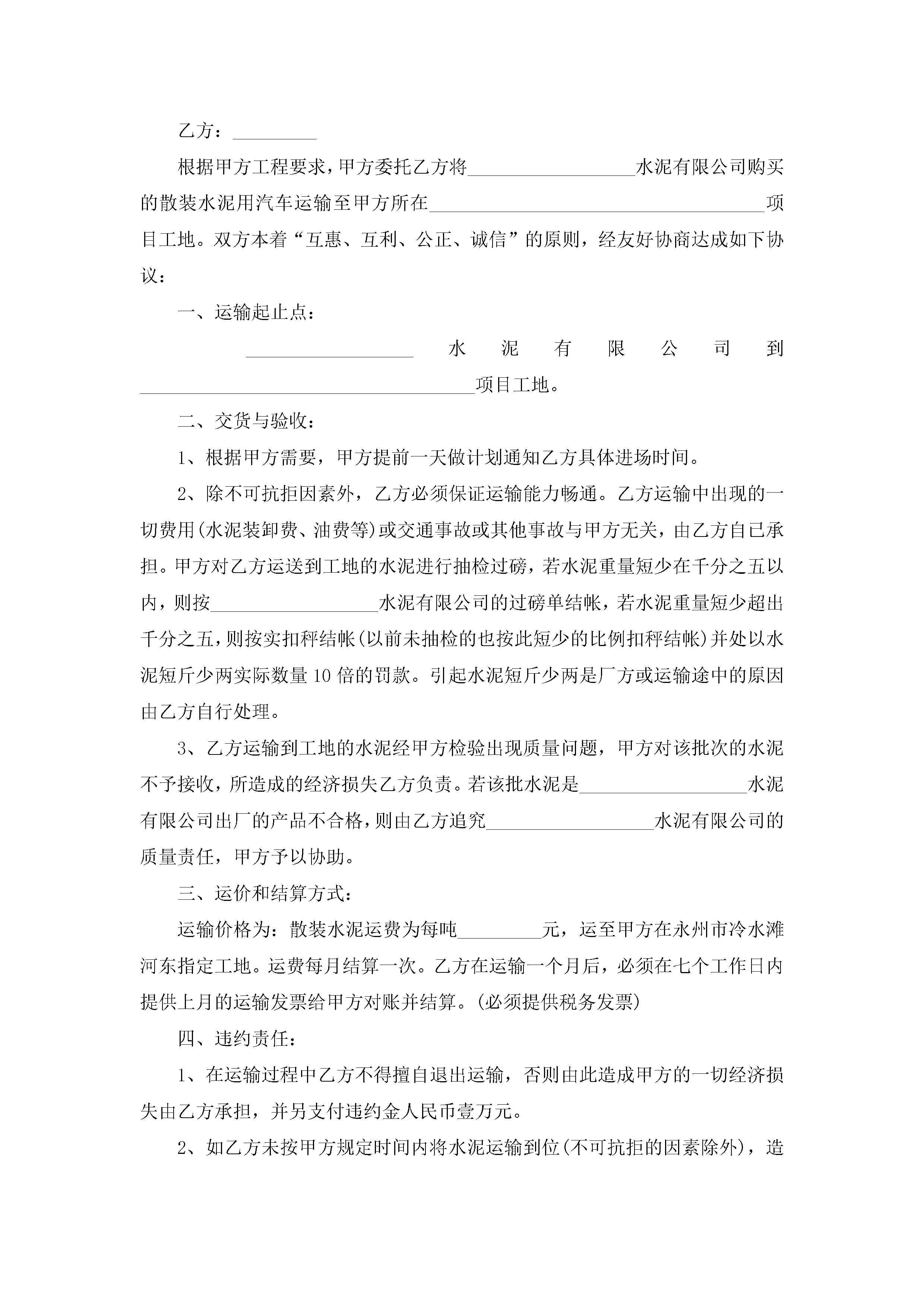 运输合同范文模板简易版jugei3月23日 01:36发布关注192 运输合同范文模板简易版此内容为付费资源,请付费后查看¥10.9 单篇文档限时特惠¥15个人会员开通企业会员开通立即下载无需登陆!可直接快捷下载单个模板付费资源© 版权声明THE ENDWord模板# 实用文档# 实用模板# 合同模板# 合同范本 如有问题,可点击最底部“联系我们”联系客服 分享QQ空间微博QQ好友海报分享复制链接收藏