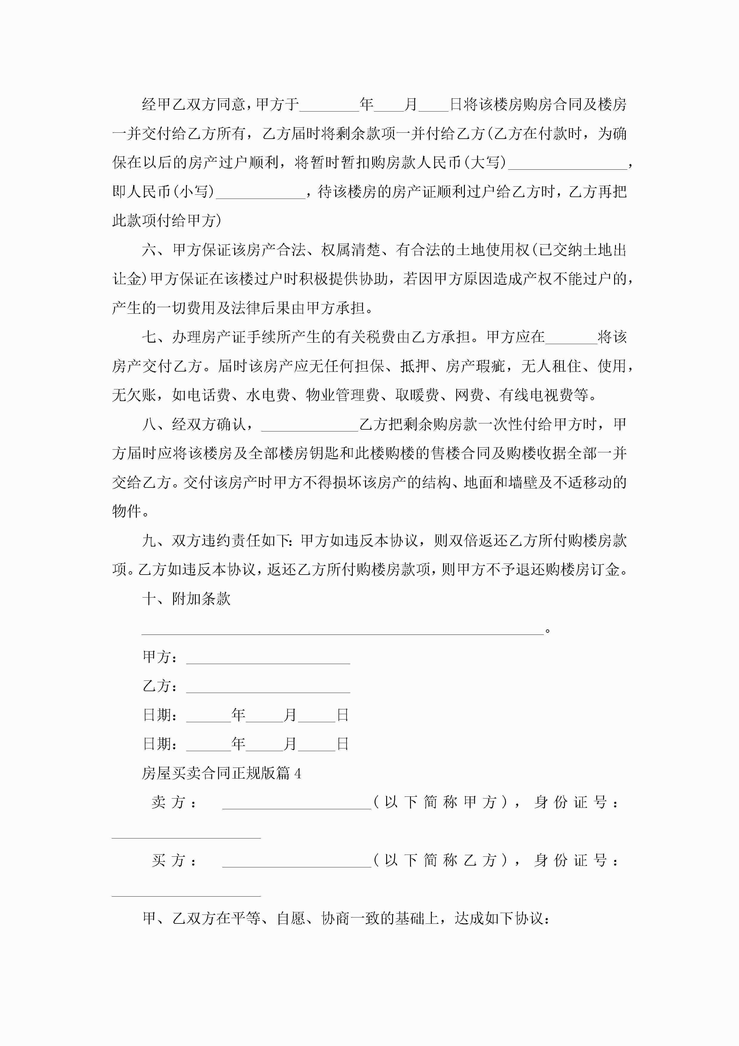 房屋买卖合同范文正规版jugei3月23日 01:36发布关注191 房屋买卖合同范文正规版此内容为付费资源,请付费后查看¥10.9 单篇文档限时特惠¥15个人会员开通企业会员开通立即下载无需登陆!可直接快捷下载单个模板付费资源© 版权声明THE ENDWord模板# 实用文档# 实用模板# 合同模板# 合同范本 如有问题,可点击最底部“联系我们”联系客服 分享QQ空间微博QQ好友海报分享复制链接收藏