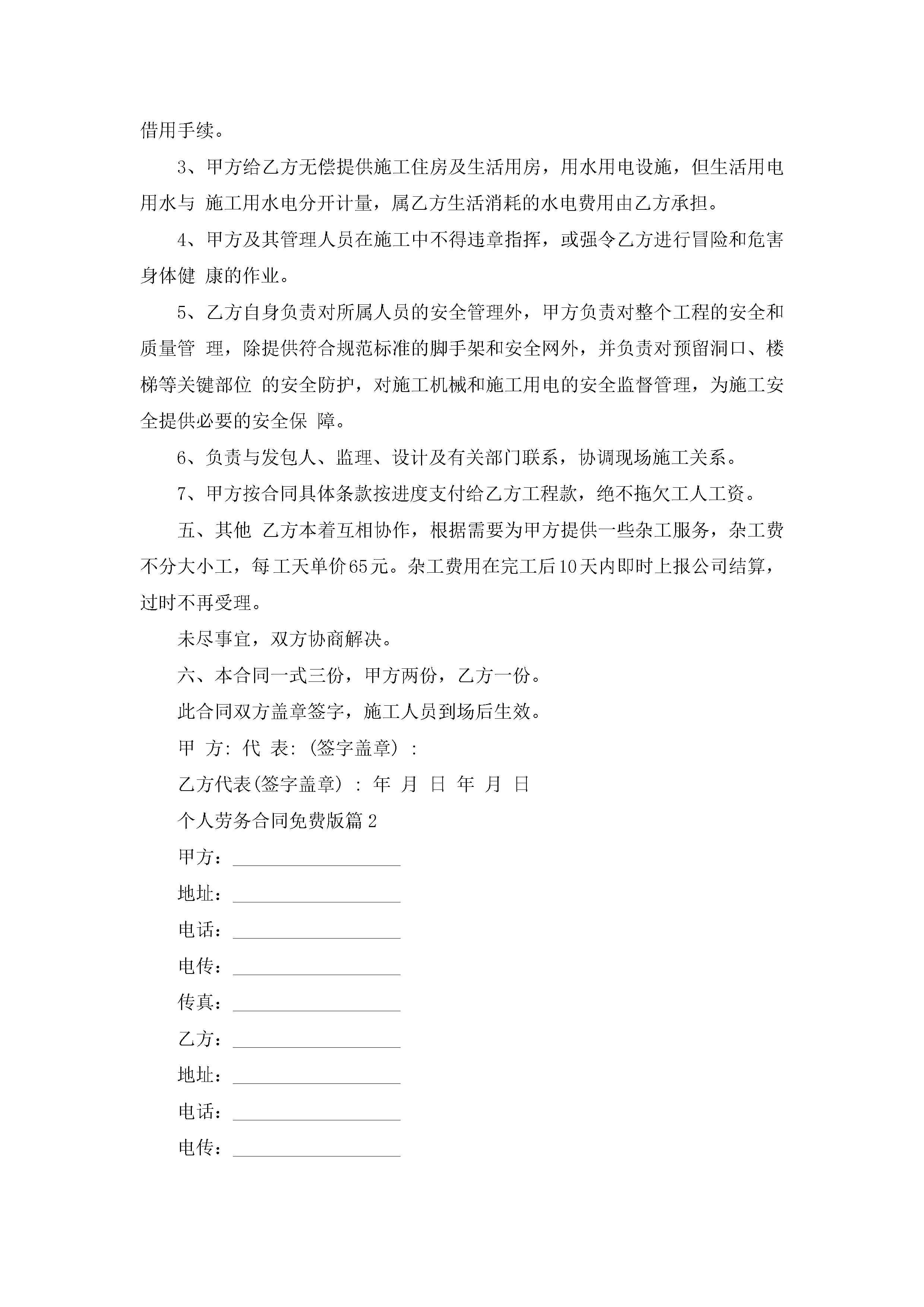 个人劳务合同范文免费版jugei3月23日 01:36发布关注197 个人劳务合同范文免费版此内容为付费资源,请付费后查看¥10.9 单篇文档限时特惠¥15个人会员开通企业会员开通立即下载无需登陆!可直接快捷下载单个模板付费资源© 版权声明THE ENDWord模板# 实用文档# 实用模板# 合同模板# 合同范本 如有问题,可点击最底部“联系我们”联系客服 分享QQ空间微博QQ好友海报分享复制链接收藏