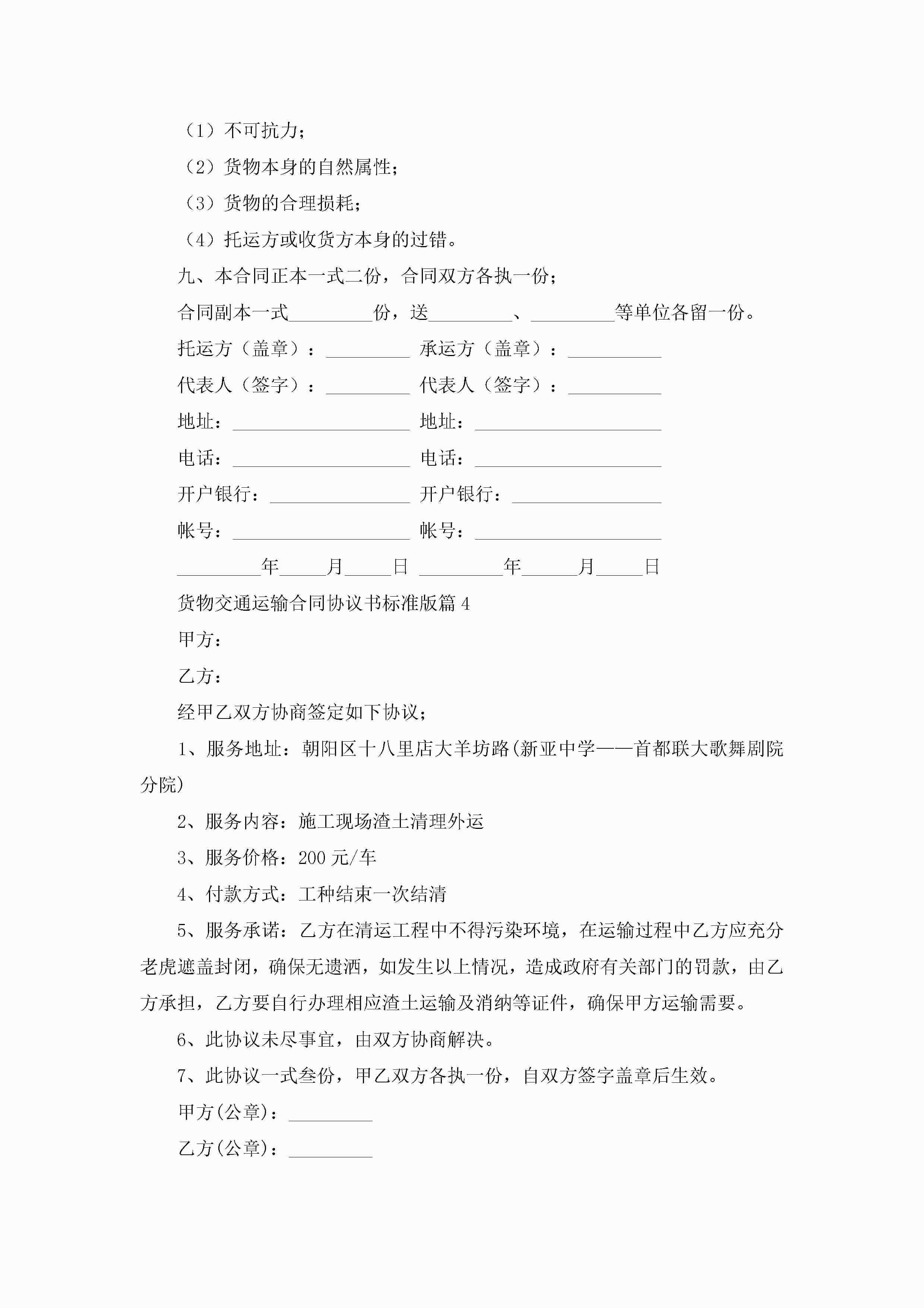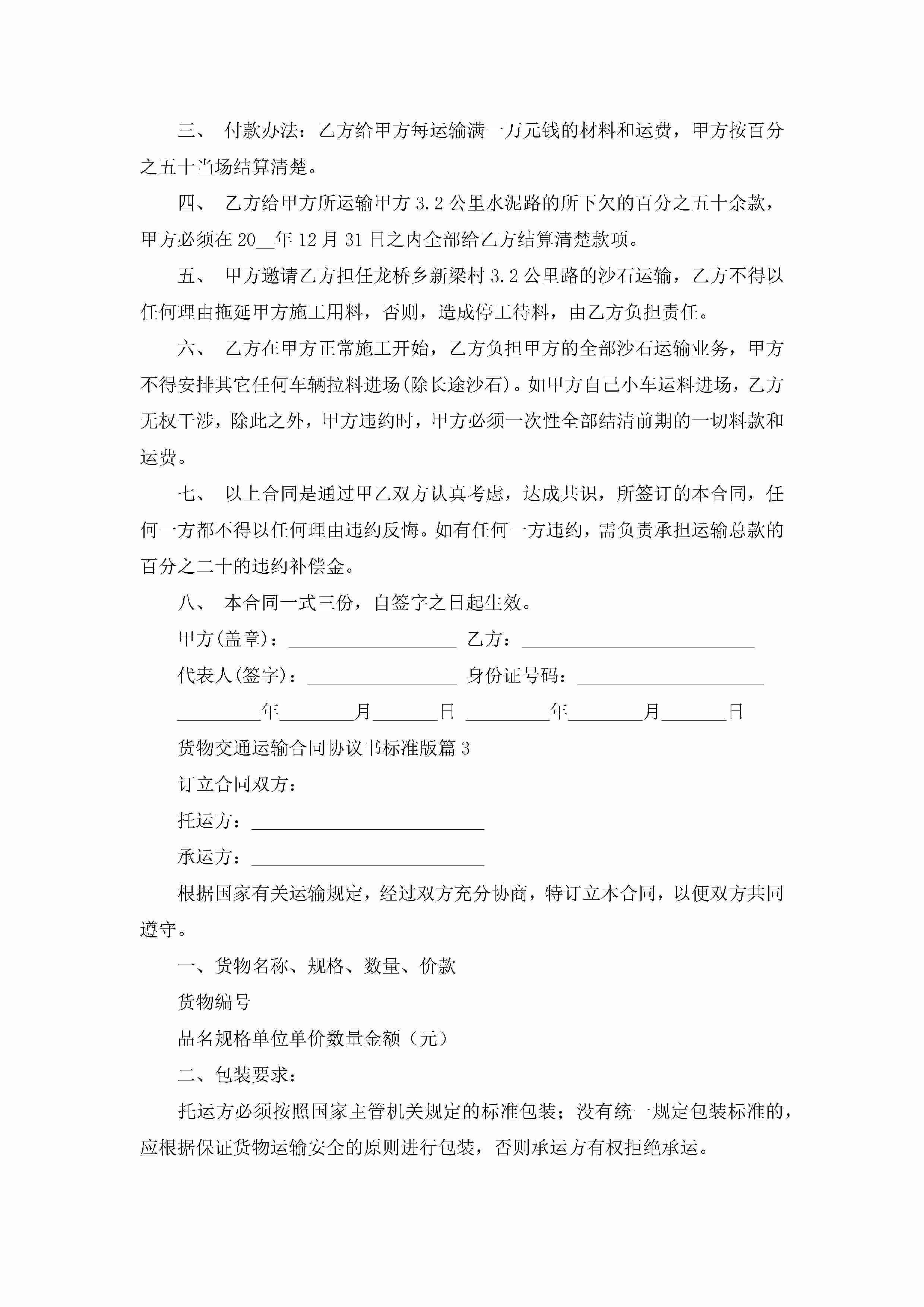 货物交通运输合同协议书标准版7篇jugei3月23日 01:36发布关注237 货物交通运输合同协议书标准版7篇此内容为付费资源,请付费后查看¥10.9 单篇文档限时特惠¥15个人会员开通企业会员开通立即下载无需登陆!可直接快捷下载单个模板付费资源© 版权声明THE ENDWord模板# 实用文档# 实用模板# 合同模板# 合同范本 如有问题,可点击最底部“联系我们”联系客服 分享QQ空间微博QQ好友海报分享复制链接收藏