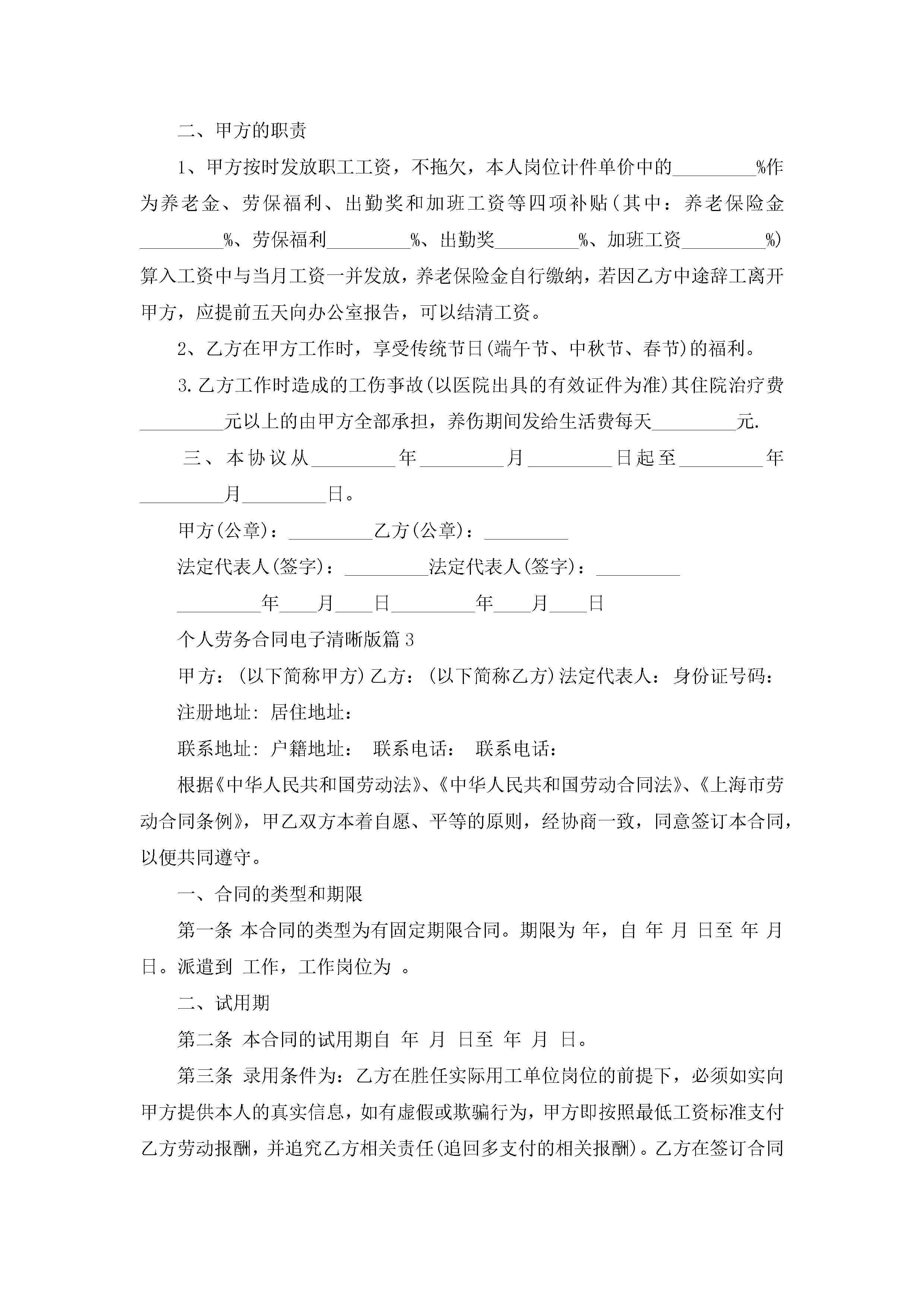 个人劳务合同范文电子清晰版jugei3月23日 01:36发布关注189 个人劳务合同范文电子清晰版此内容为付费资源,请付费后查看¥10.9 单篇文档限时特惠¥15个人会员开通企业会员开通立即下载无需登陆!可直接快捷下载单个模板付费资源© 版权声明THE ENDWord模板# 实用文档# 实用模板# 合同模板# 合同范本 如有问题,可点击最底部“联系我们”联系客服 分享QQ空间微博QQ好友海报分享复制链接收藏