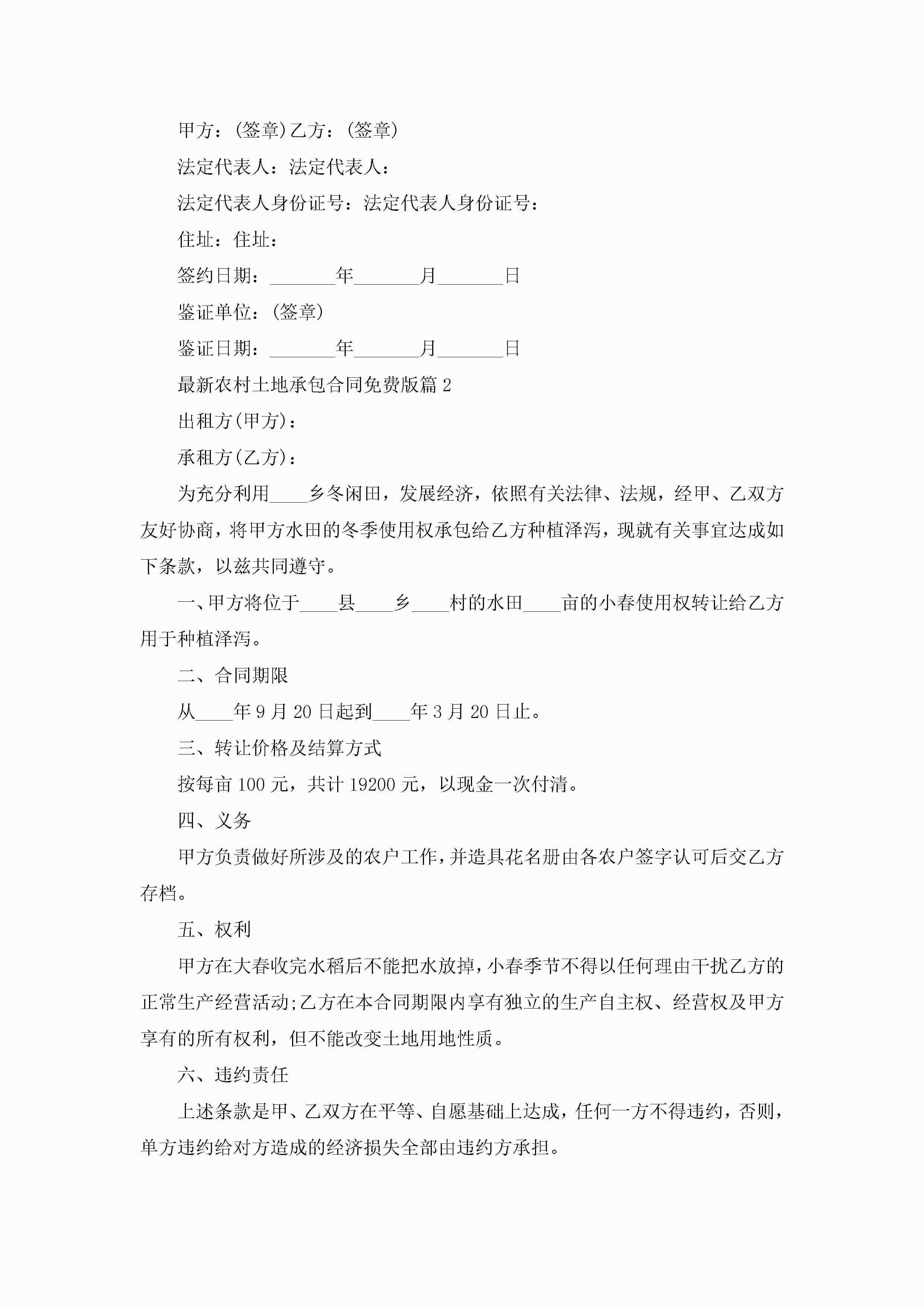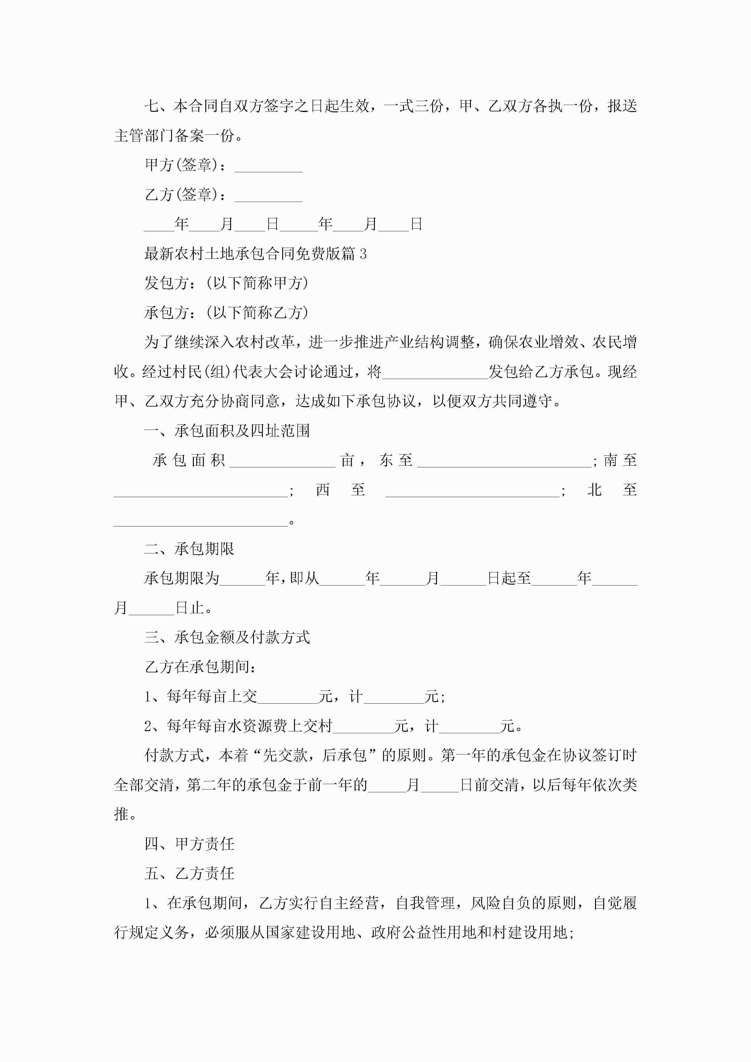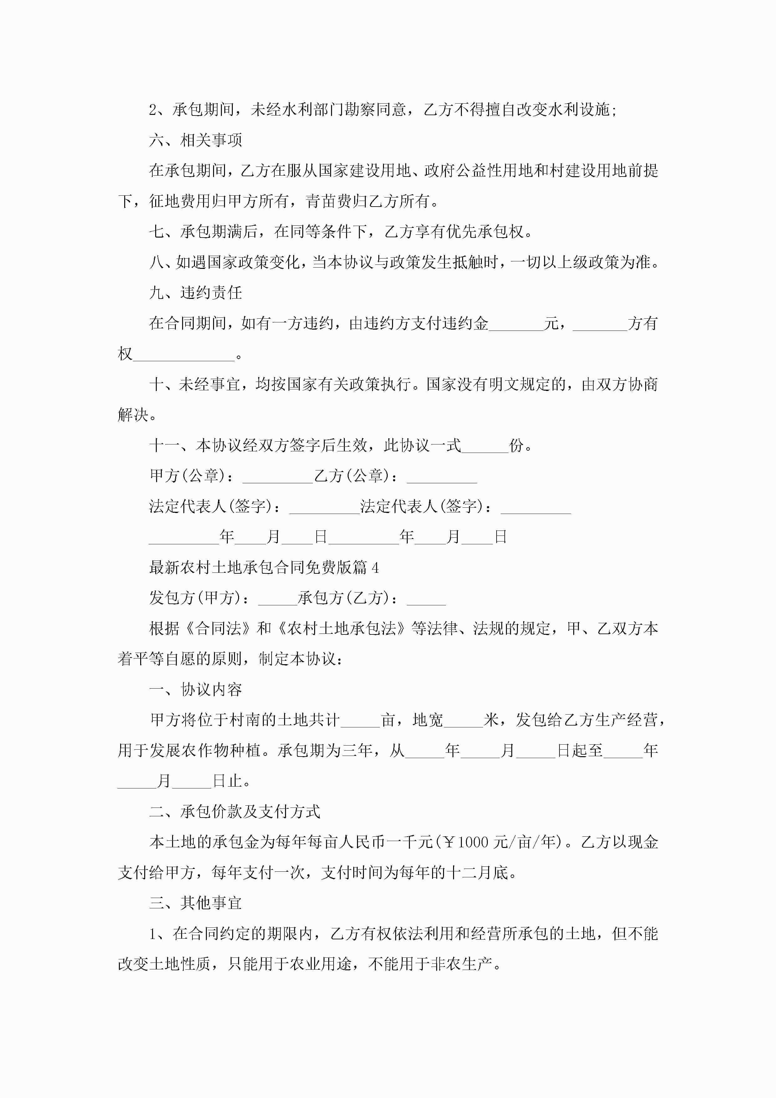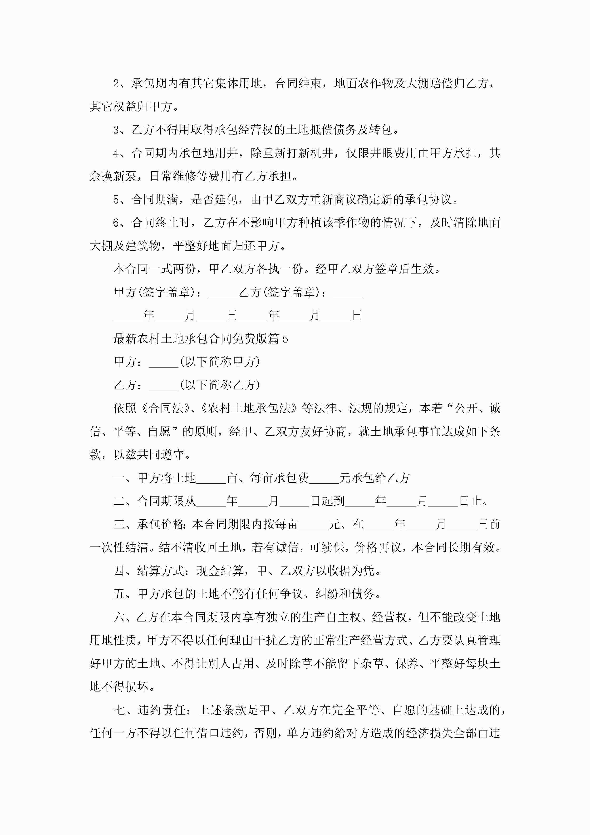 最新农村土地承包合同免费版范文jugei3月23日 01:36发布关注192 最新农村土地承包合同免费版范文此内容为付费资源,请付费后查看¥10.9 单篇文档限时特惠¥15个人会员开通企业会员开通立即下载无需登陆!可直接快捷下载单个模板付费资源© 版权声明THE ENDWord模板# 实用文档# 实用模板# 合同模板# 合同范本 如有问题,可点击最底部“联系我们”联系客服 分享QQ空间微博QQ好友海报分享复制链接收藏