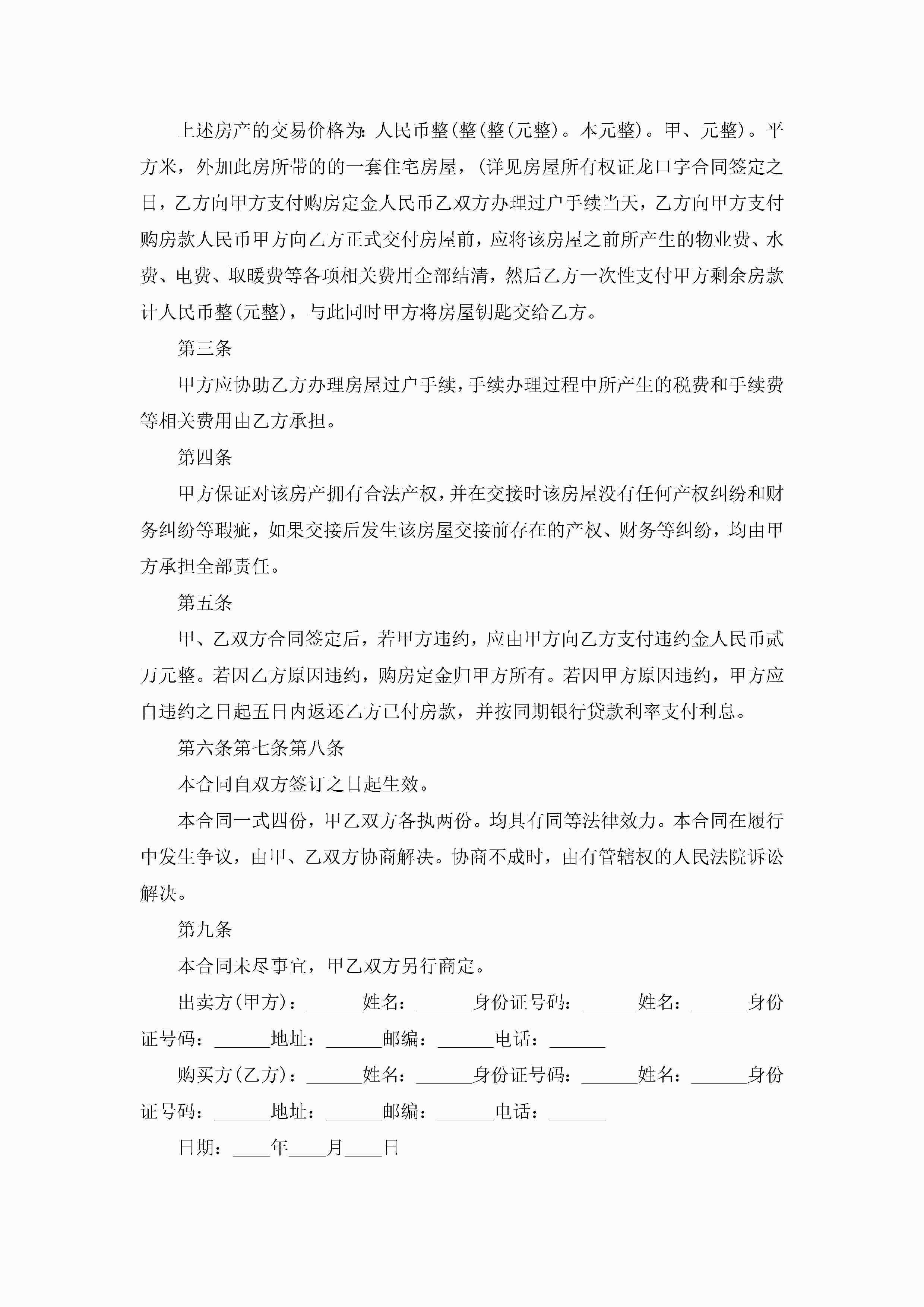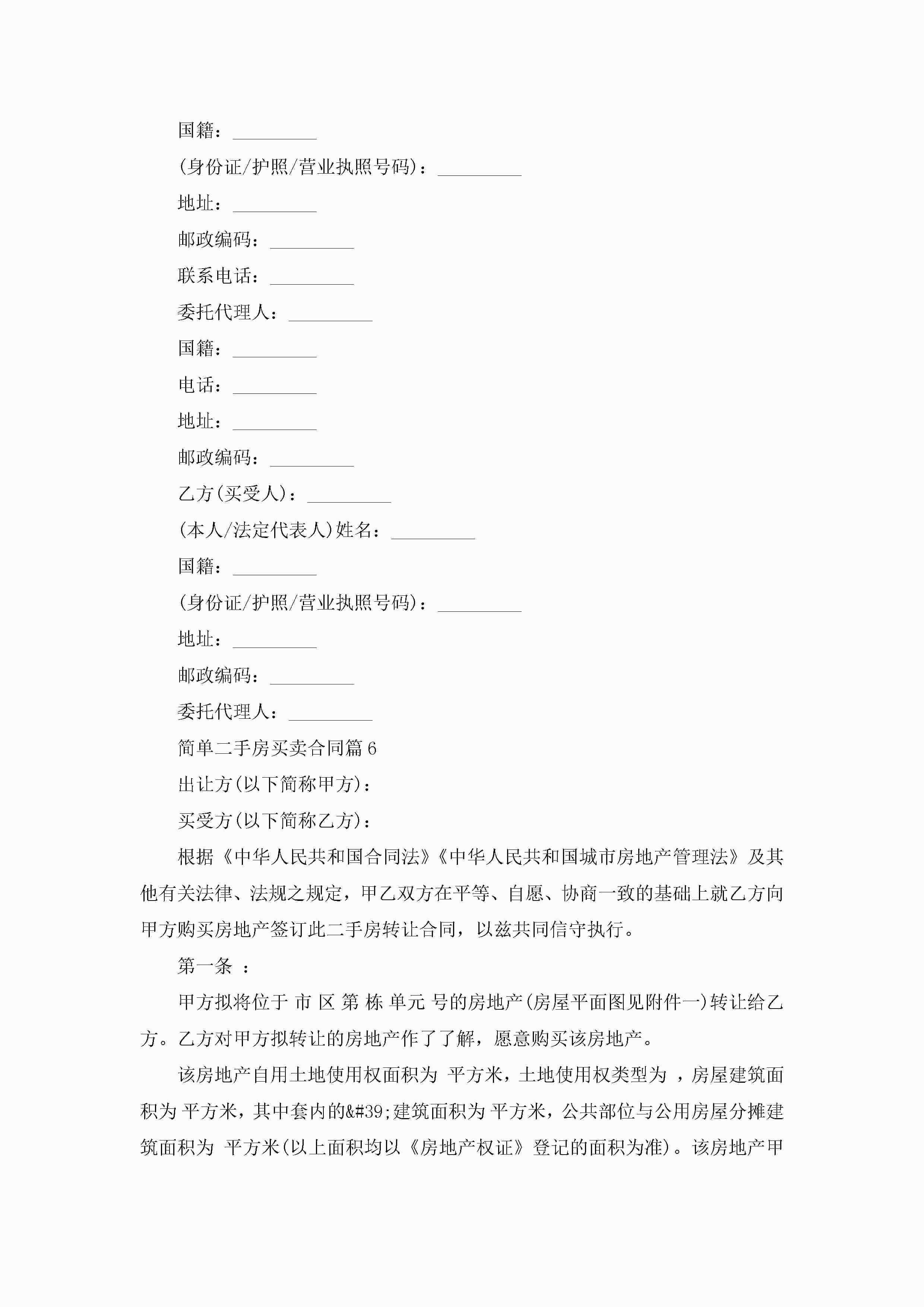 简单二手房买卖合同范文jugei3月23日 01:36发布关注186 简单二手房买卖合同范文此内容为付费资源,请付费后查看¥10.9 单篇文档限时特惠¥15个人会员开通企业会员开通立即下载无需登陆!可直接快捷下载单个模板付费资源© 版权声明THE ENDWord模板# 实用文档# 实用模板# 合同模板# 合同范本 如有问题,可点击最底部“联系我们”联系客服 分享QQ空间微博QQ好友海报分享复制链接收藏