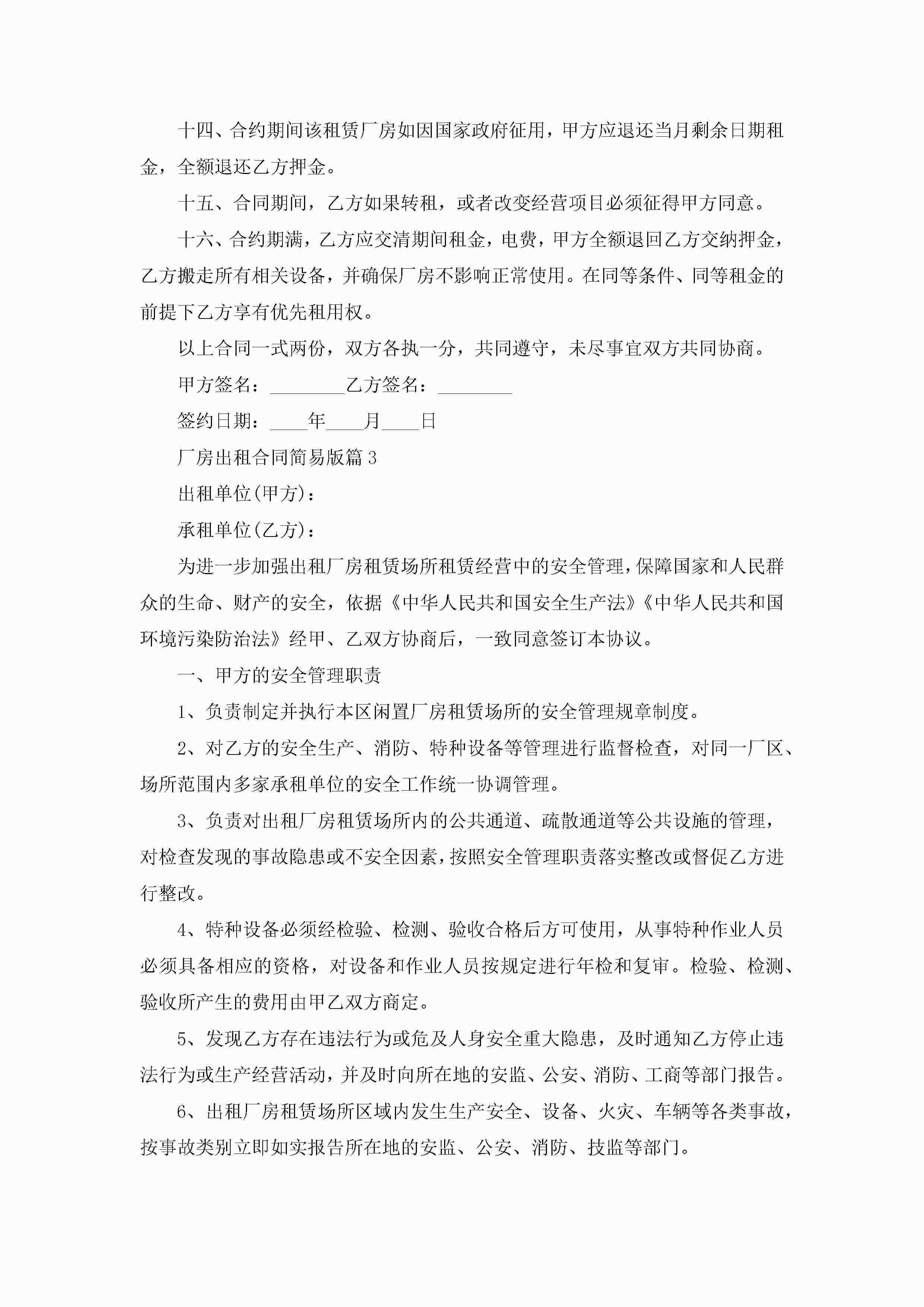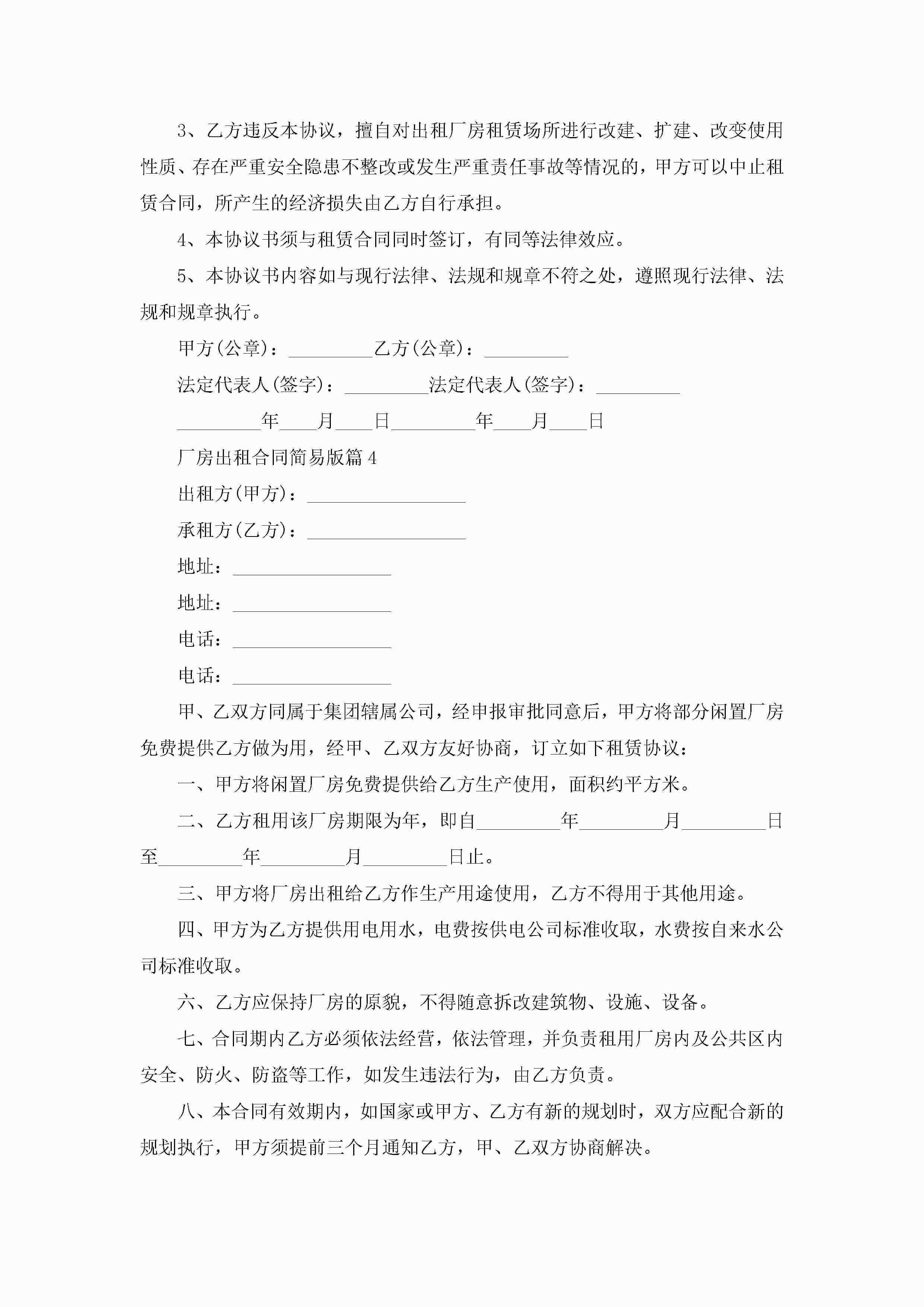 厂房出租合同范文简易版jugei3月23日 01:36发布关注190 厂房出租合同范文简易版此内容为付费资源,请付费后查看¥10.9 单篇文档限时特惠¥15个人会员开通企业会员开通立即下载无需登陆!可直接快捷下载单个模板付费资源© 版权声明THE ENDWord模板# 实用文档# 实用模板# 合同模板# 合同范本 如有问题,可点击最底部“联系我们”联系客服 分享QQ空间微博QQ好友海报分享复制链接收藏
